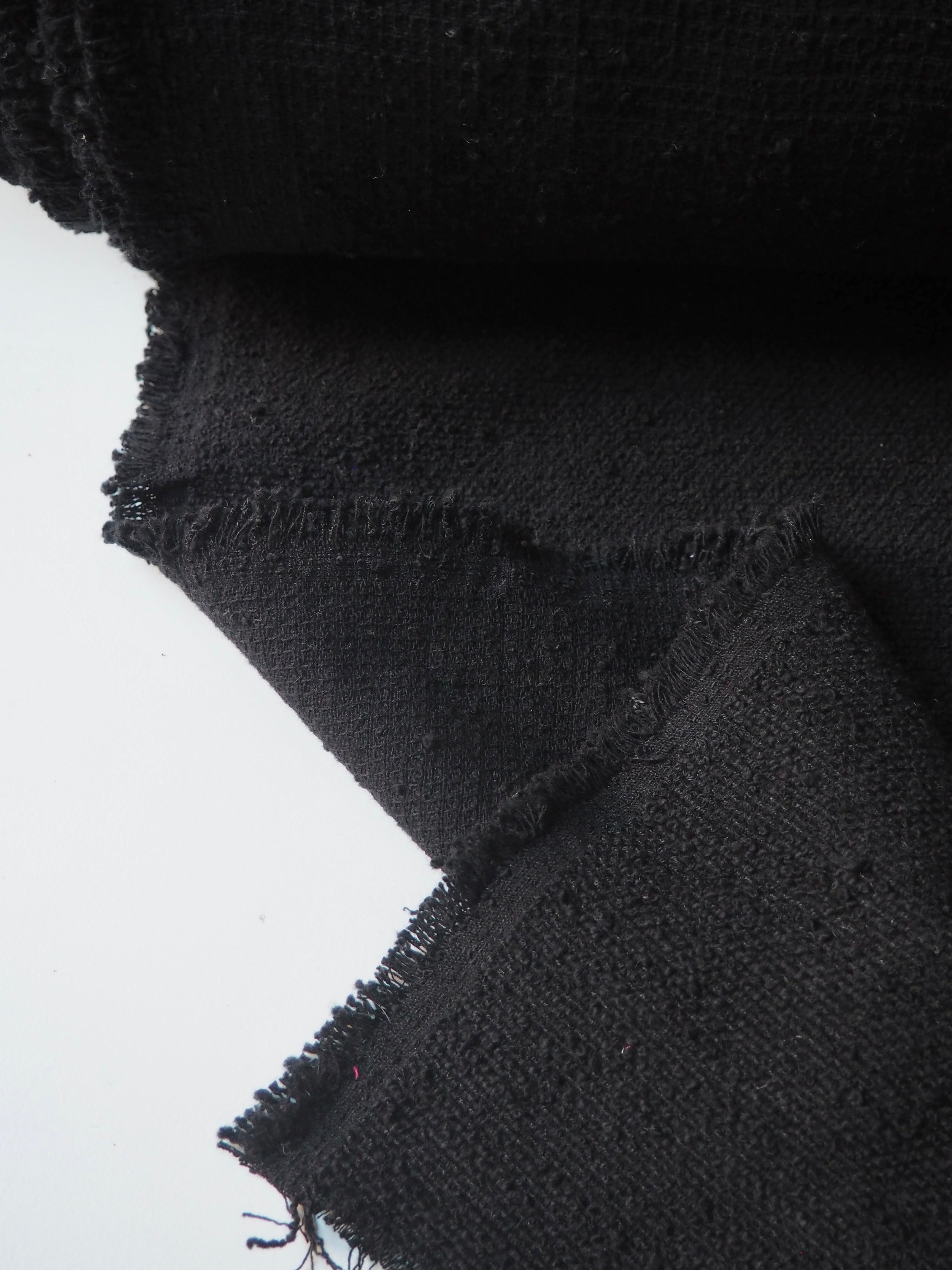 This ex-designer fabric is a cotton tweed. It has a sturdy but very soft and textured bouclé weave. It's opaque, with a gentle structure and lovely drape. Has such a lovely handle that's easy to work with. Light to medium weight and perfect for a jacket or even cushion covers!