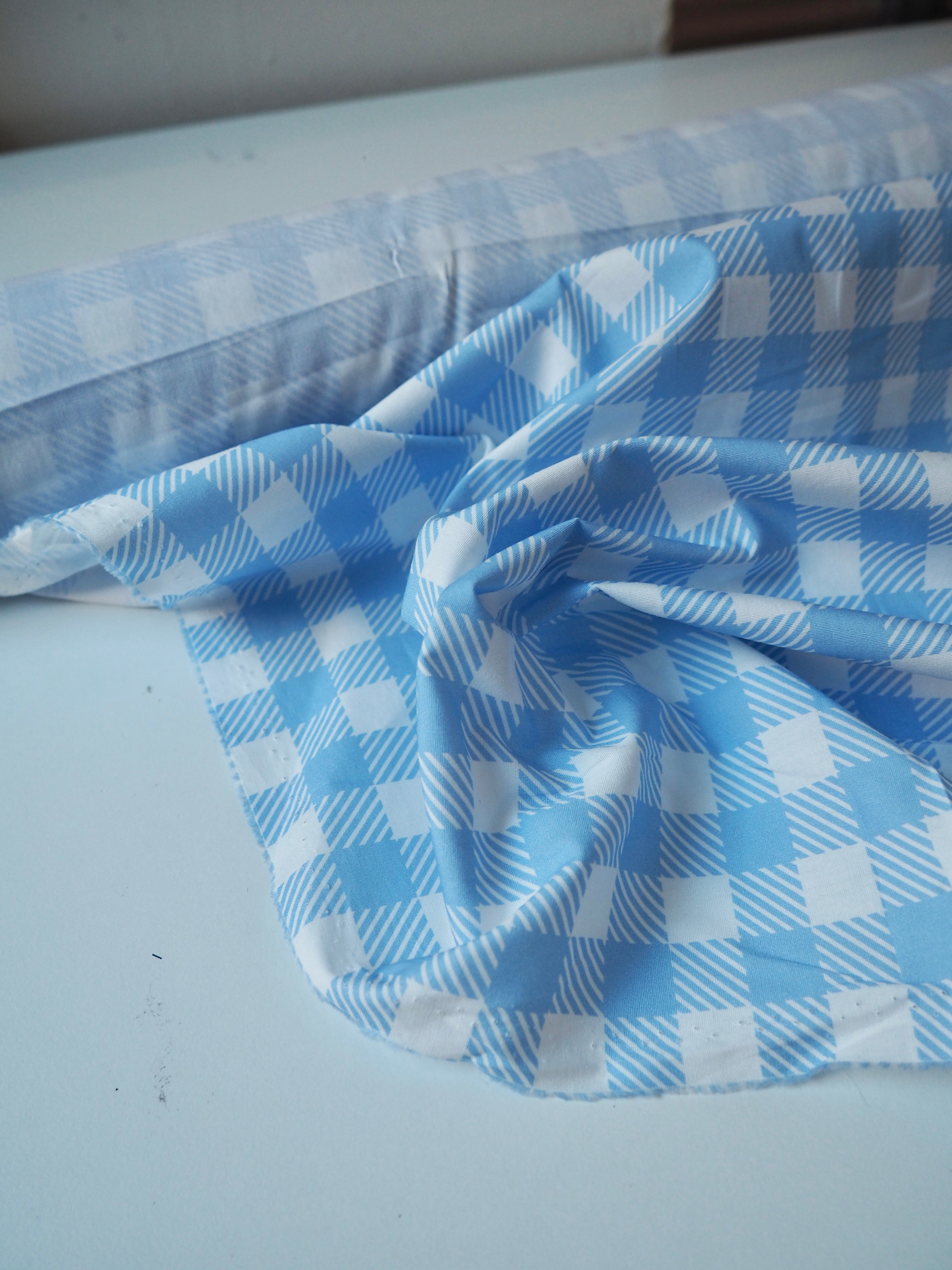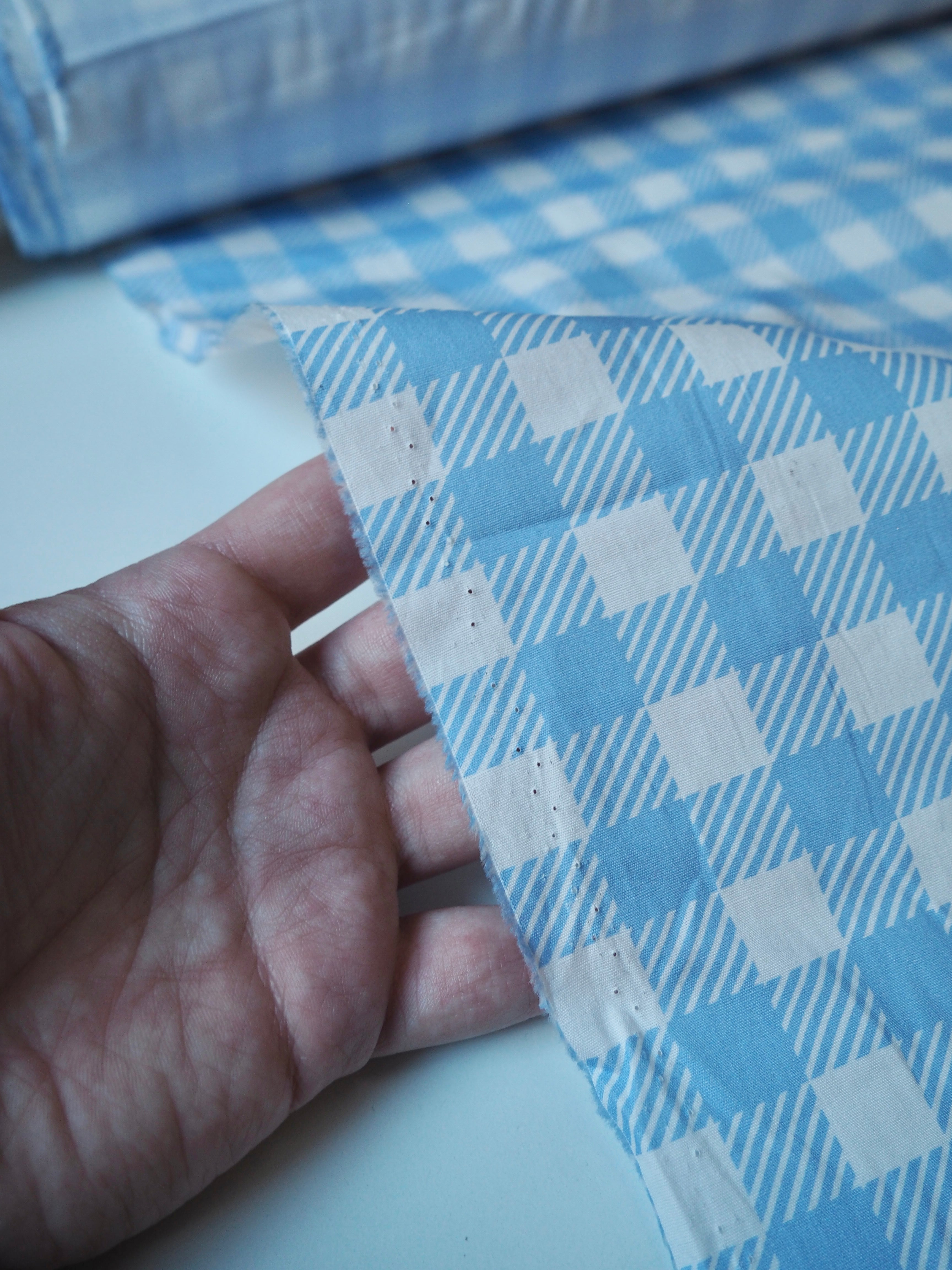 This ex-designer fabric is a cotton poplin. It's in a lovely check. It is lightweight with a gently structured, slightly crispy drape. Opaque, with a really lovely handle and quality. Perfect for dresses and button downs!