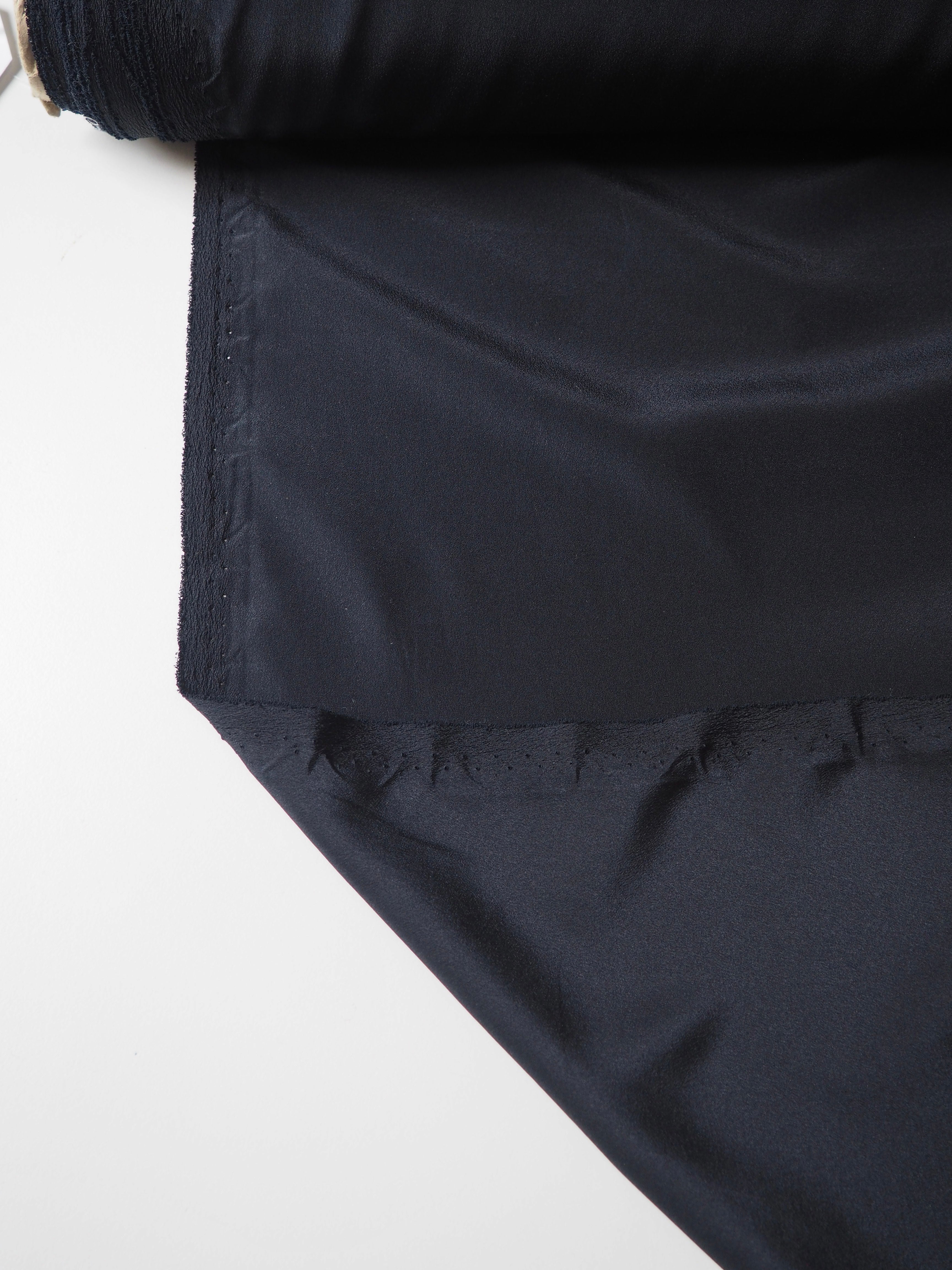 This ex-designer fabric is a crepe de chine. It has the characteristic gentler but smooth crepe texture but is still very soft and lightweight. It's very drapey and has great movement and a lovely sheen. Opaque. Would be perfect for a lining or a slip dress!