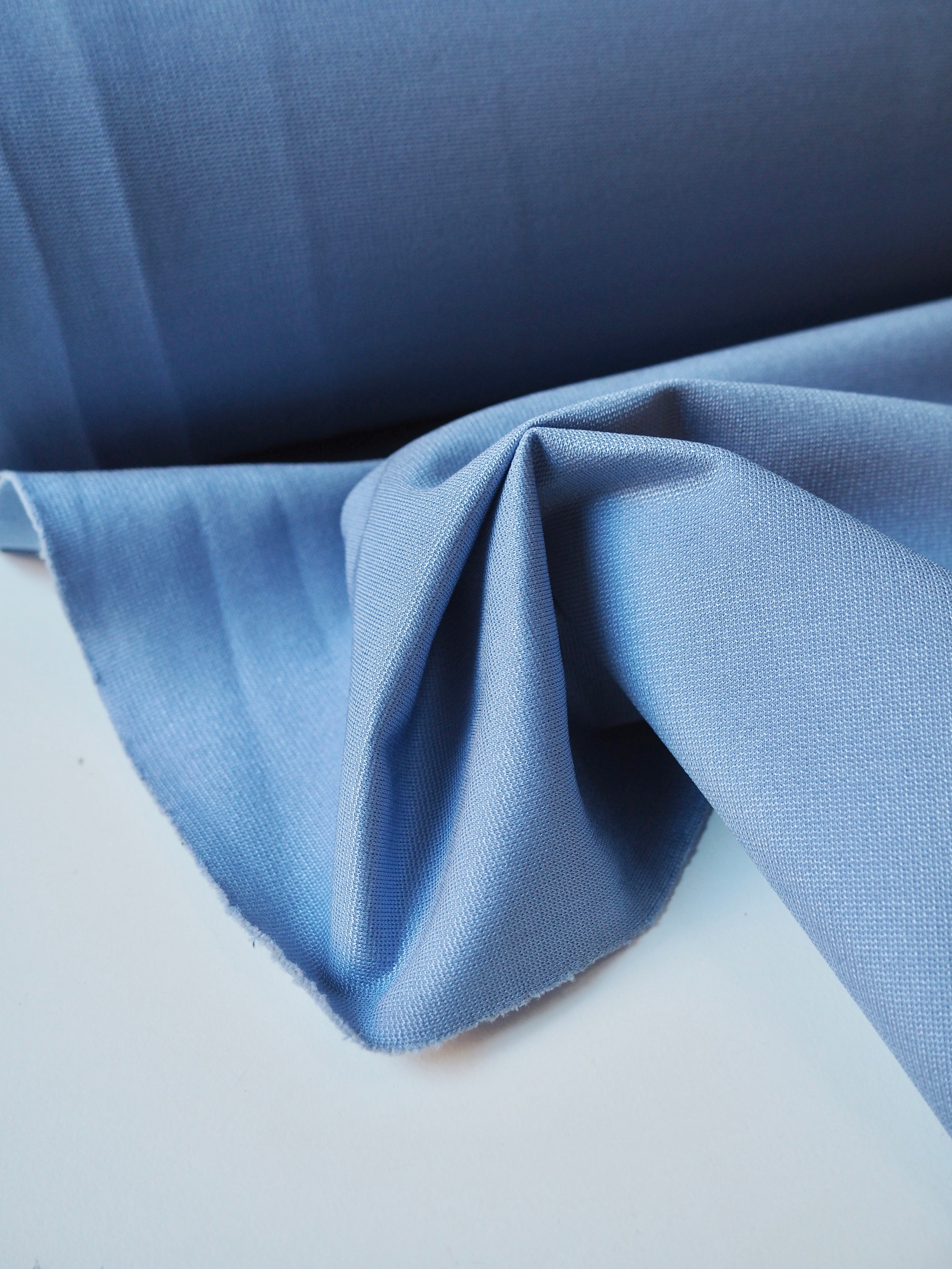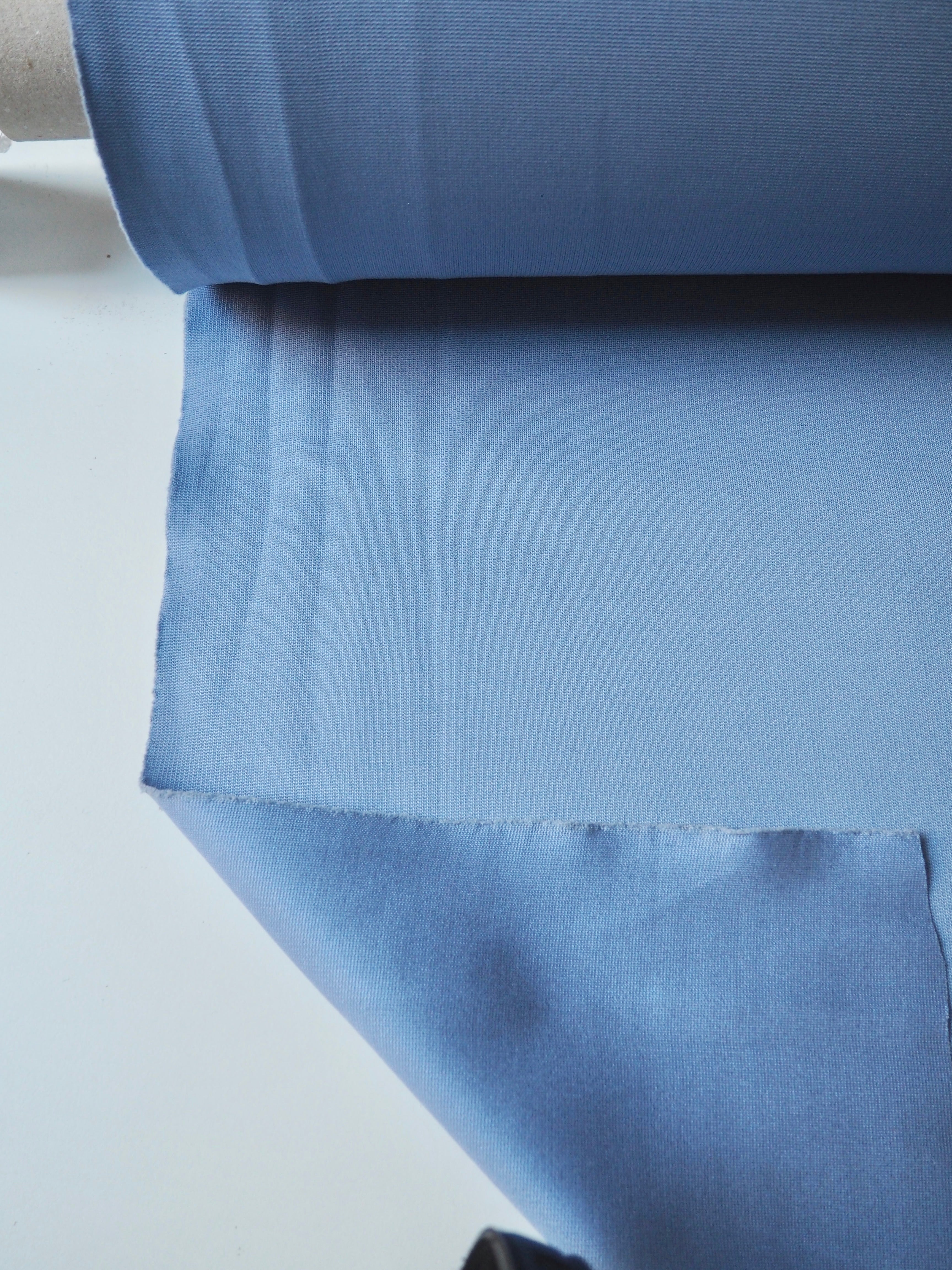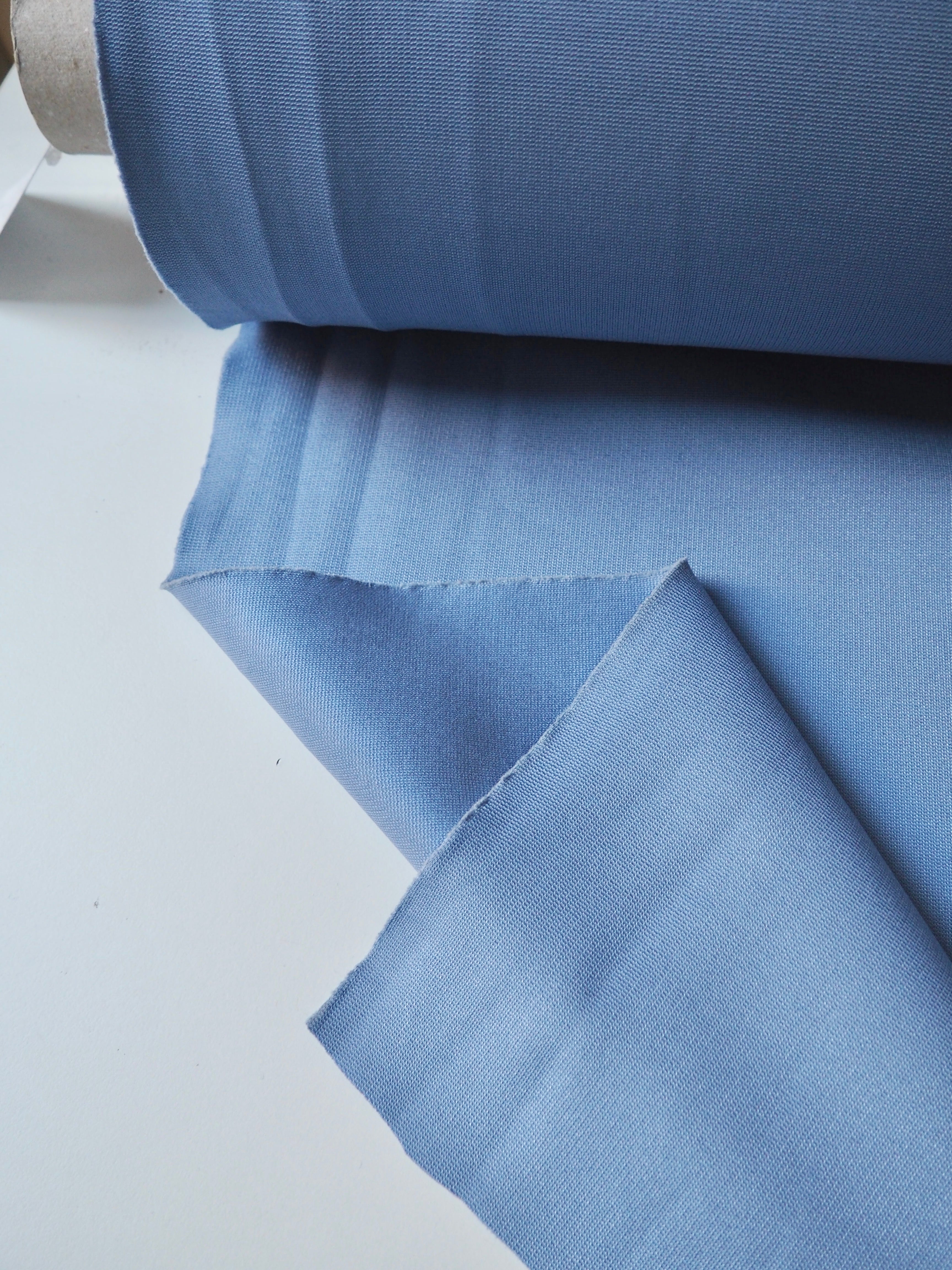 This ex-designer fabric is a jersey. Ponte di Roma is a double interlock jersey with a medium weight. It has a great structure and this one is sturdy with a light and lovely sheen finish. Has strong 50% stretch both ways, and great recovery. Perfect for bodycon dresses!