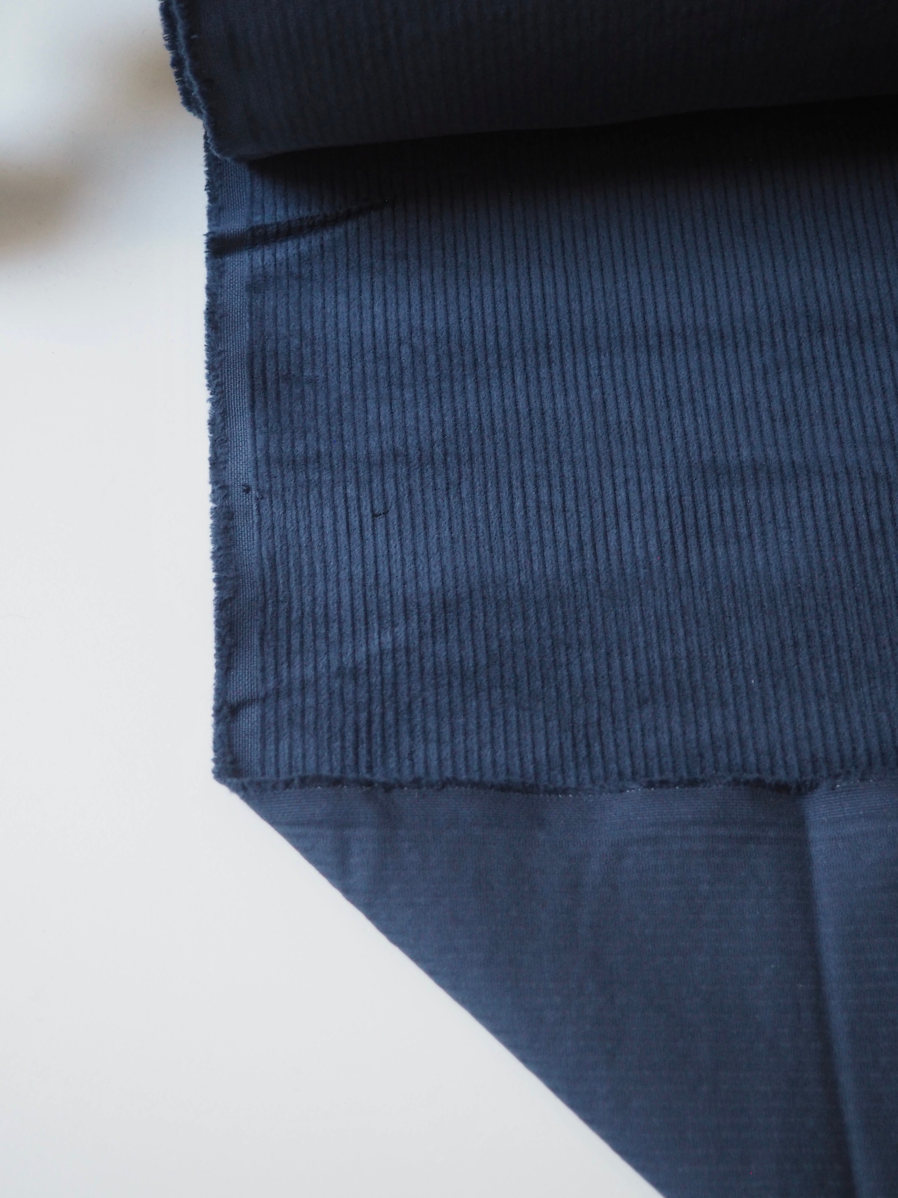 This ex-designer fabric is a stretch corduroy. Cord ribs run along lengthways. In a soft cotton fibre, with a subtle 10% stretch. Beautifully soft with a gentle structure. Opaque and so lovely! From clothing brand Beyond Nine, same as our popular linens! Medium weight and quite sturdy. Perfect for a jacket!
