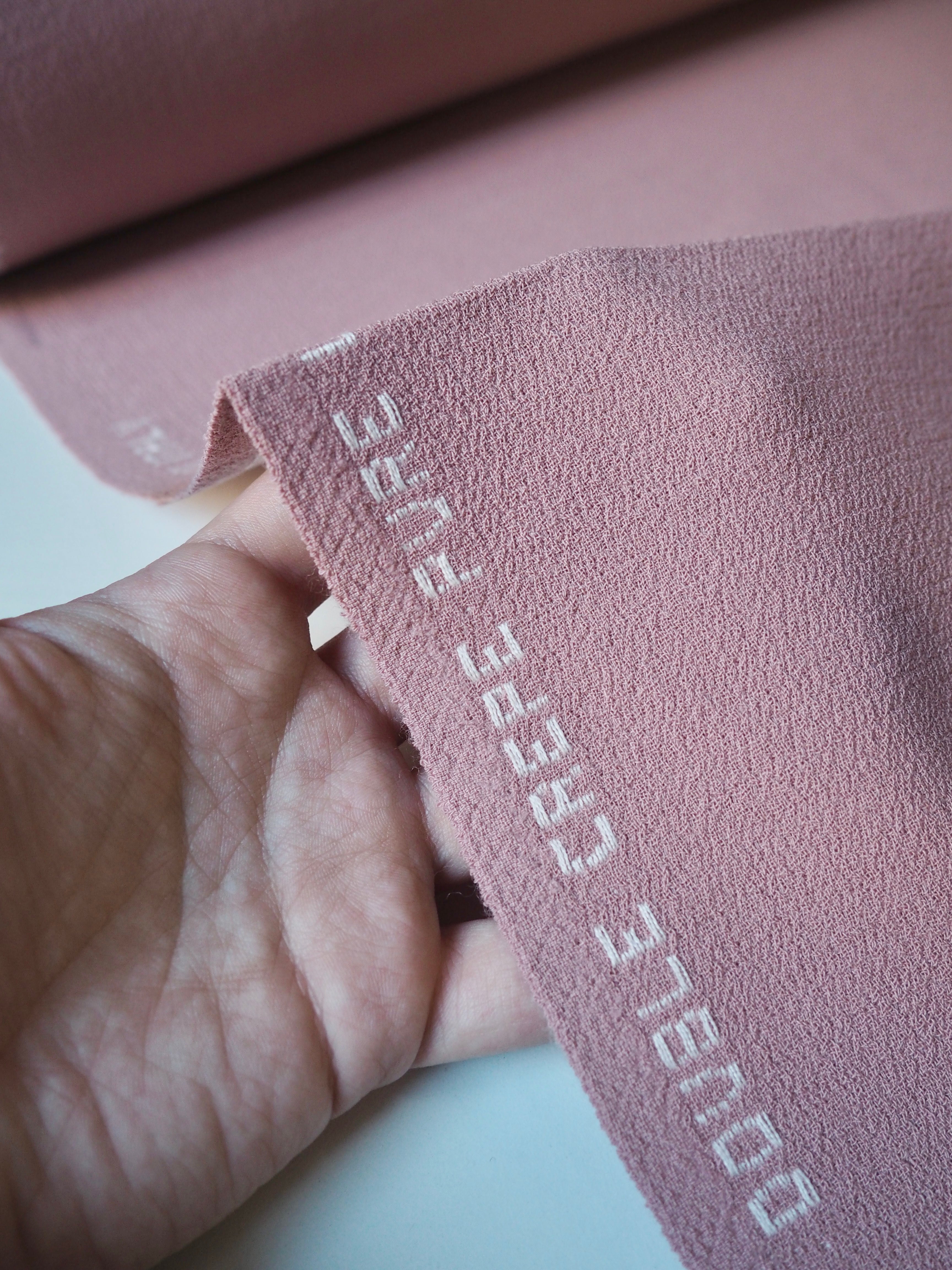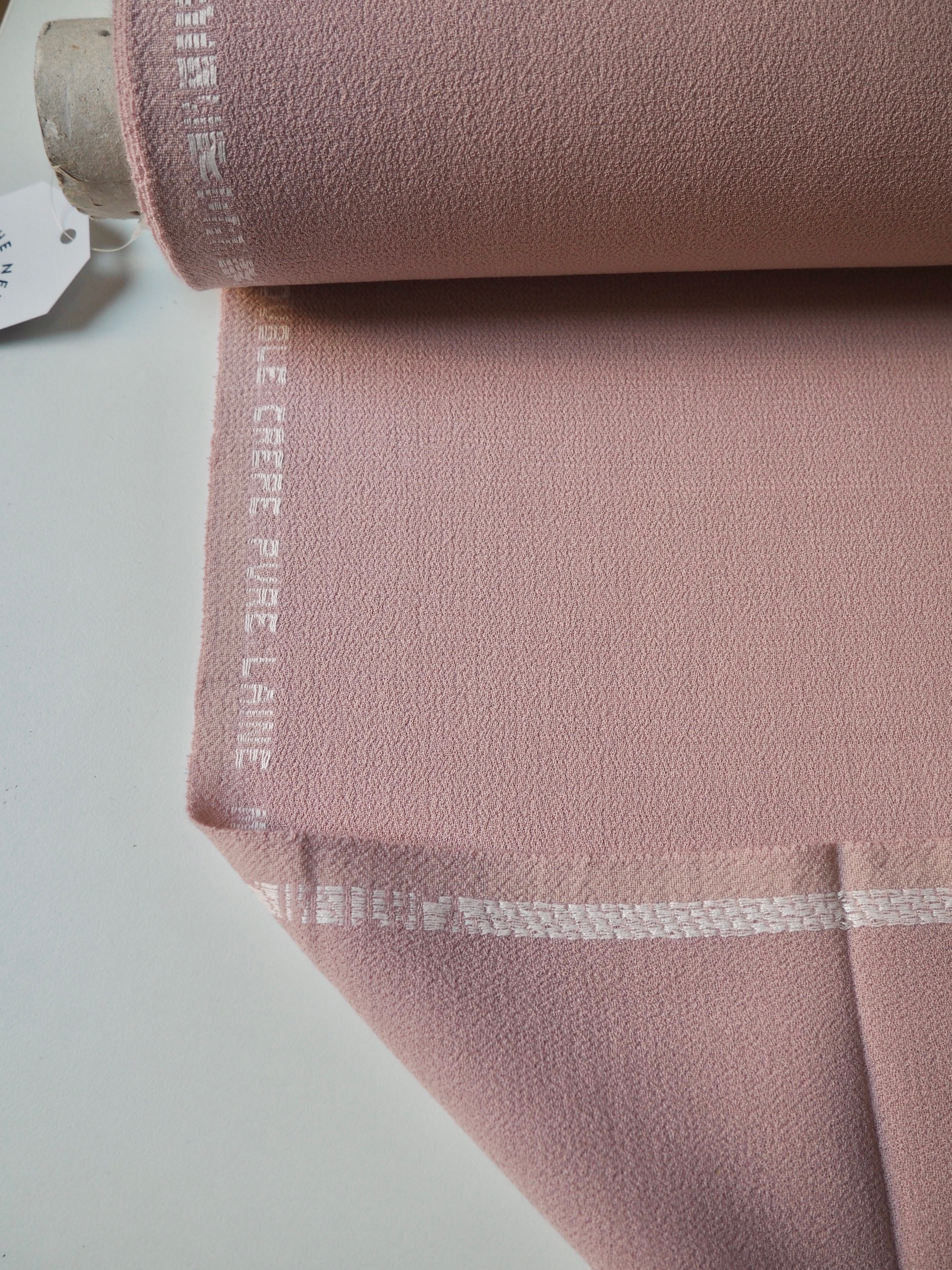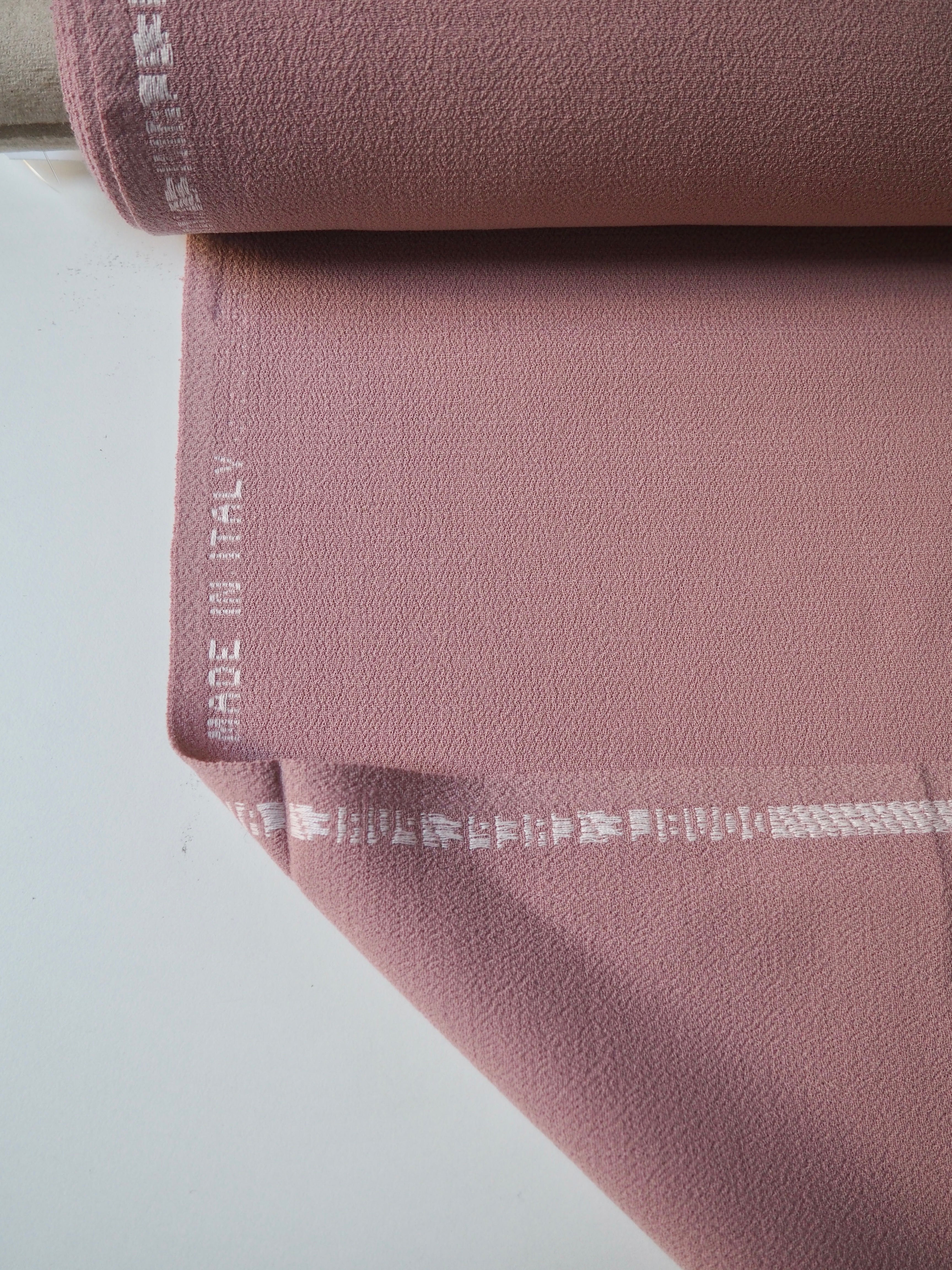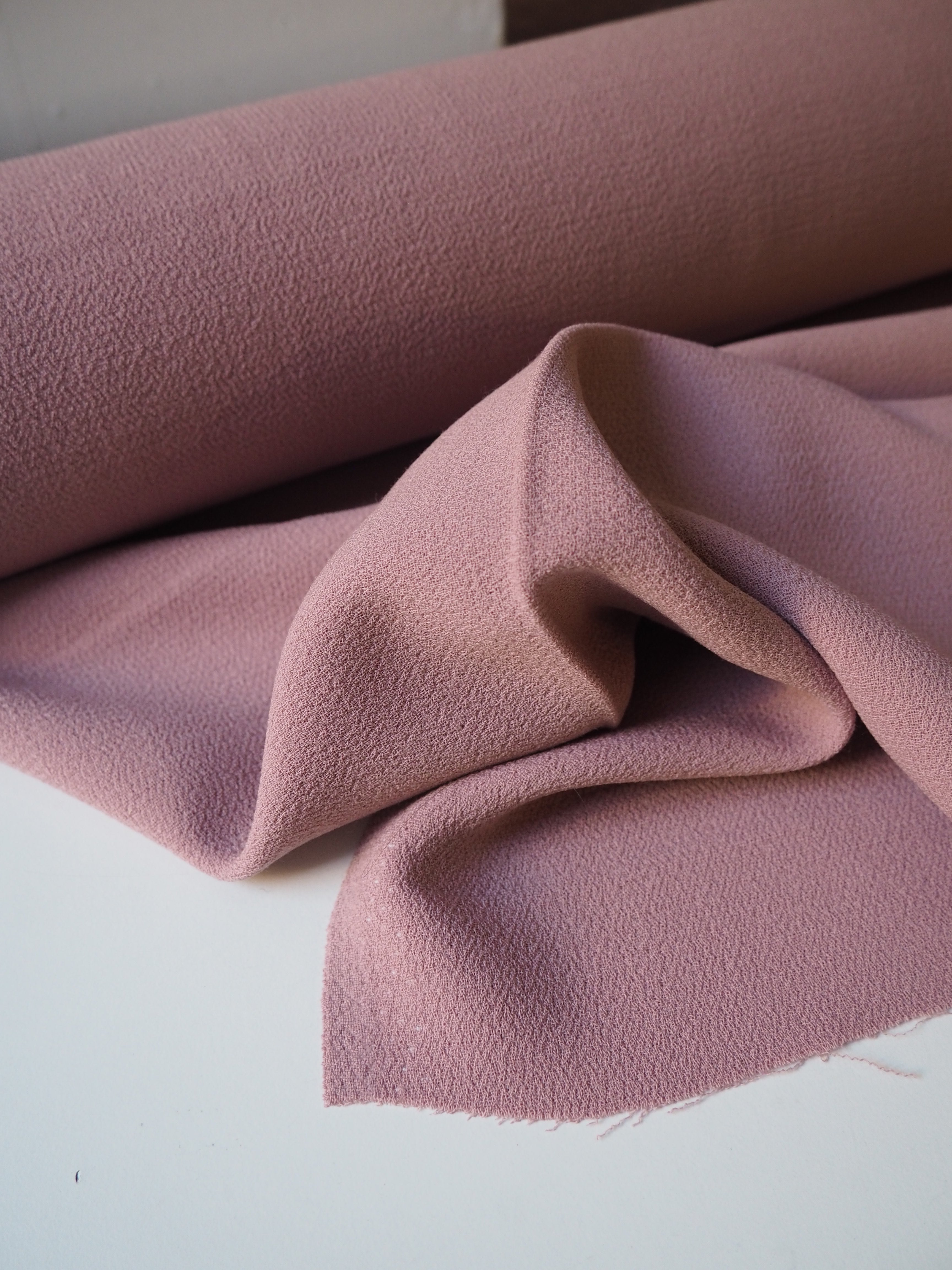 This ex-designer fabric is a wool crepe. It's a double-faced cloth with a sturdy but comfortable weave. It's made of pure wool and feels and looks so luxurious! It has a soft structure and really lovely soft, plush crepe handle. Medium weight, and perfect for tailoring projects. Flexible and has a wonderful drape that makes it so easy to work with! The perfect cloth for a lifetime blazer for all seasons, and wide leg trousers!