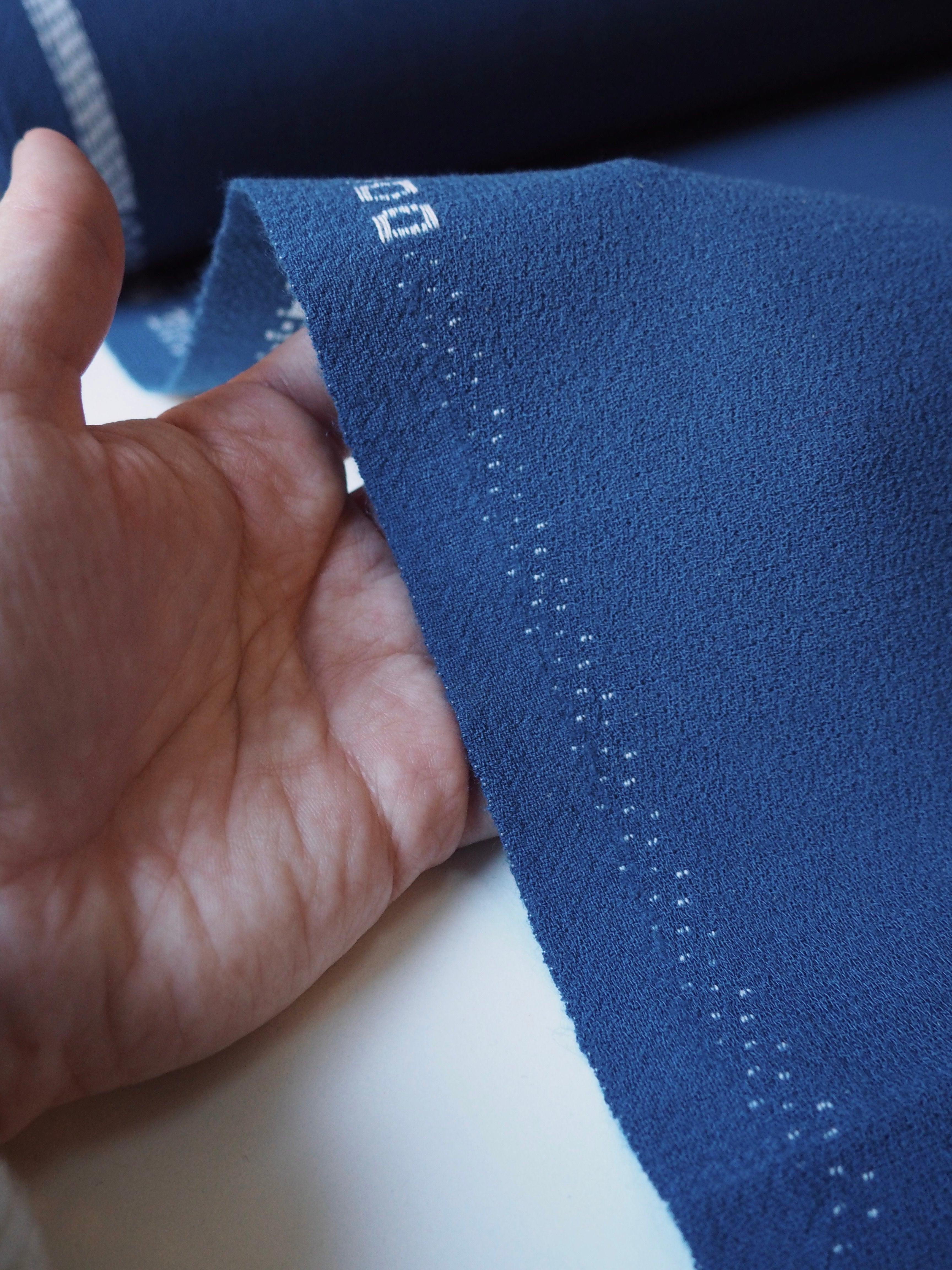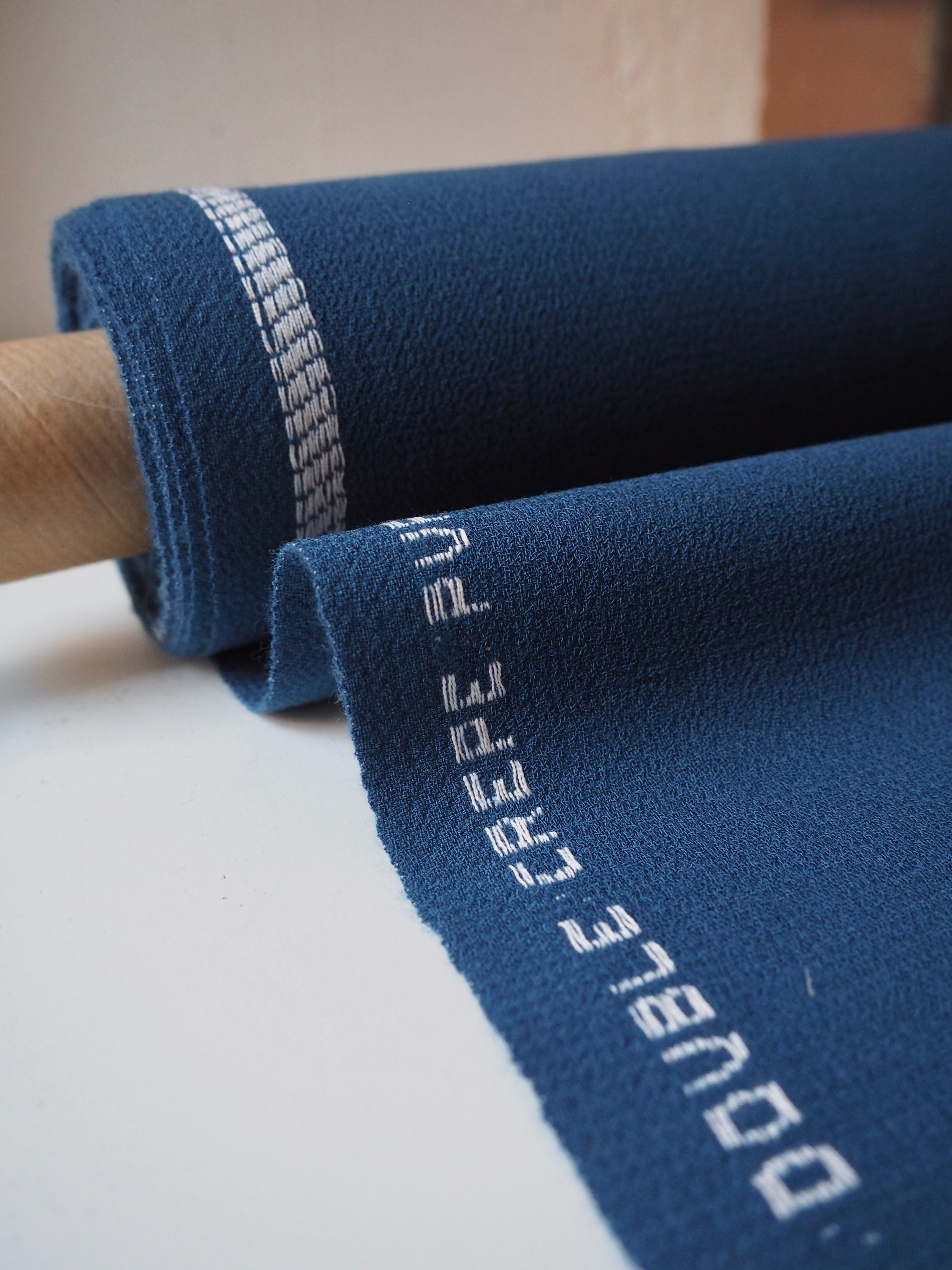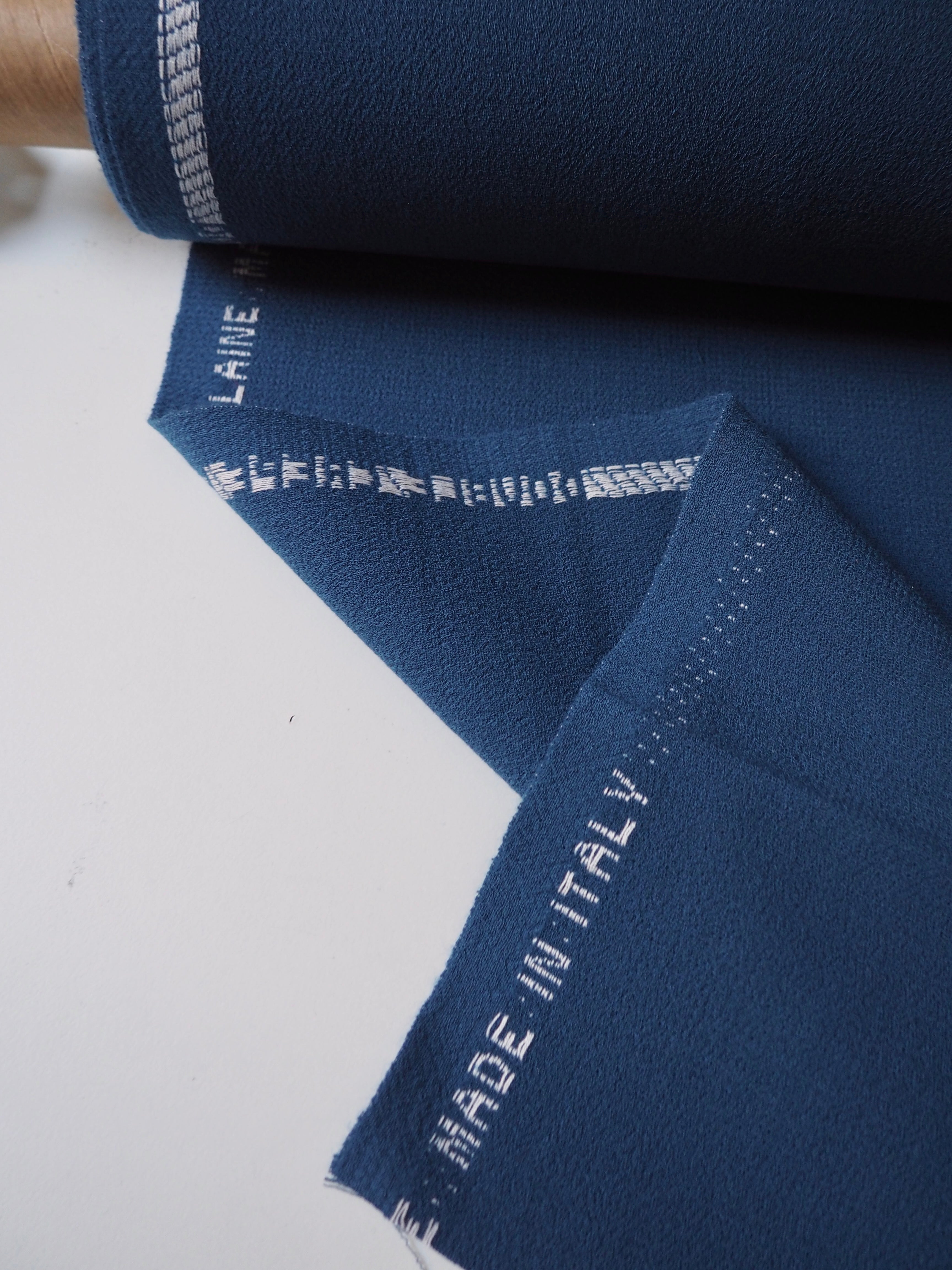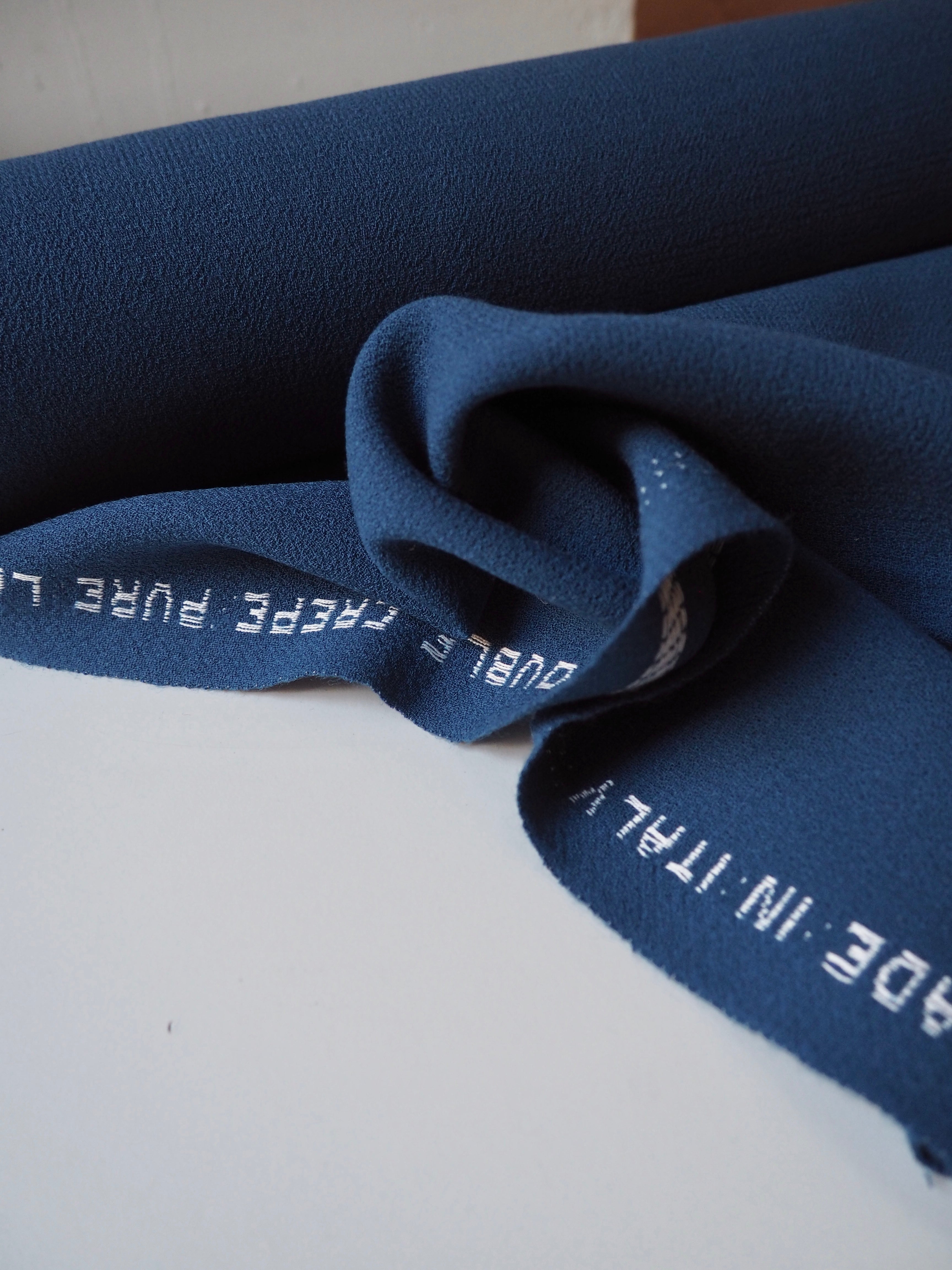 This ex-designer fabric is a wool crepe. It's a double-faced cloth with a sturdy but comfortable weave. It's made of pure wool and feels and looks so luxurious! It has a soft structure and really lovely soft, plush crepe handle. Medium weight, and perfect for tailoring projects. Flexible and has a wonderful drape that makes it so easy to work with! The perfect cloth for a lifetime blazer for all seasons, and wide leg trousers!