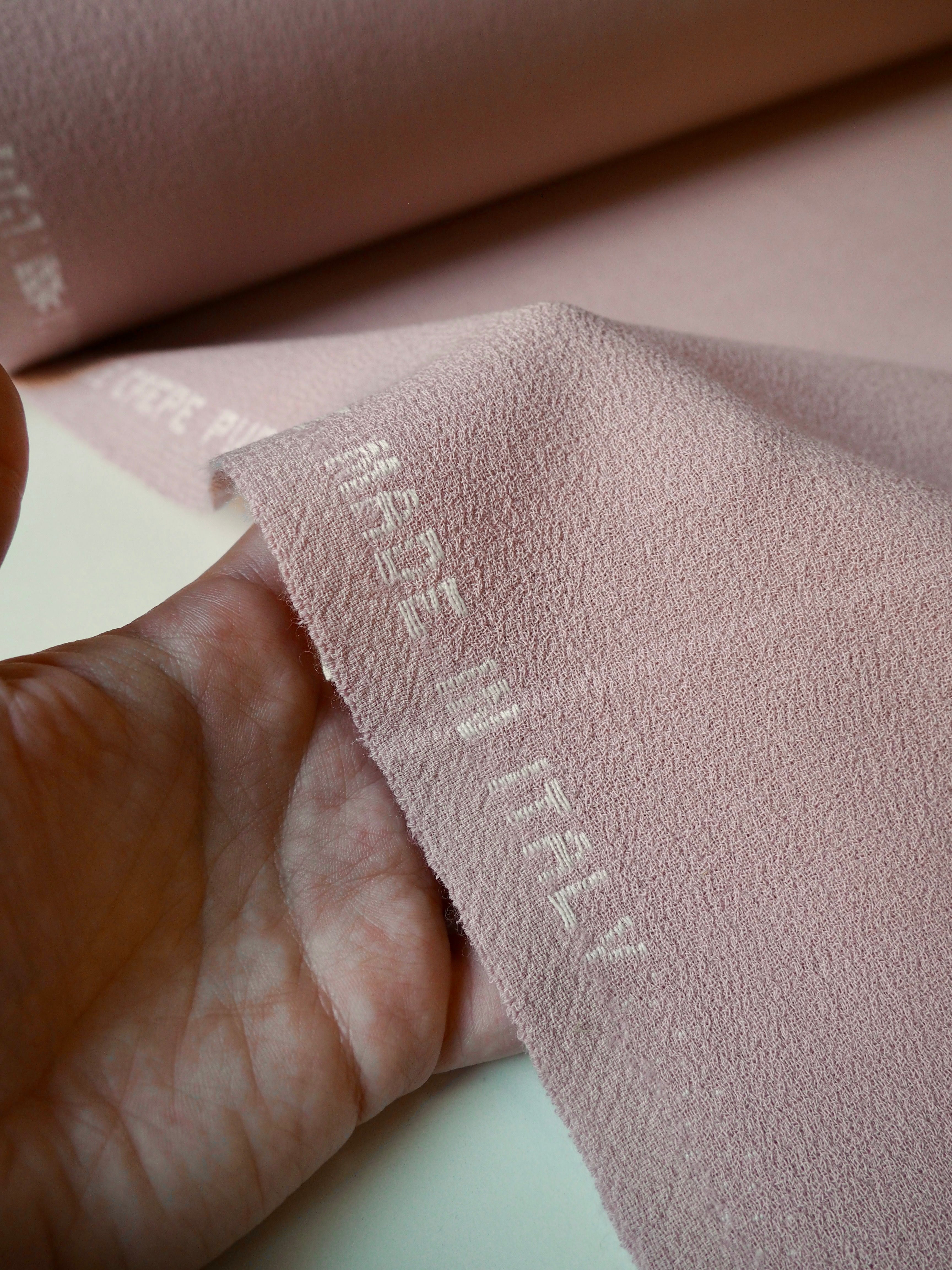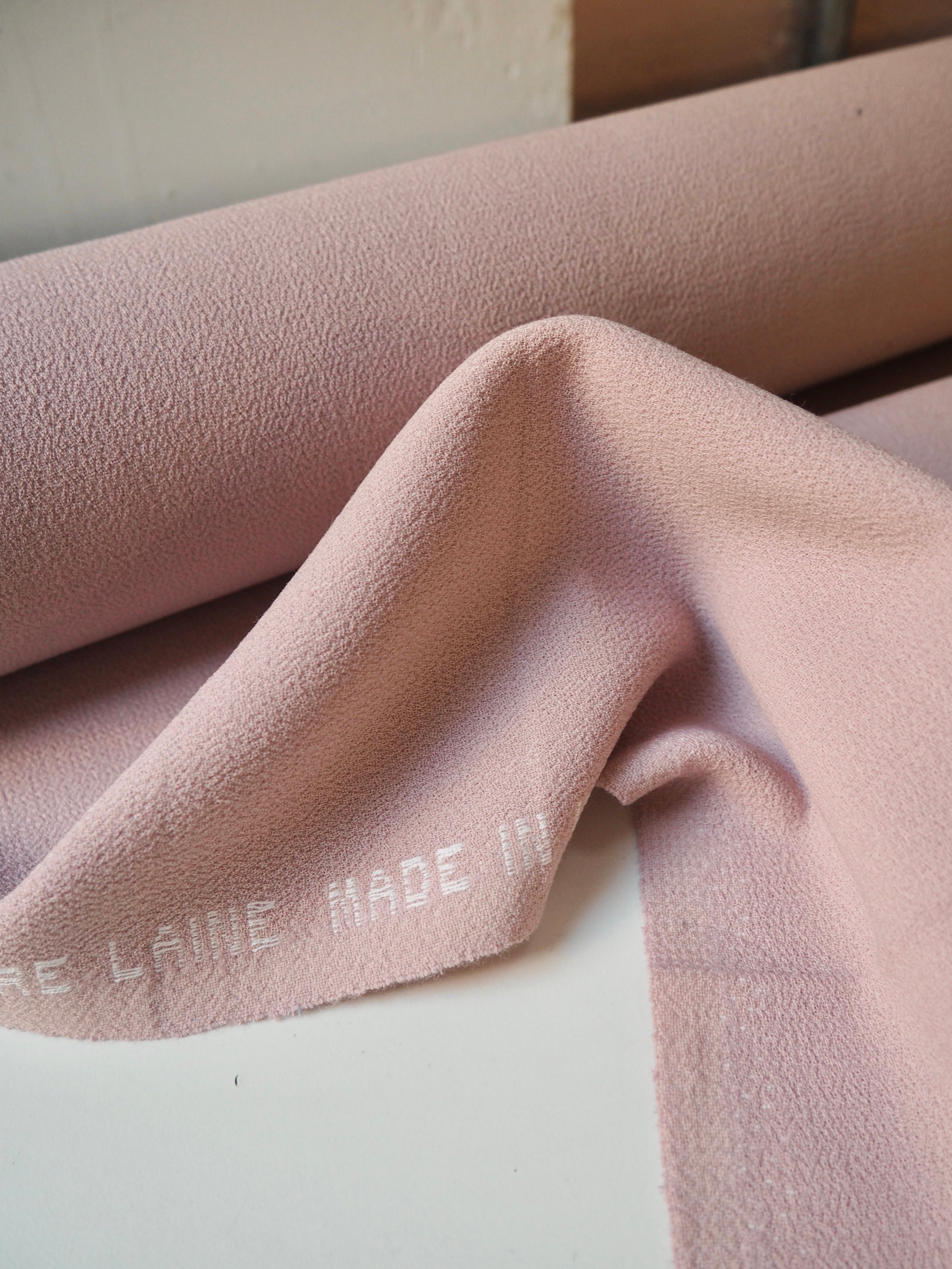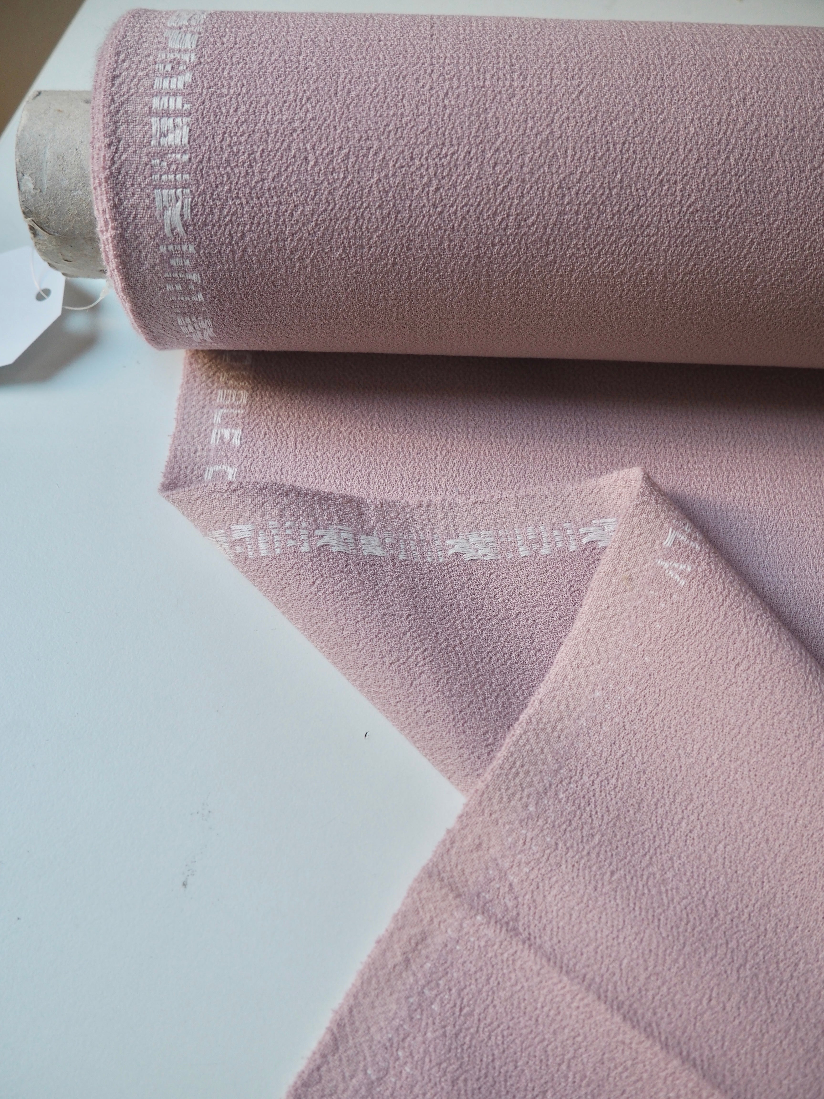This ex-designer fabric is a wool crepe. It's a double-faced cloth with a sturdy but comfortable weave. It's made of pure wool and feels and looks so luxurious! It has a soft structure and really lovely soft, plush crepe handle. Medium weight, and perfect for tailoring projects. Flexible and has a wonderful drape that makes it so easy to work with! The perfect cloth for a lifetime blazer for all seasons, and wide leg trousers!