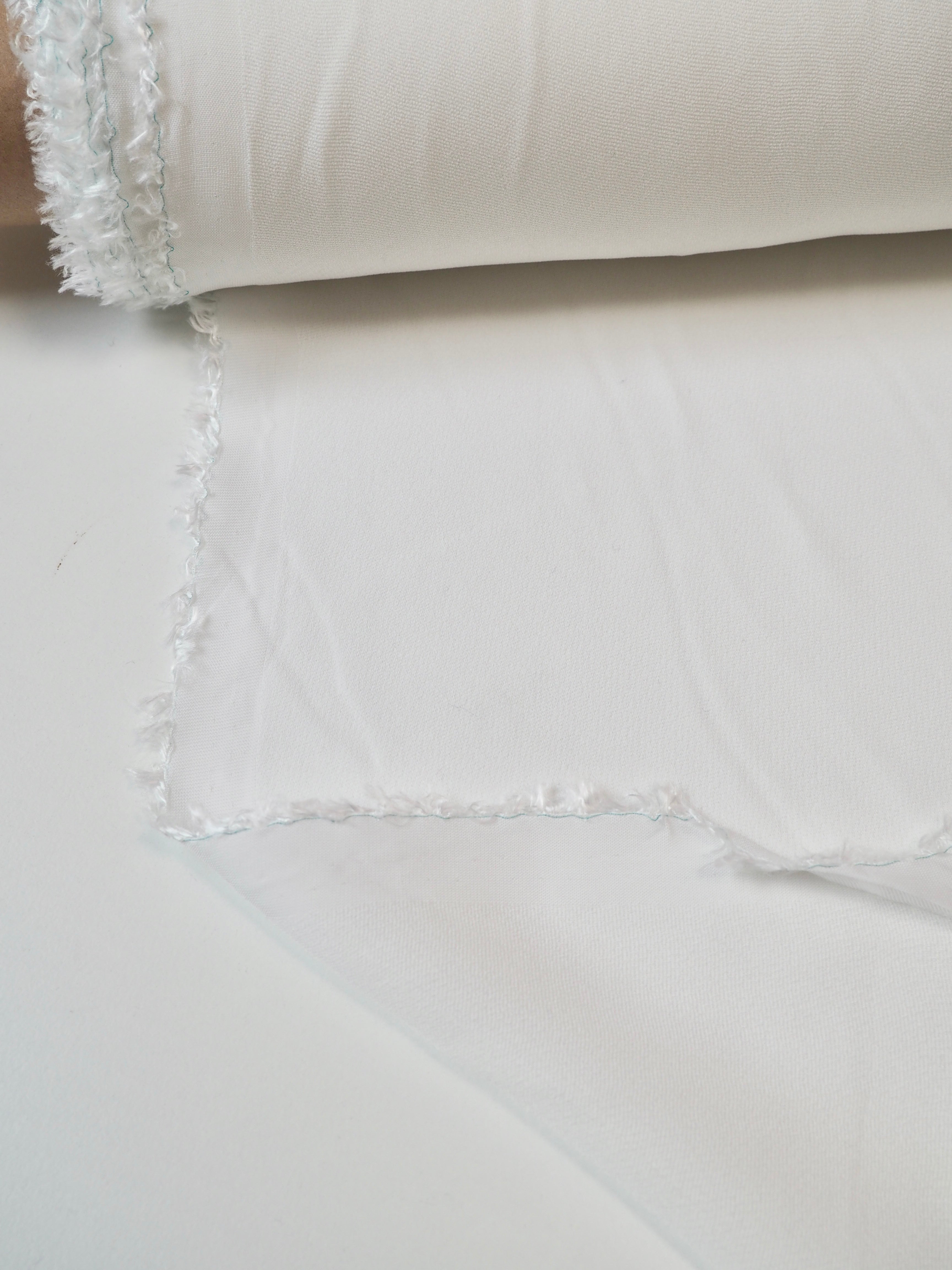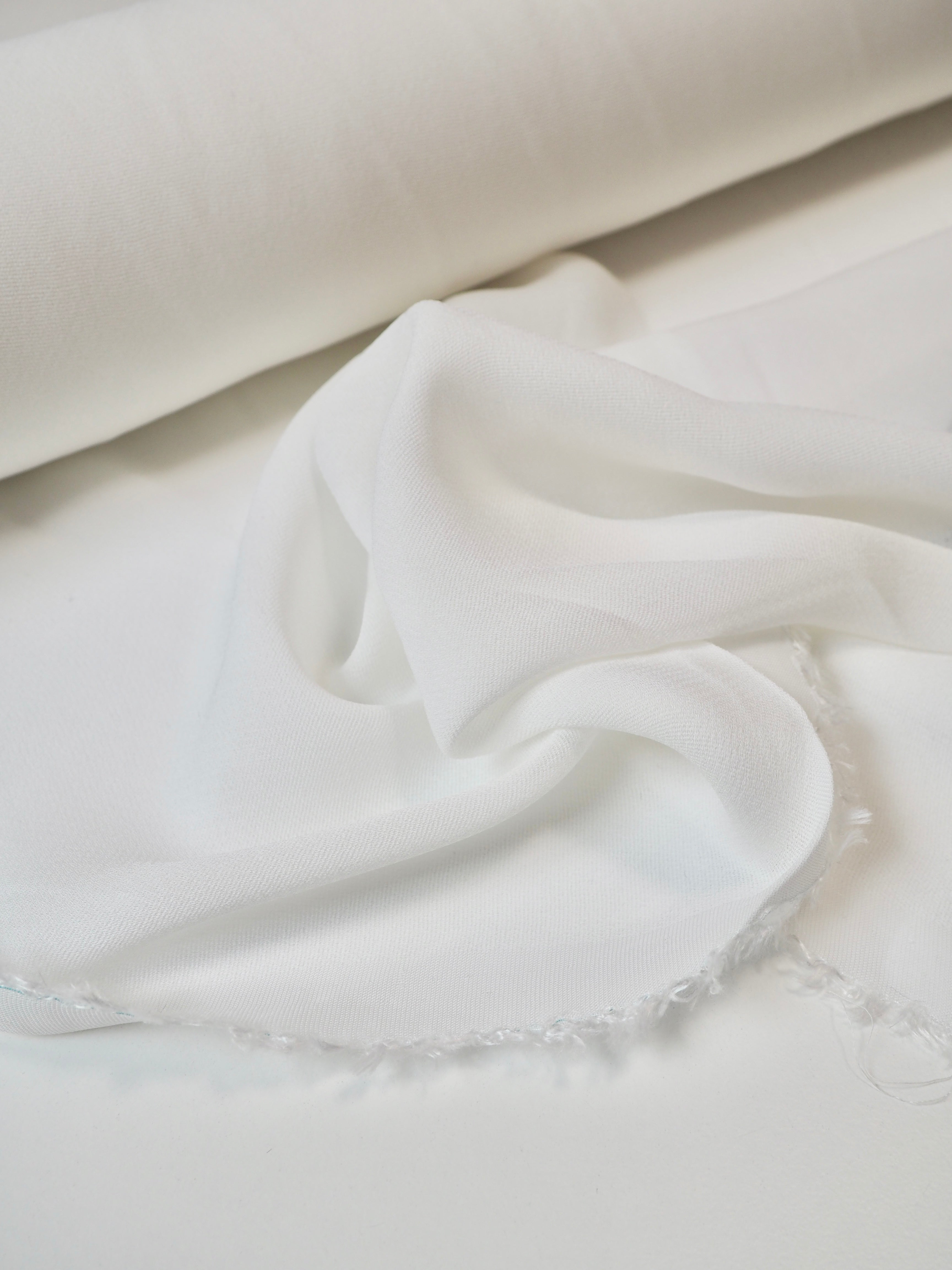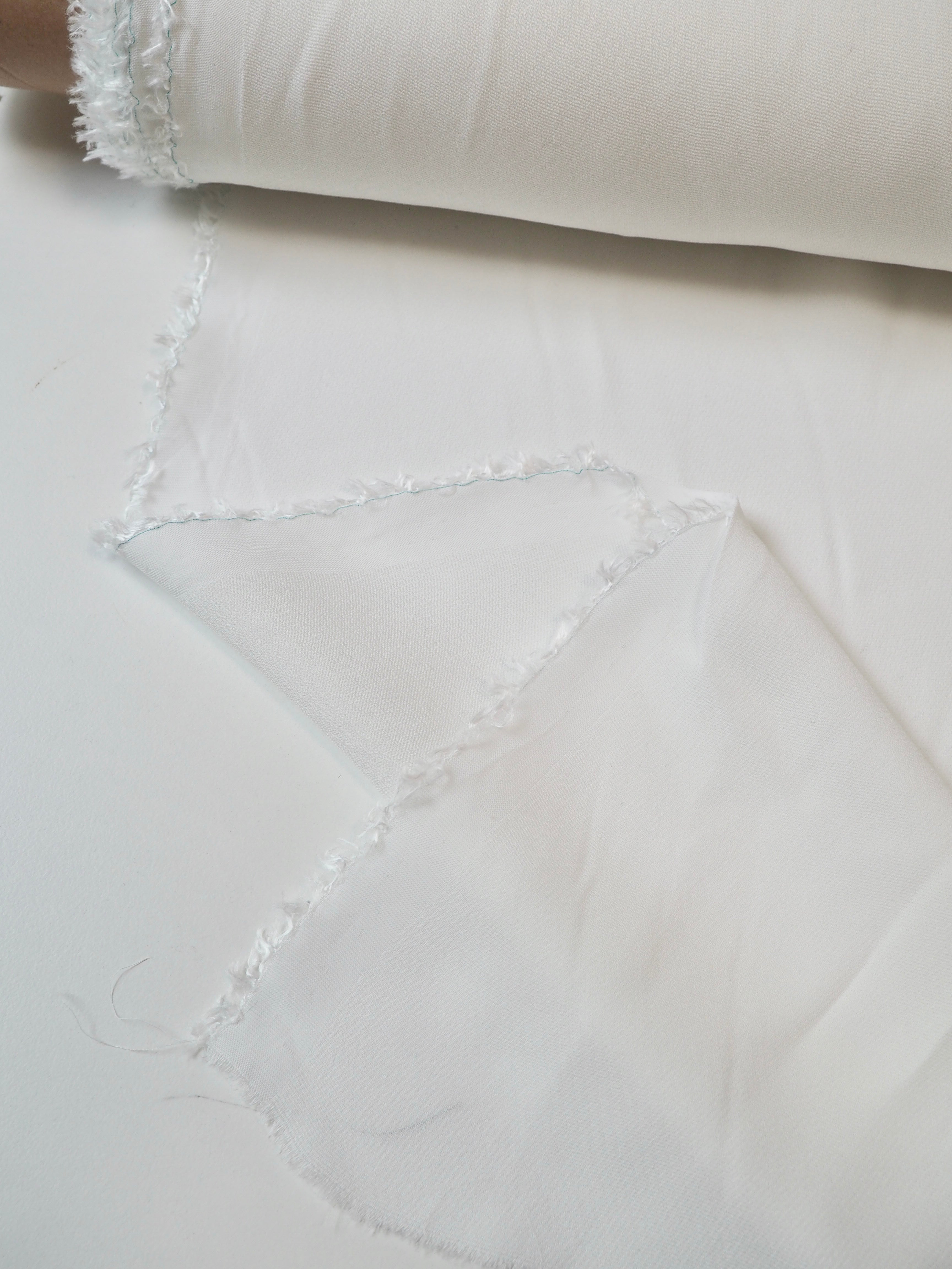 This ex-designer fabric is a crepe. It's a super-light weight crepe, with a semi-sheer and slightly linear weave. It's closer to a georgette in texture and handle. It has wonderful movement and is very drapey. Perfect for drapey overlays and bridal!