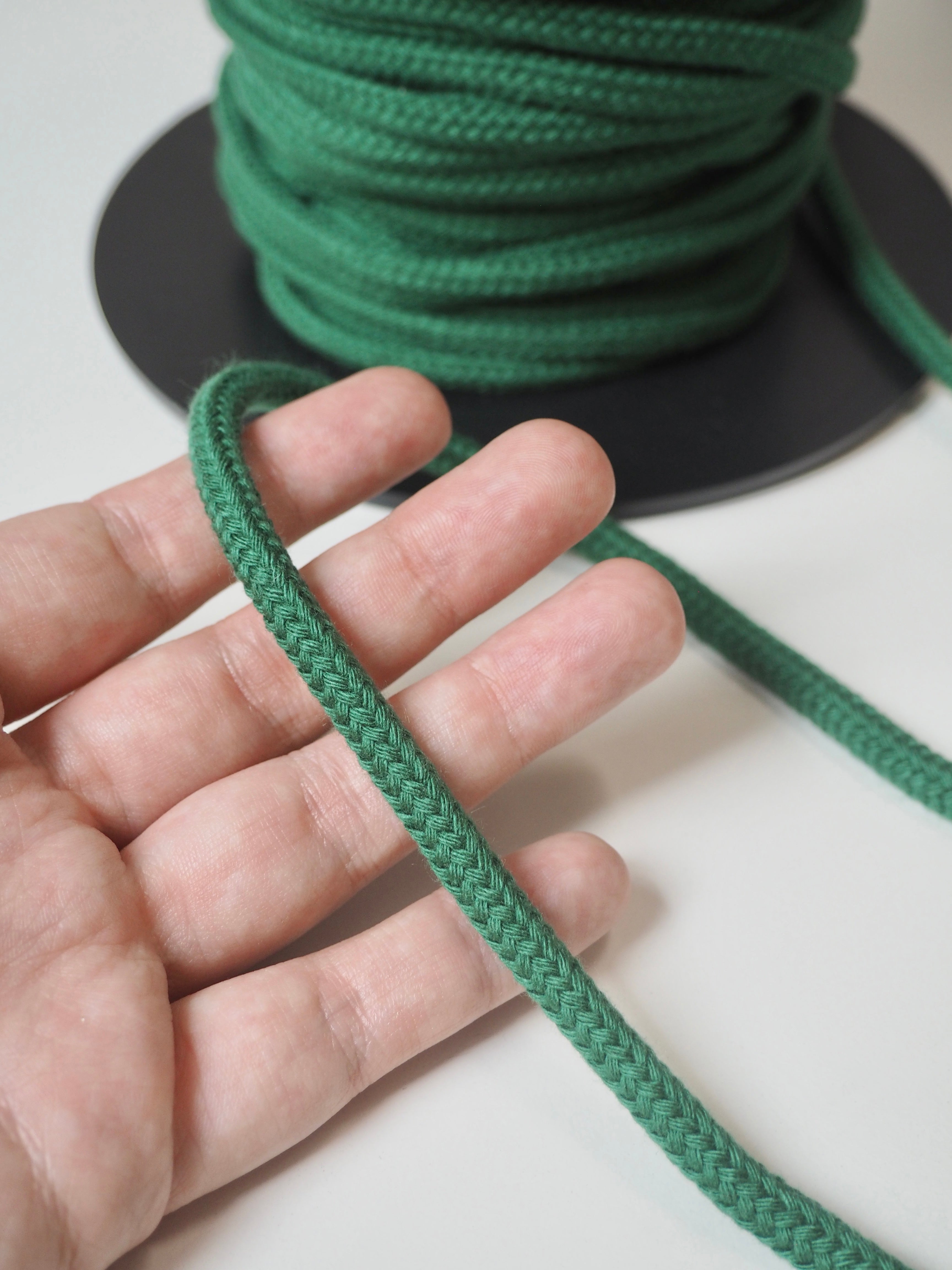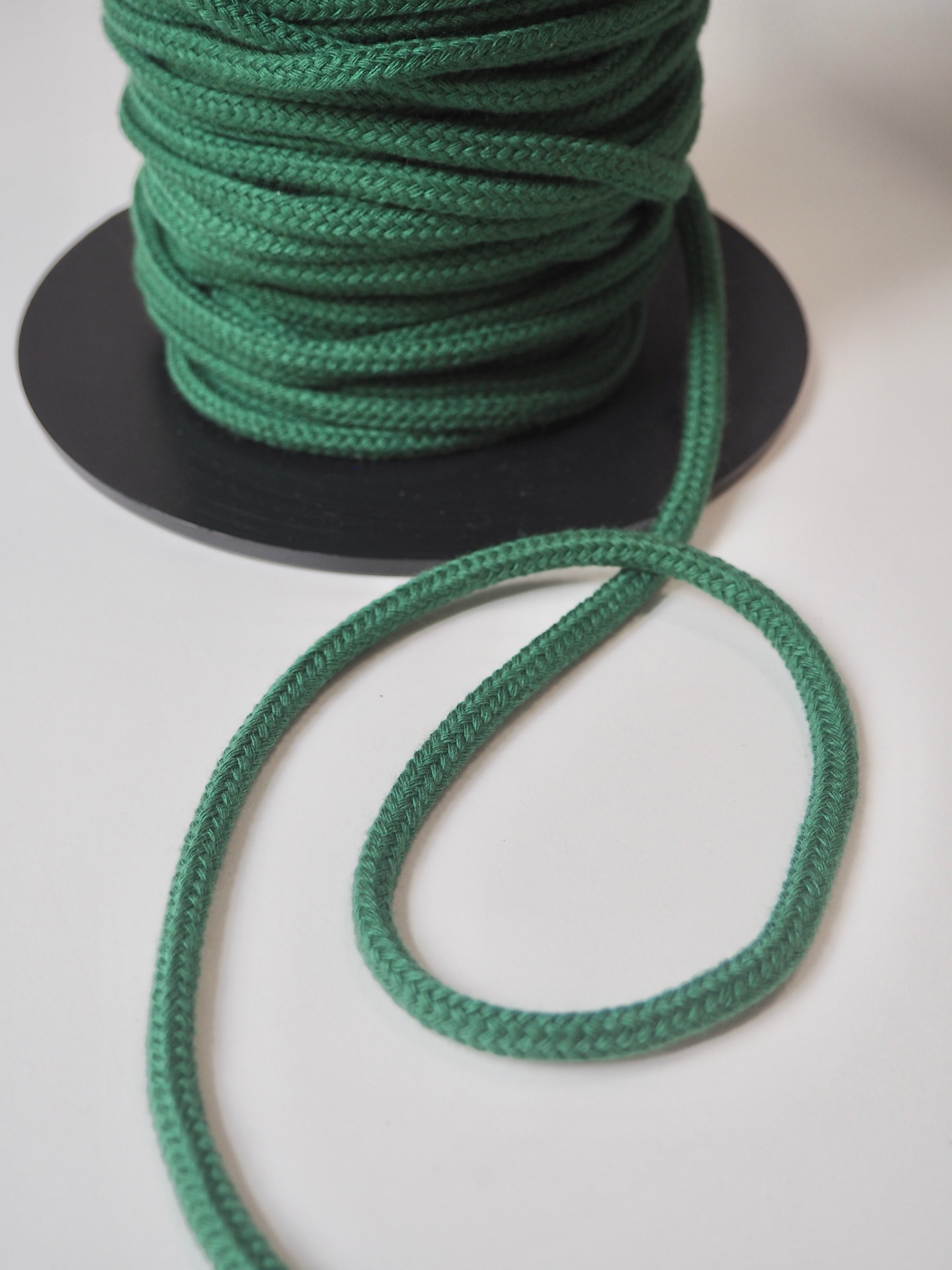 This ex-designer trim is a braided rope. It's perfect for ties on home furnishings, or as a chunky tie on a dress. It could also be used for macrame and would look great as a plant hanger! Would look great on garments as well as furnishings and home-wares.