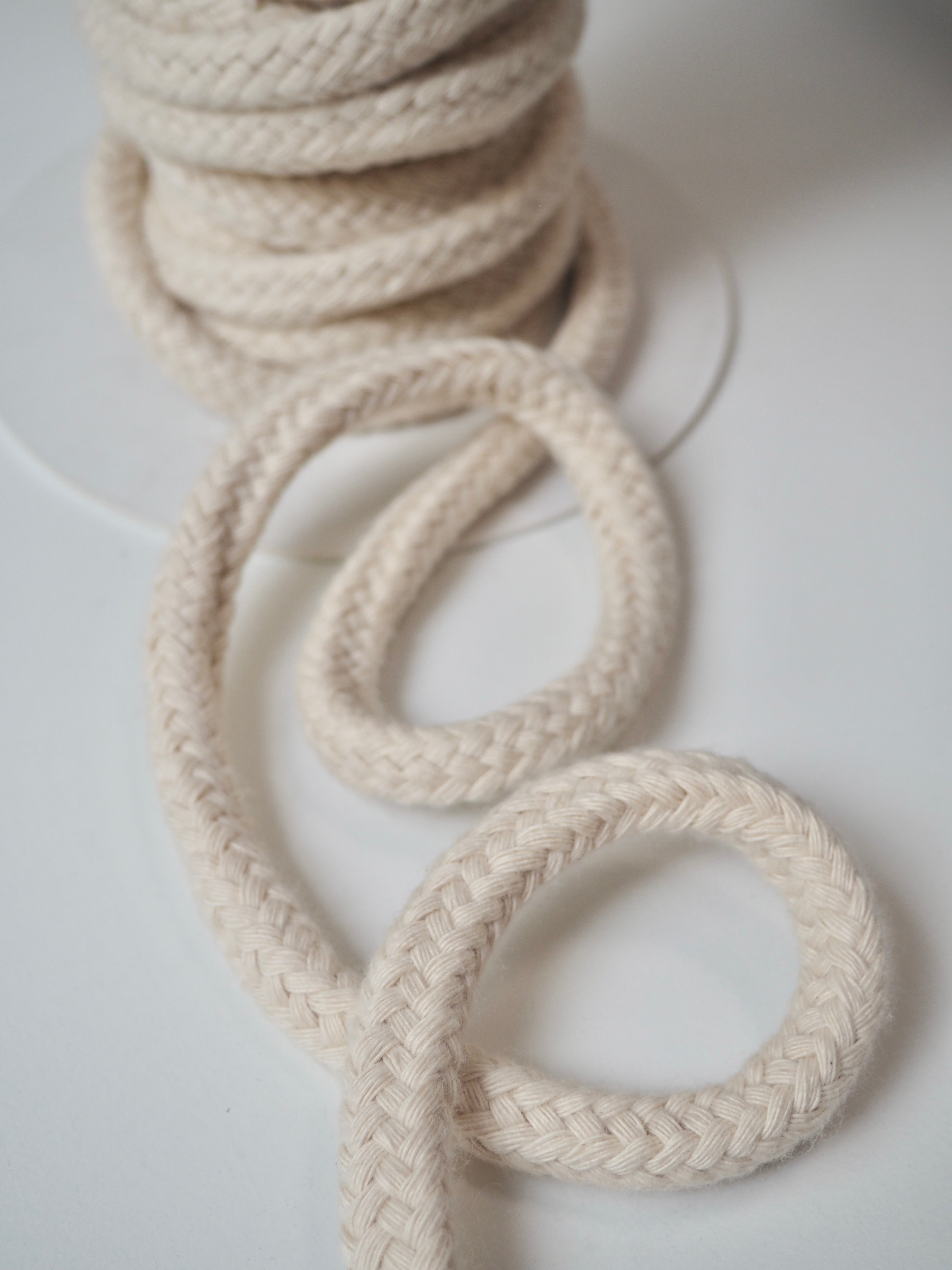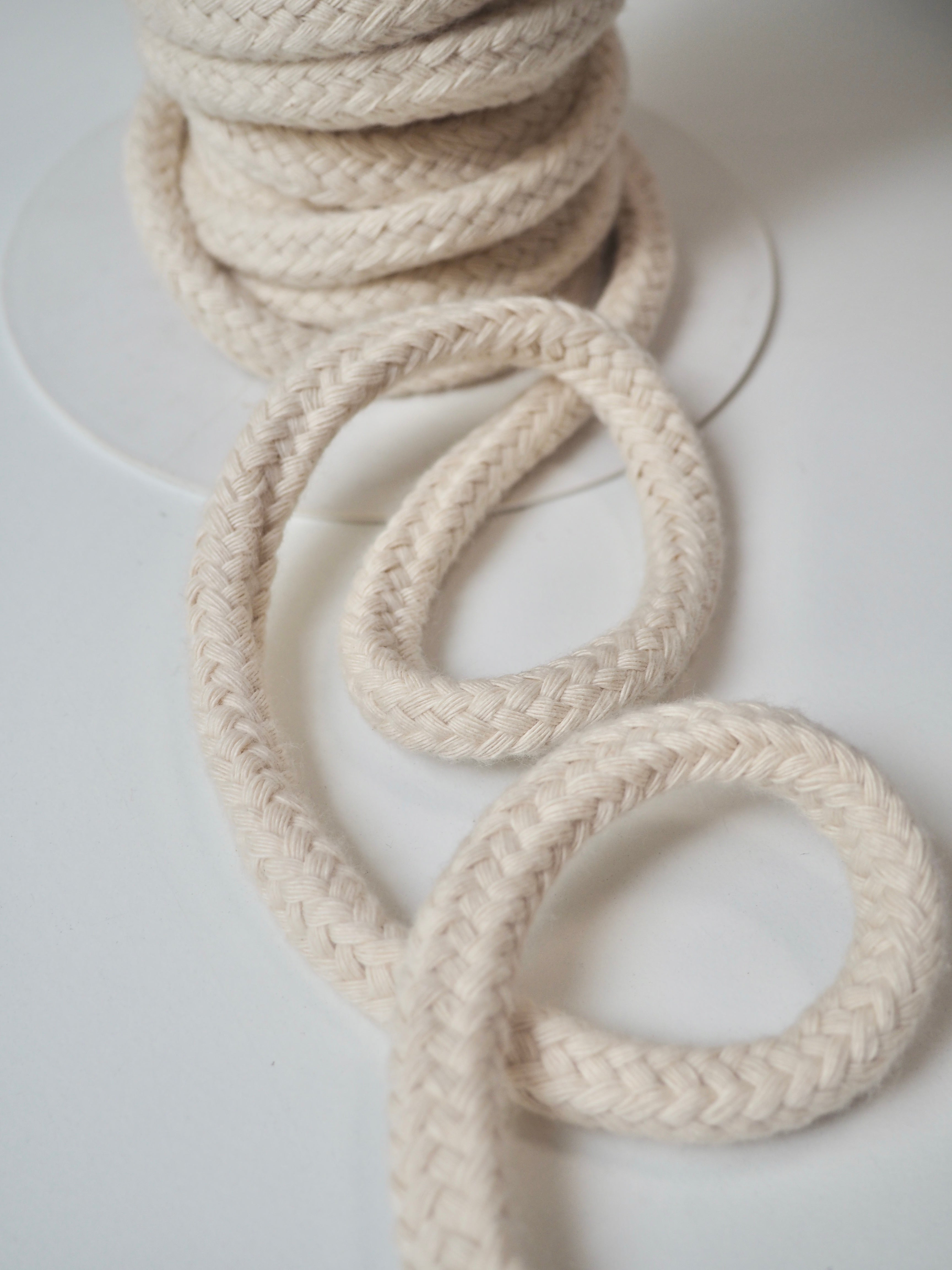 This braided rope is perfect for ties on home furnishings, or as a chunky tie on a dress. It could also be used for macrame and would look great as a plant hanger! Would look great on garments as well as furnishings and home-wares!