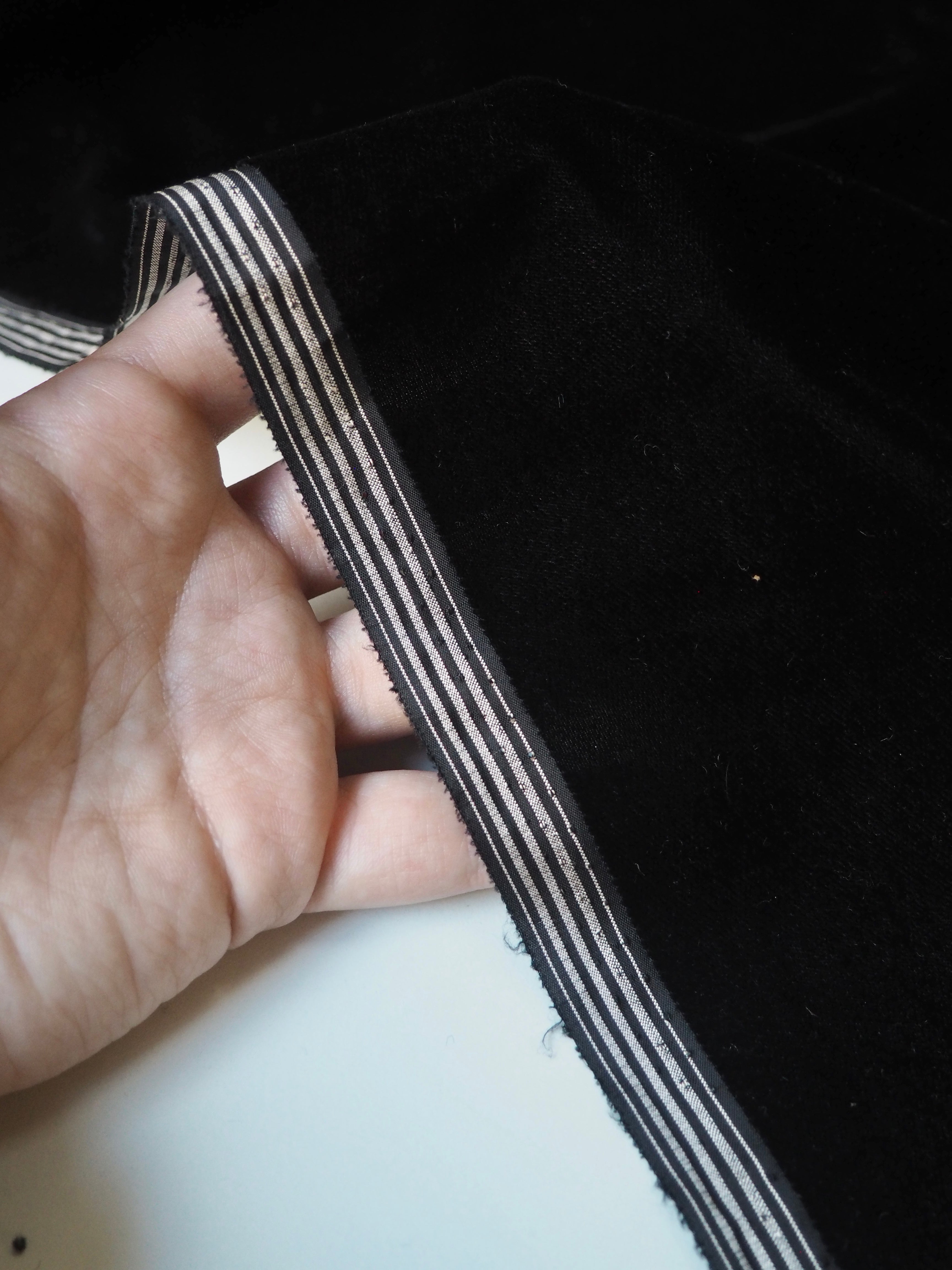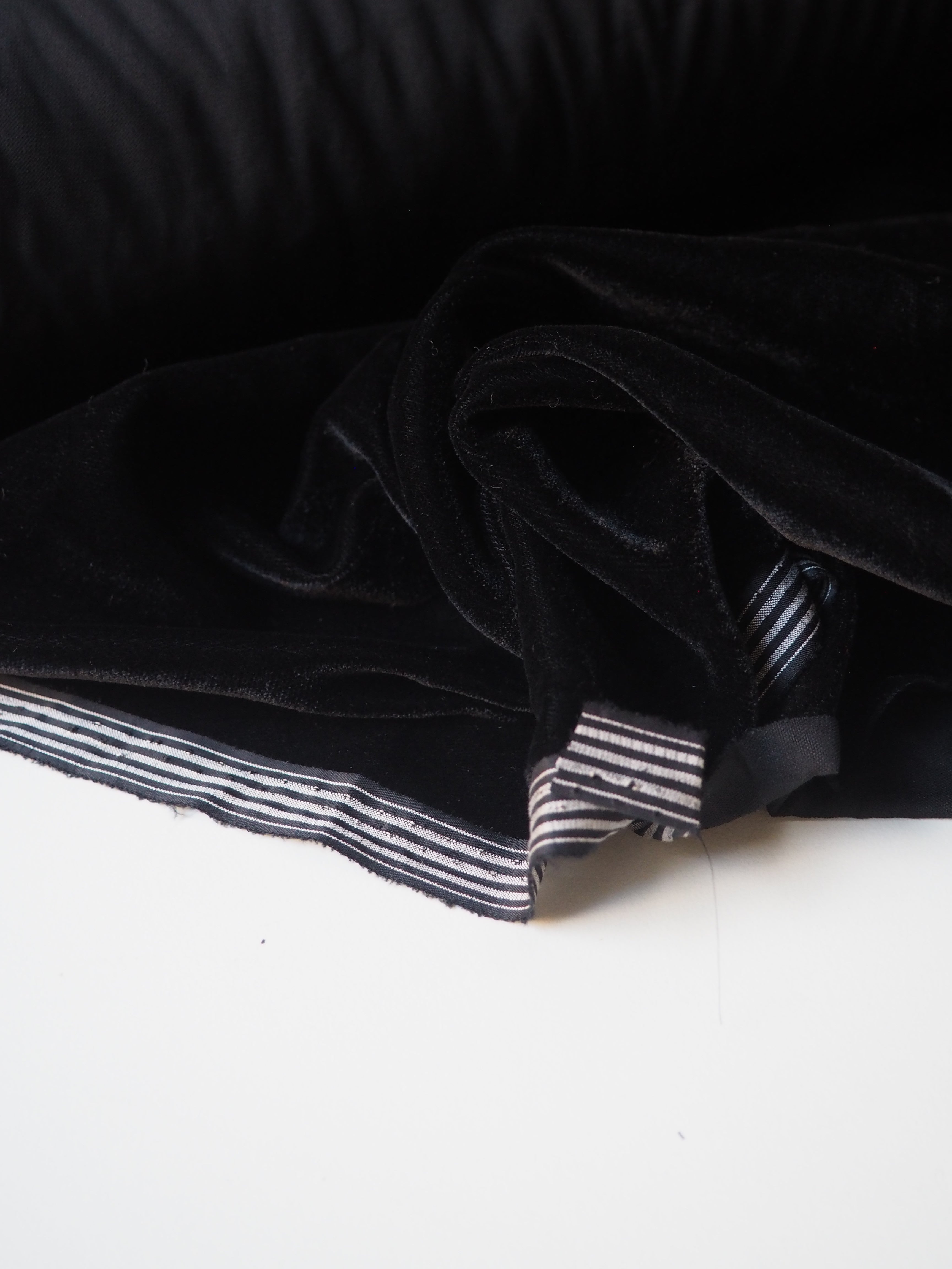 This ex-designer fabric is a sumptuous velvet. It's incredibly soft and luxurious. It has a slightly crushed finish, it came from the designer in a box, so the pile has slight pressure marks. This should revive with steam and brushing! It's opaque, with such a beautiful sheen. Has a light to medium pile that is wonderful to handle. Lightweight and with a beautiful drape and lovely movement. Perfect for a dress or even a blouse!