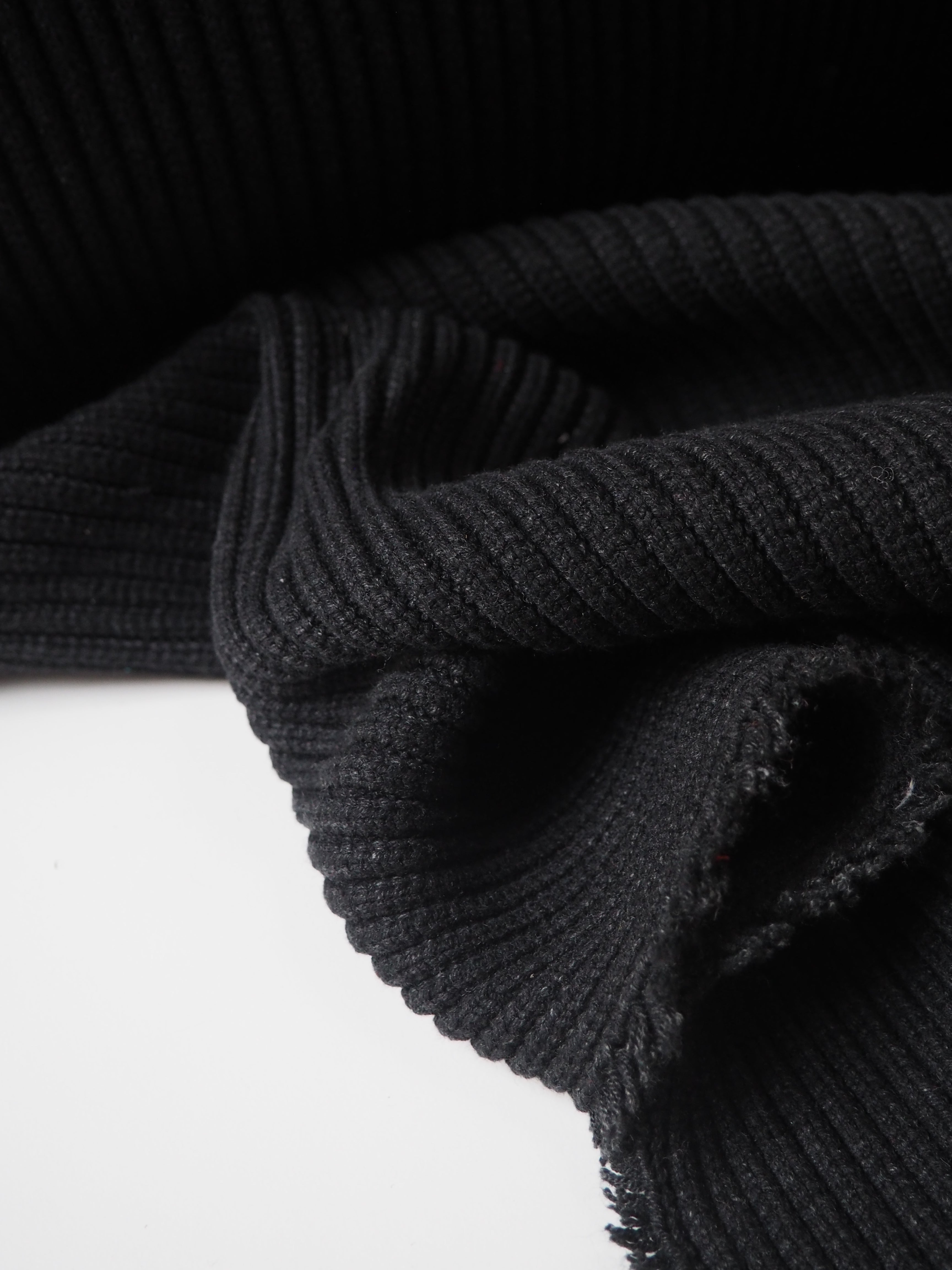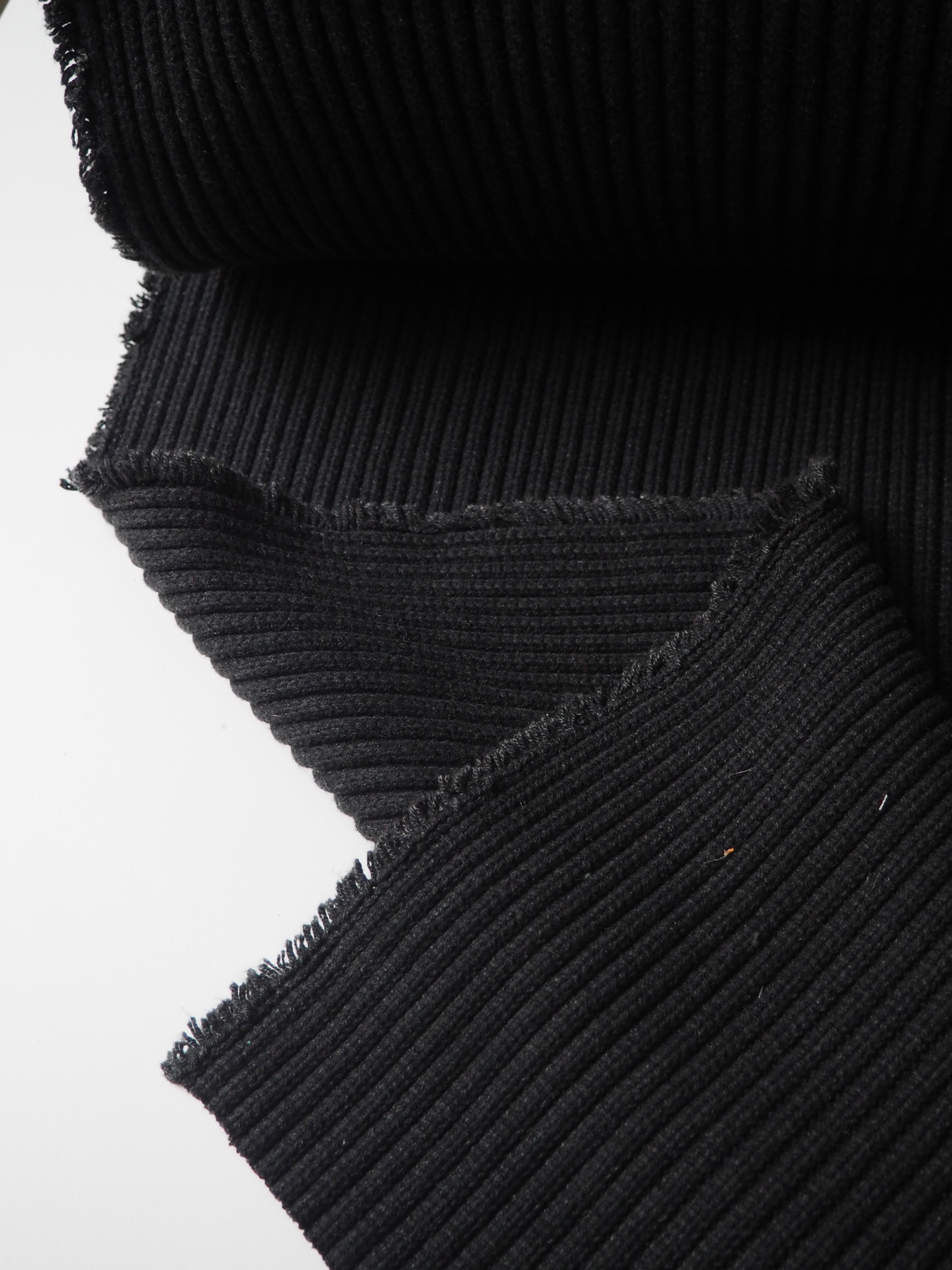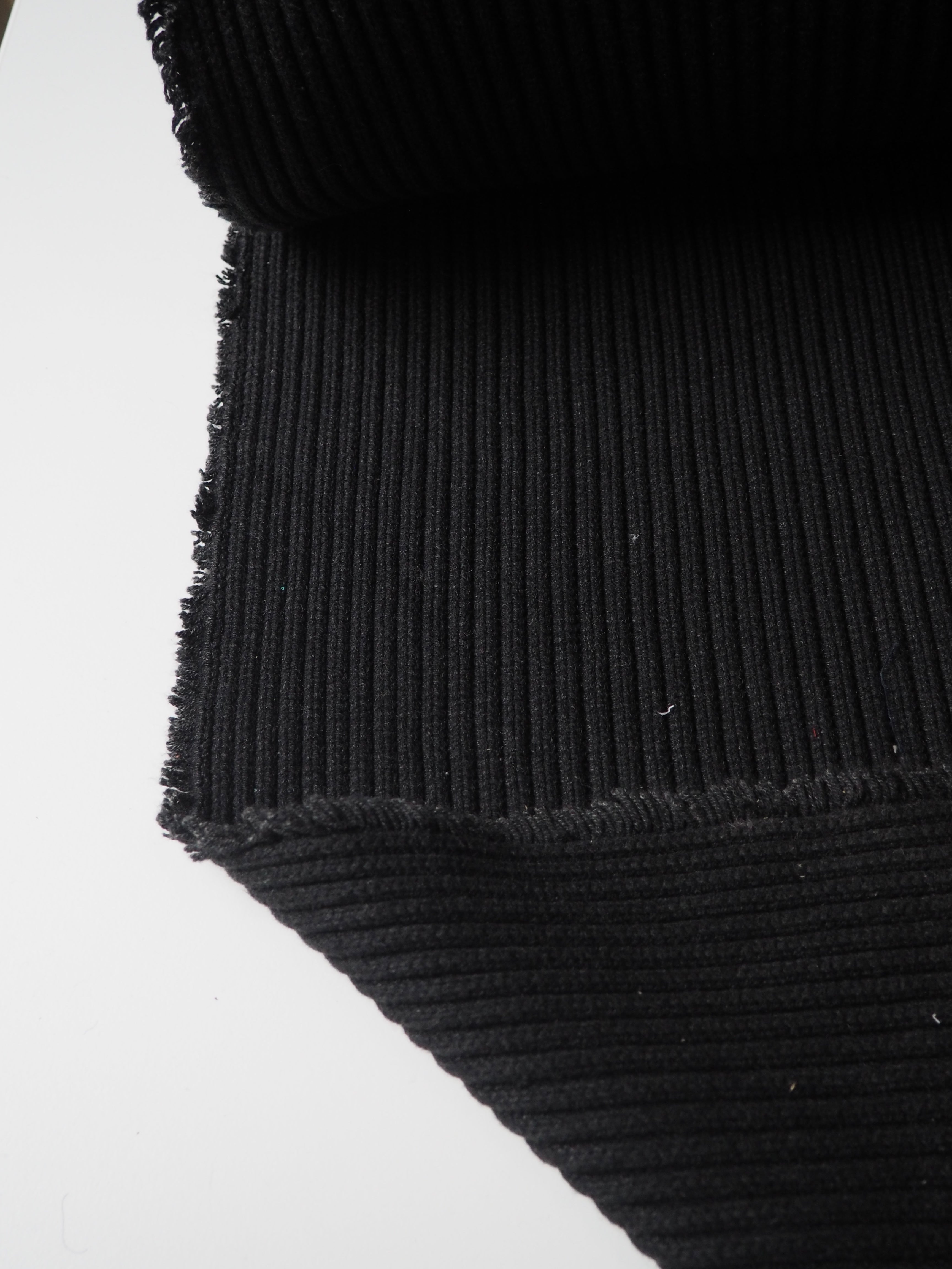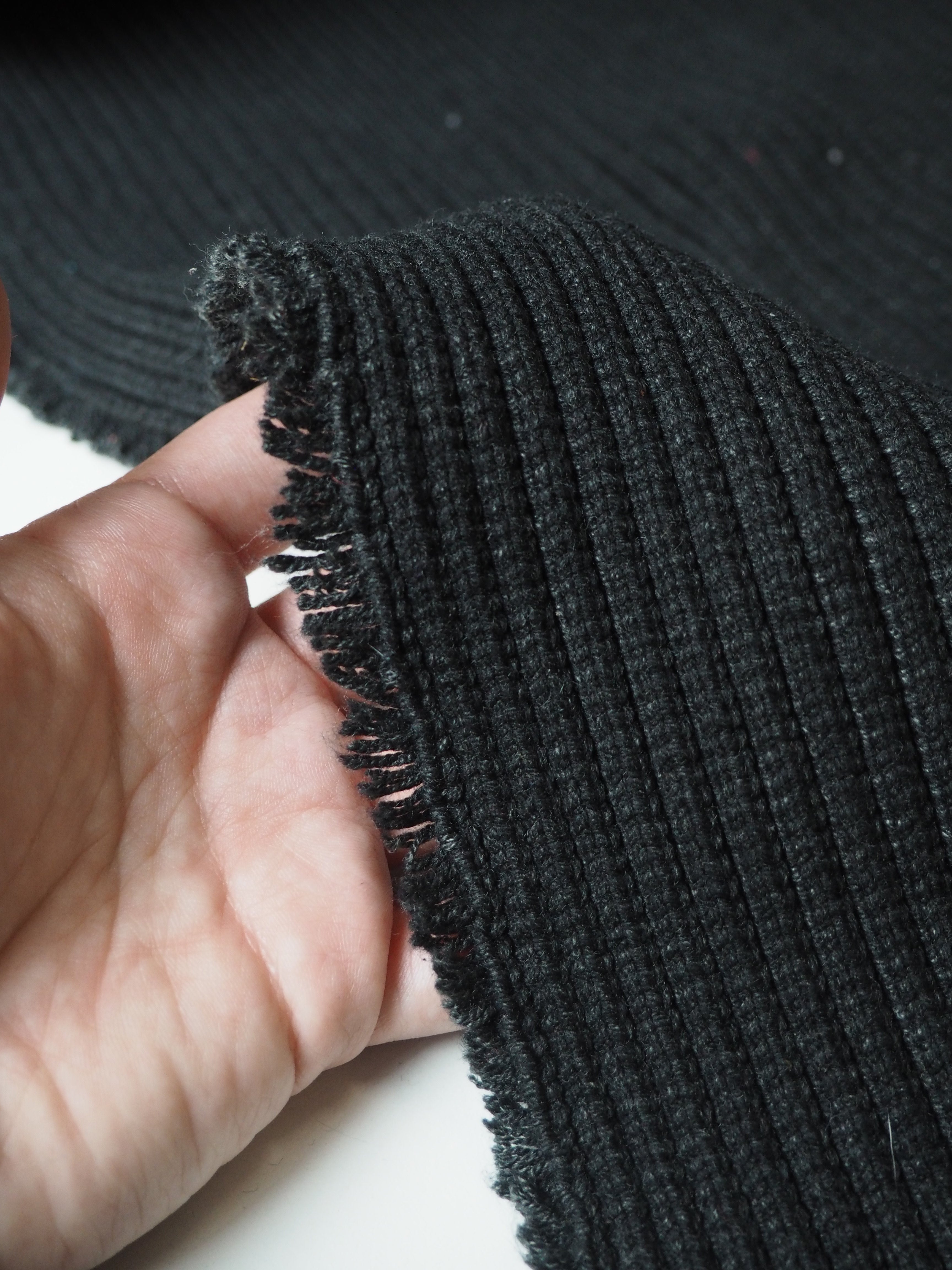 This ex-designer fabric is a chunky jersey. It has a chunky 2x2 rib structure and is super soft! Medium weight with a chunky handle and great texture. A good amount of stretch, approximately 30% width-ways. Great for a vest!