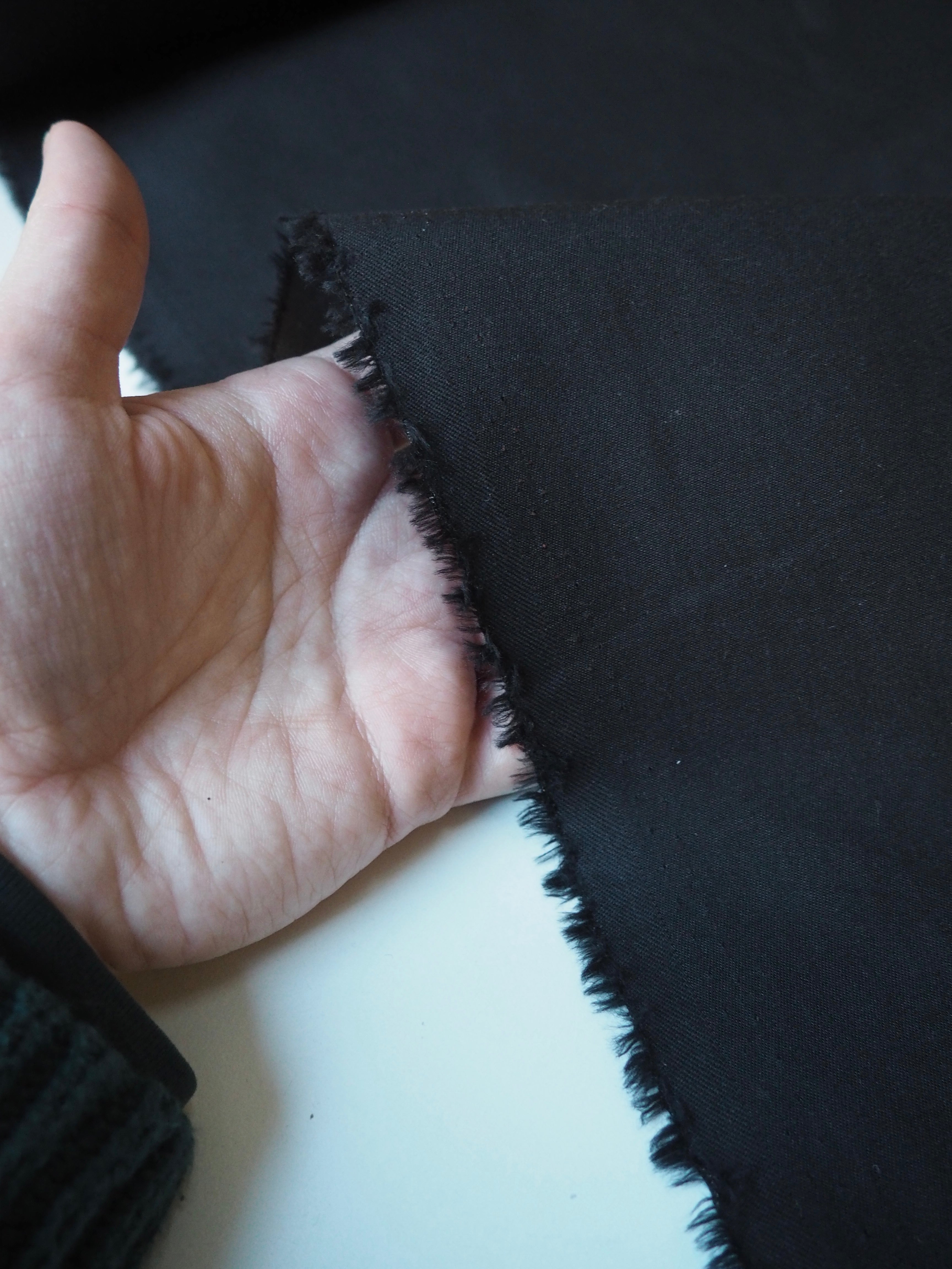 This ex-designer fabric is a cotton gabardine. Gabardine is a sturdy weight cloth with twill on one side, and a smooth flat reverse. It's lightweight with a nice crisp feel and flat finish. Has a lovely soft structure that makes it perfect for trench jackets, trousers, shorts, or our Lunar Jacket!