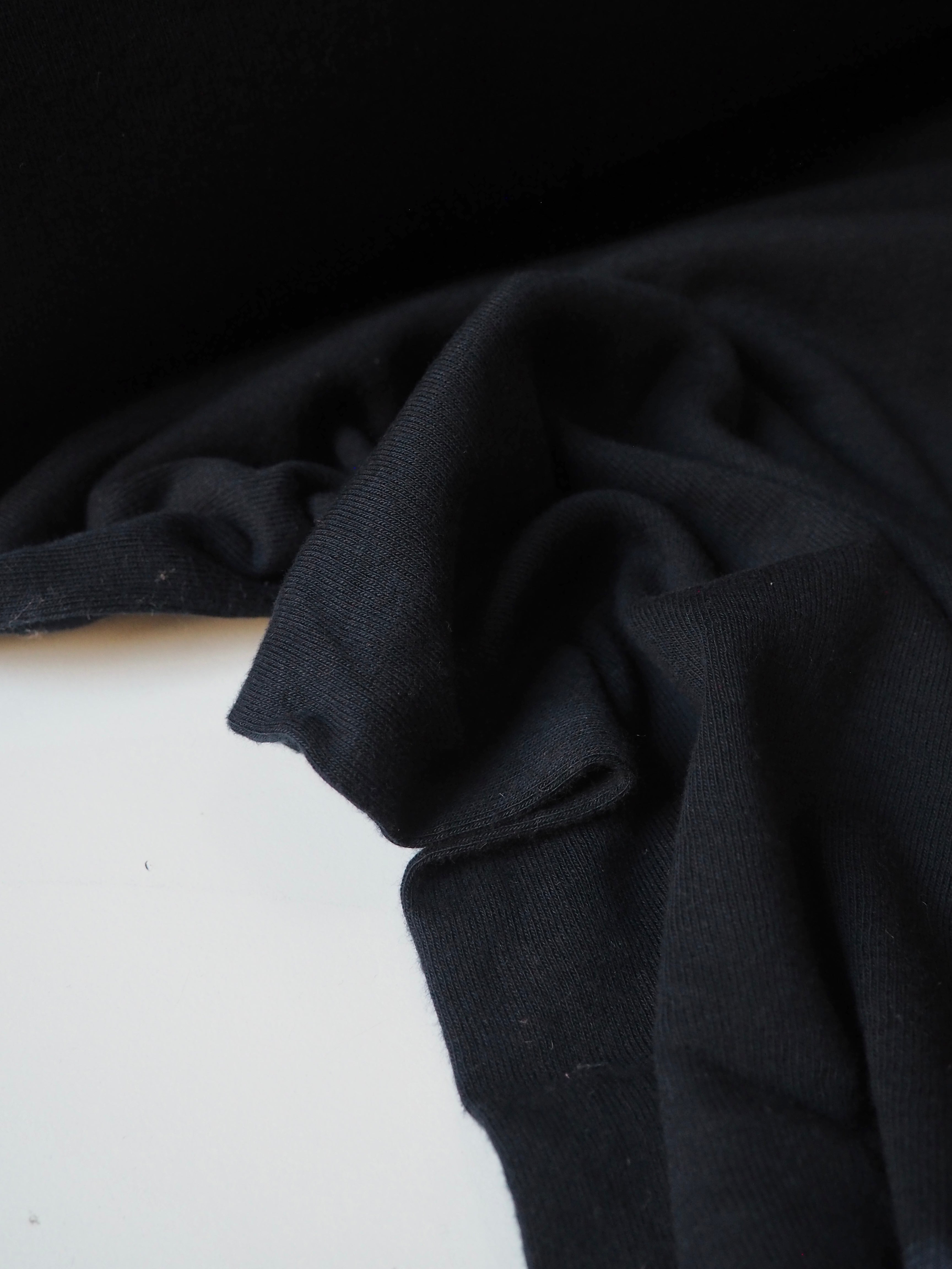 This ex-designer fabric is a soft 1x1 ribbing. It's very soft and stretchy, with about 40% width-ways stretch. Super cosy with an amazing cotton handle, and lightweight. Great for cuffs and hems, everyday basics, or any comfy loungewear!