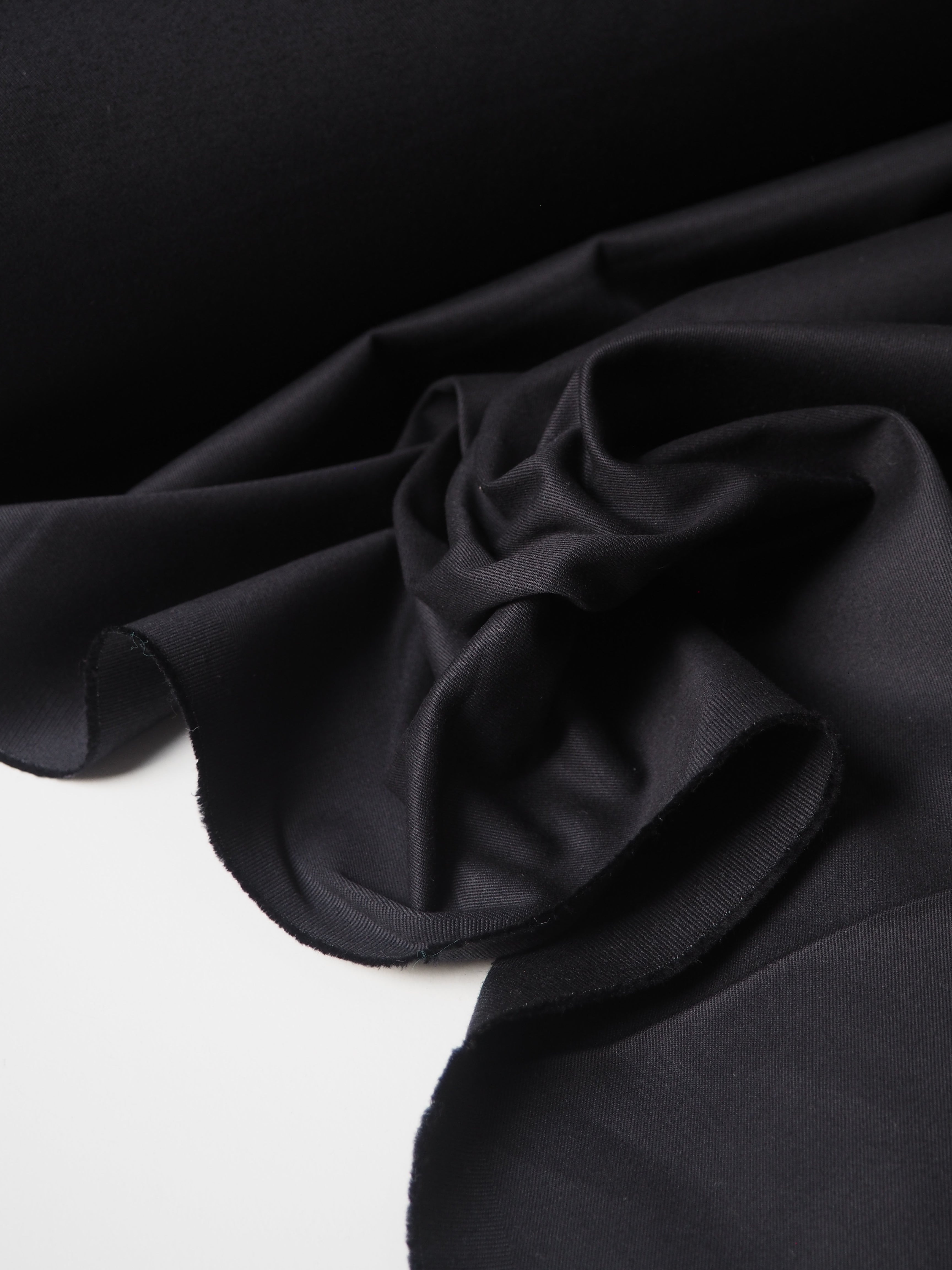 This ex-designer fabric is a stretch cotton twill. It's a sturdy weight twill with a bit of give. It's lightweight with a nice crisp feel and very slight sheen finish. This one is from top-quality UK Manufacturer Brisbane Moss. Has a lovely soft structure that makes it perfect for trench jackets, trousers, shorts, or our Lunar Jacket