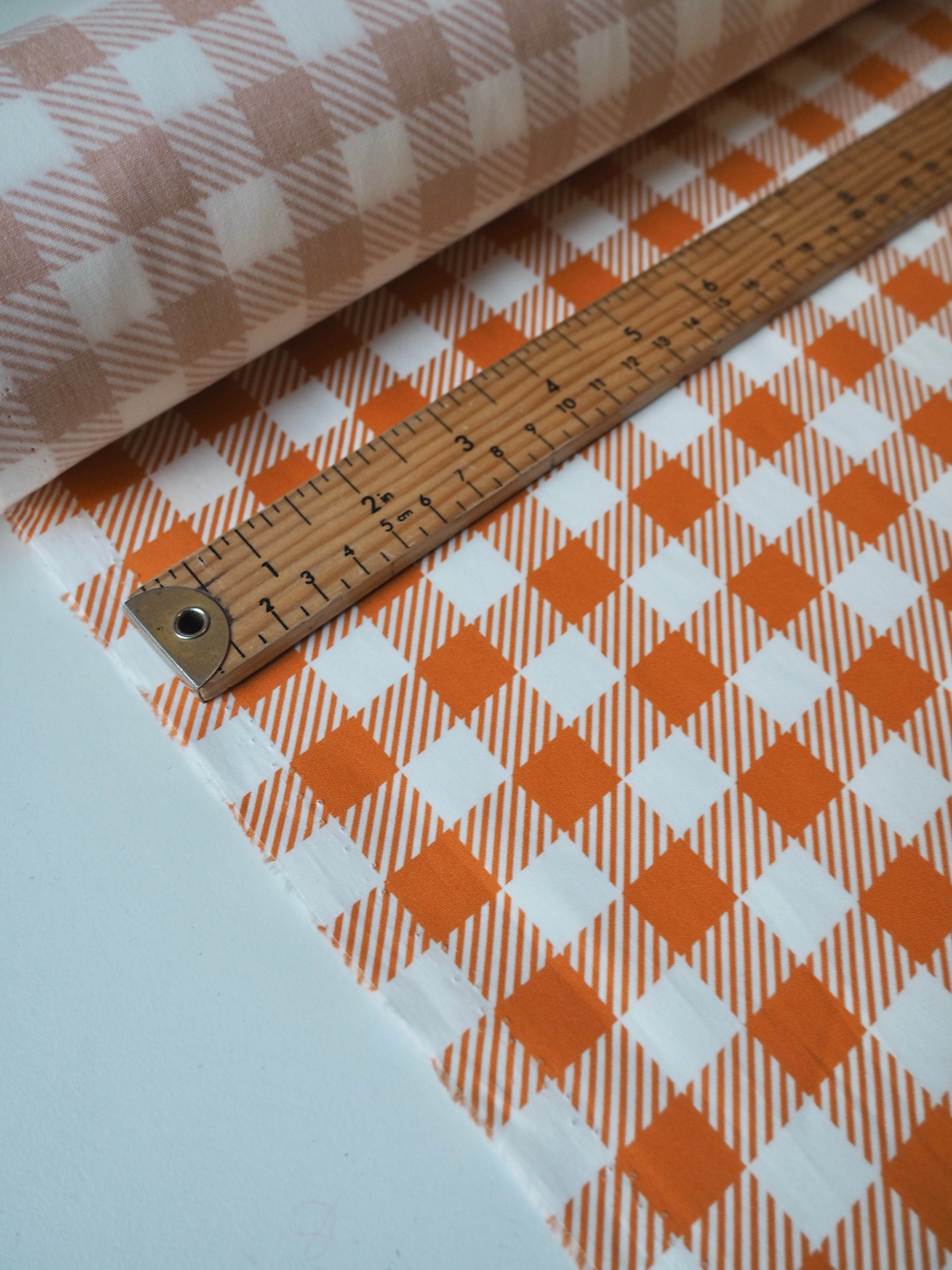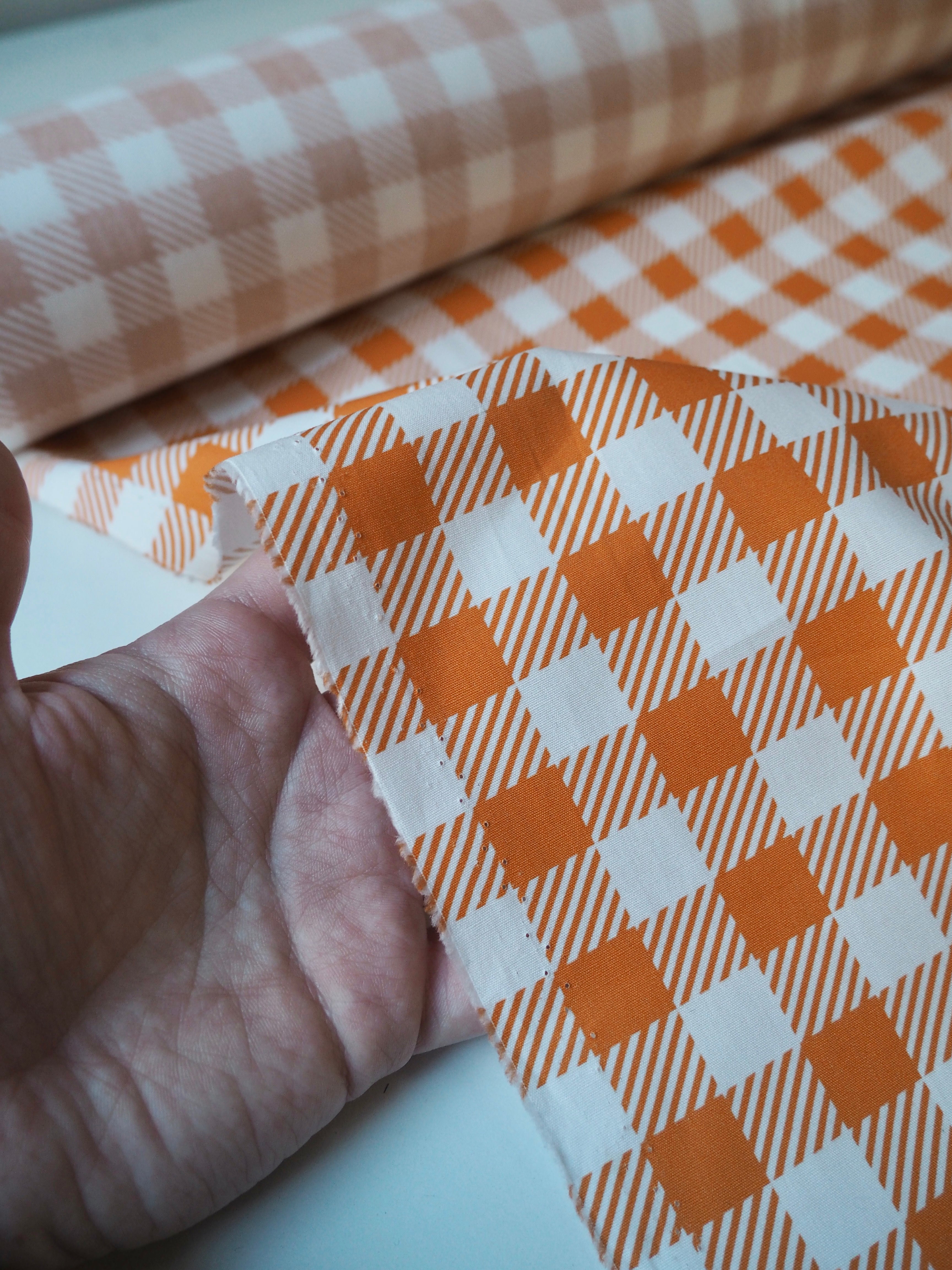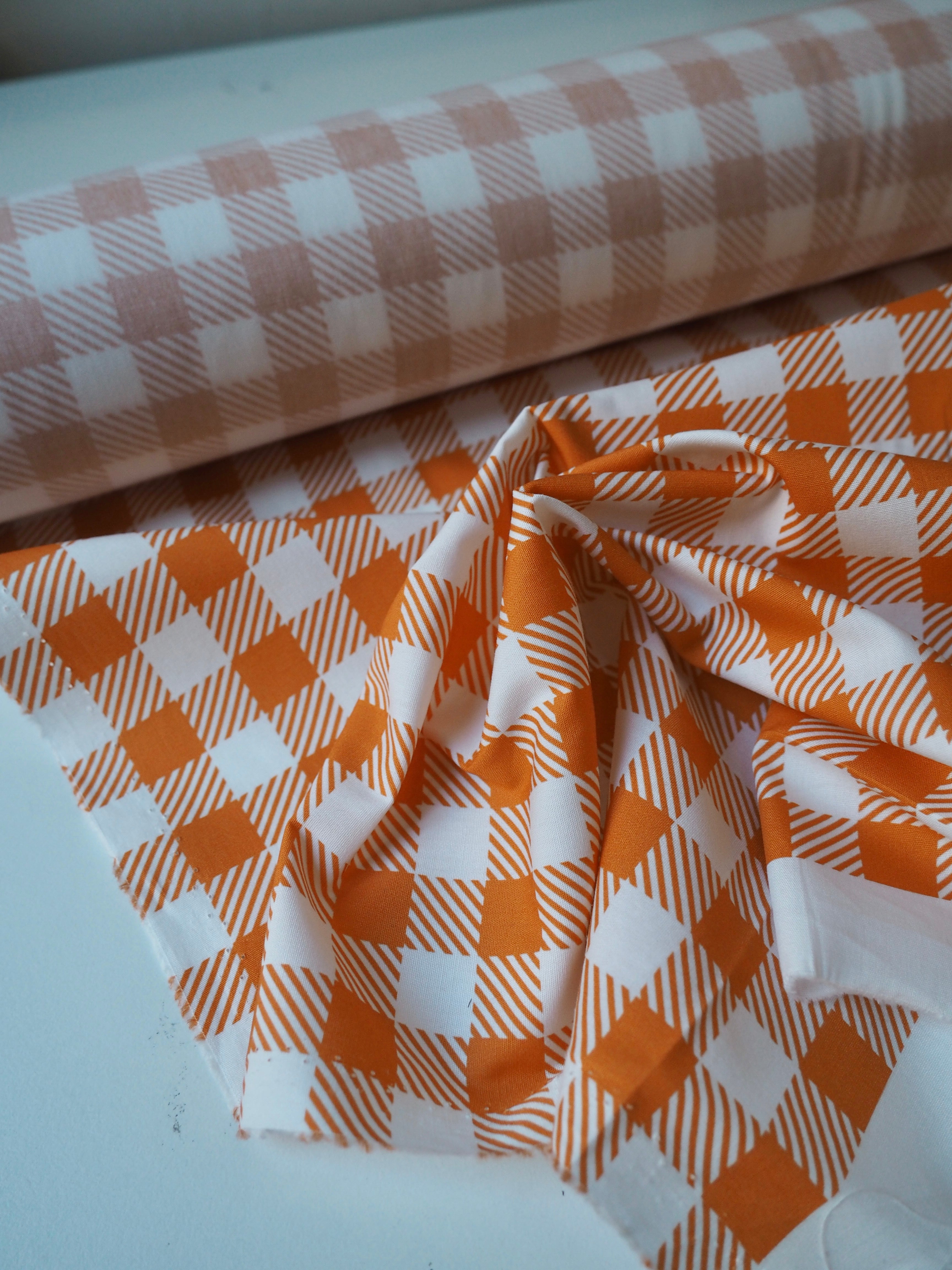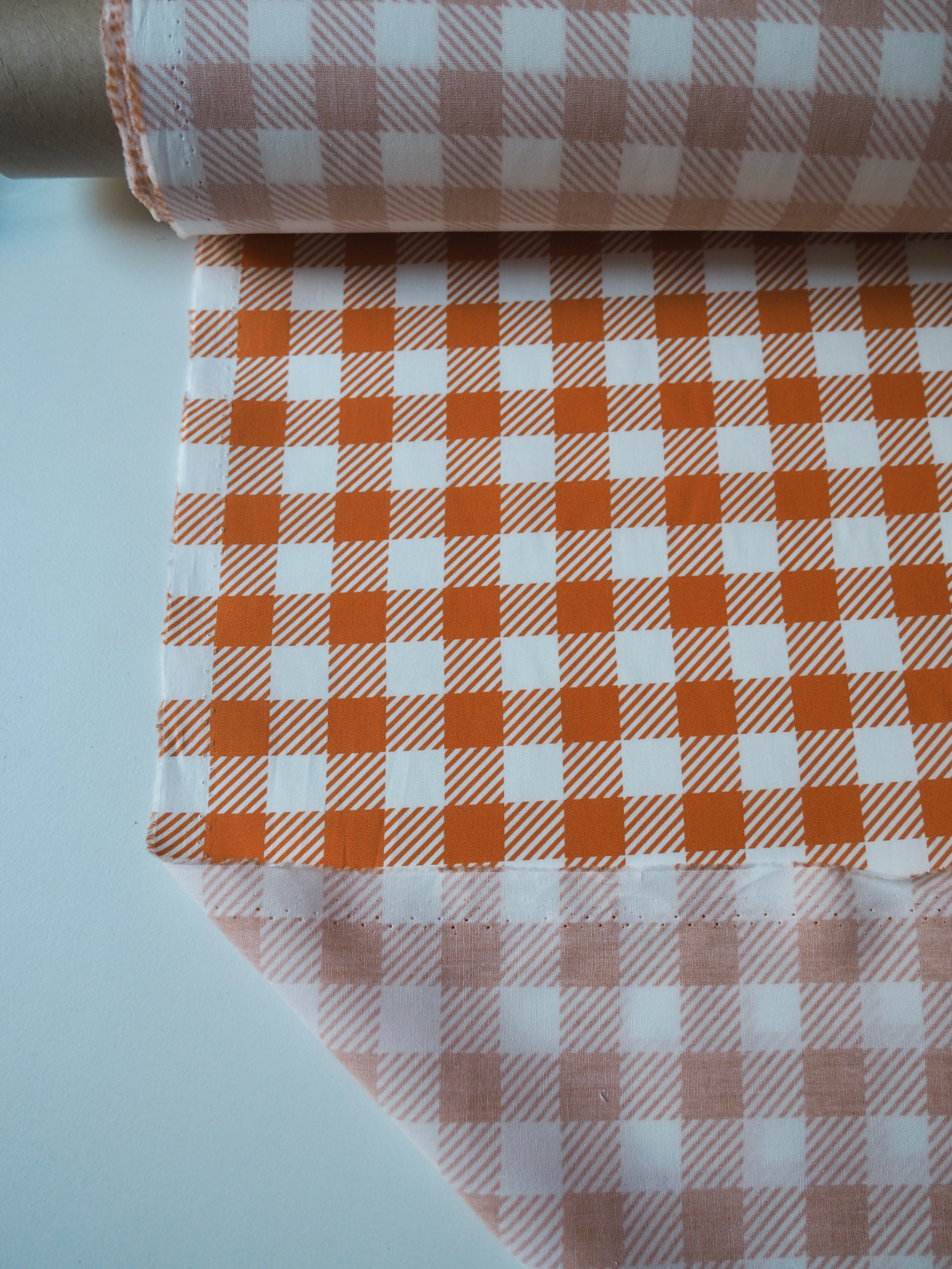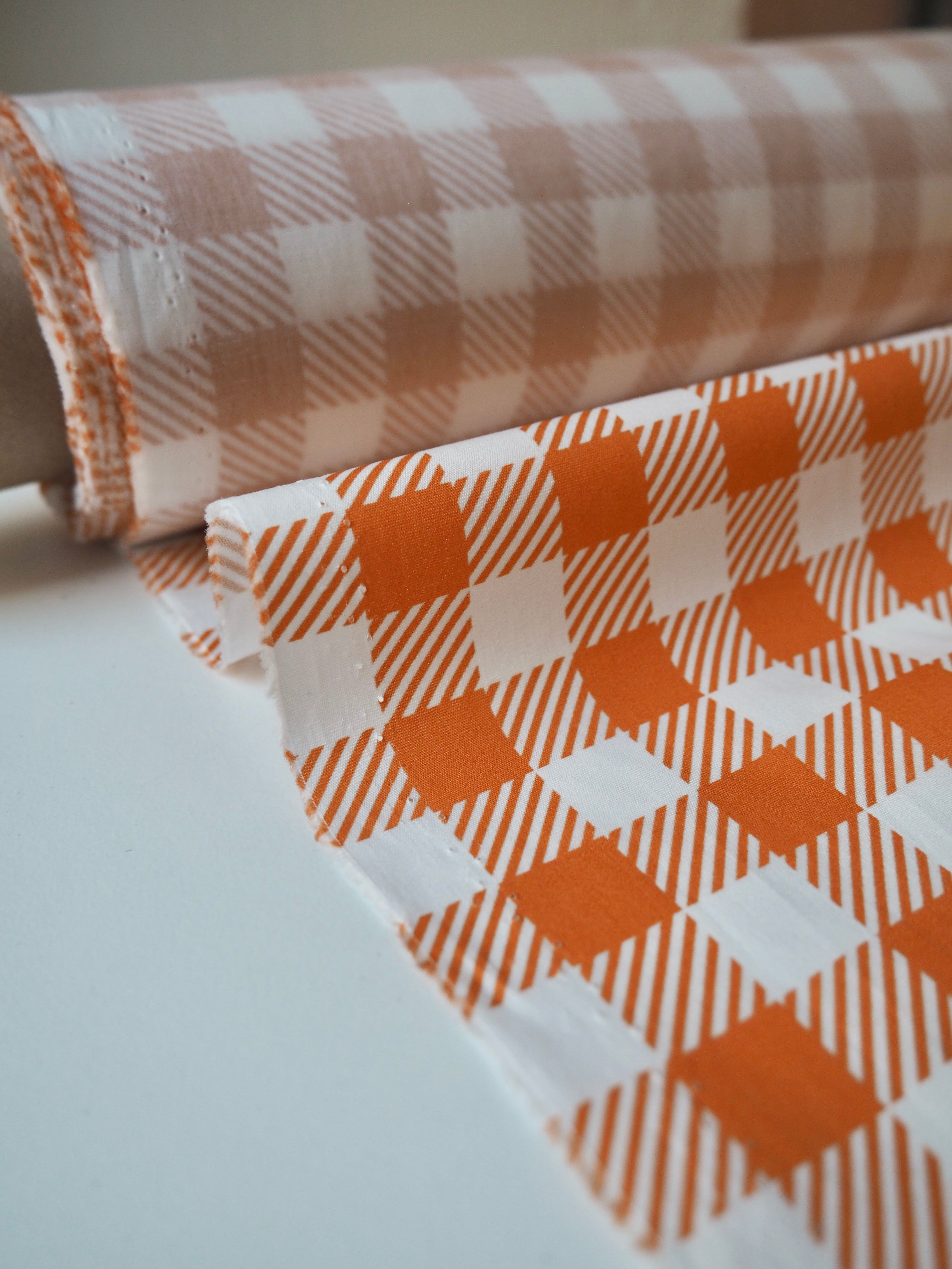 This ex-designer fabric is a cotton poplin. It's in a lovely check. It is lightweight with a gently structured, slightly crispy drape. Opaque, with a really lovely handle and quality. Perfect for dresses and button downs!