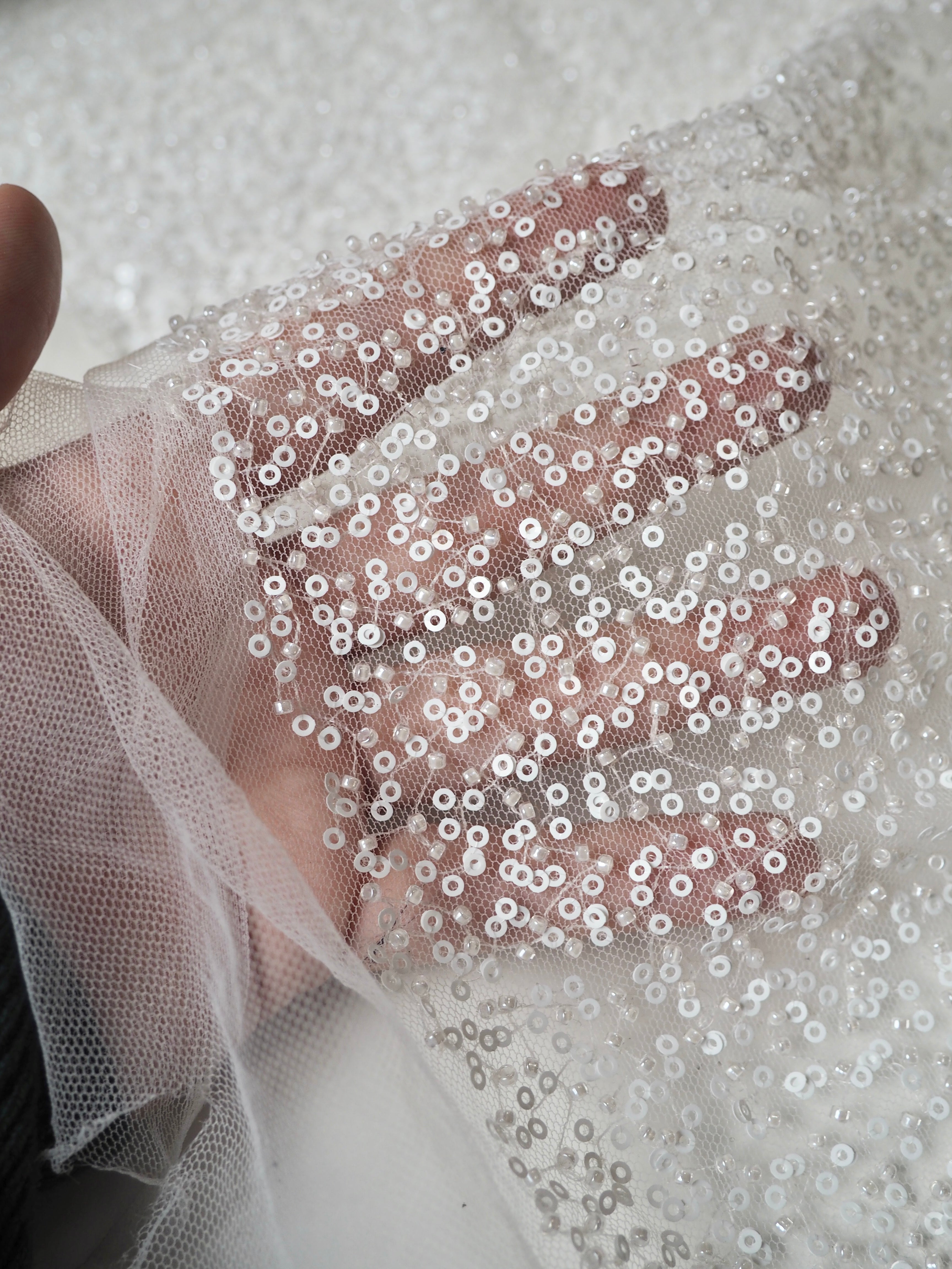 White Beaded Sequin Tulle