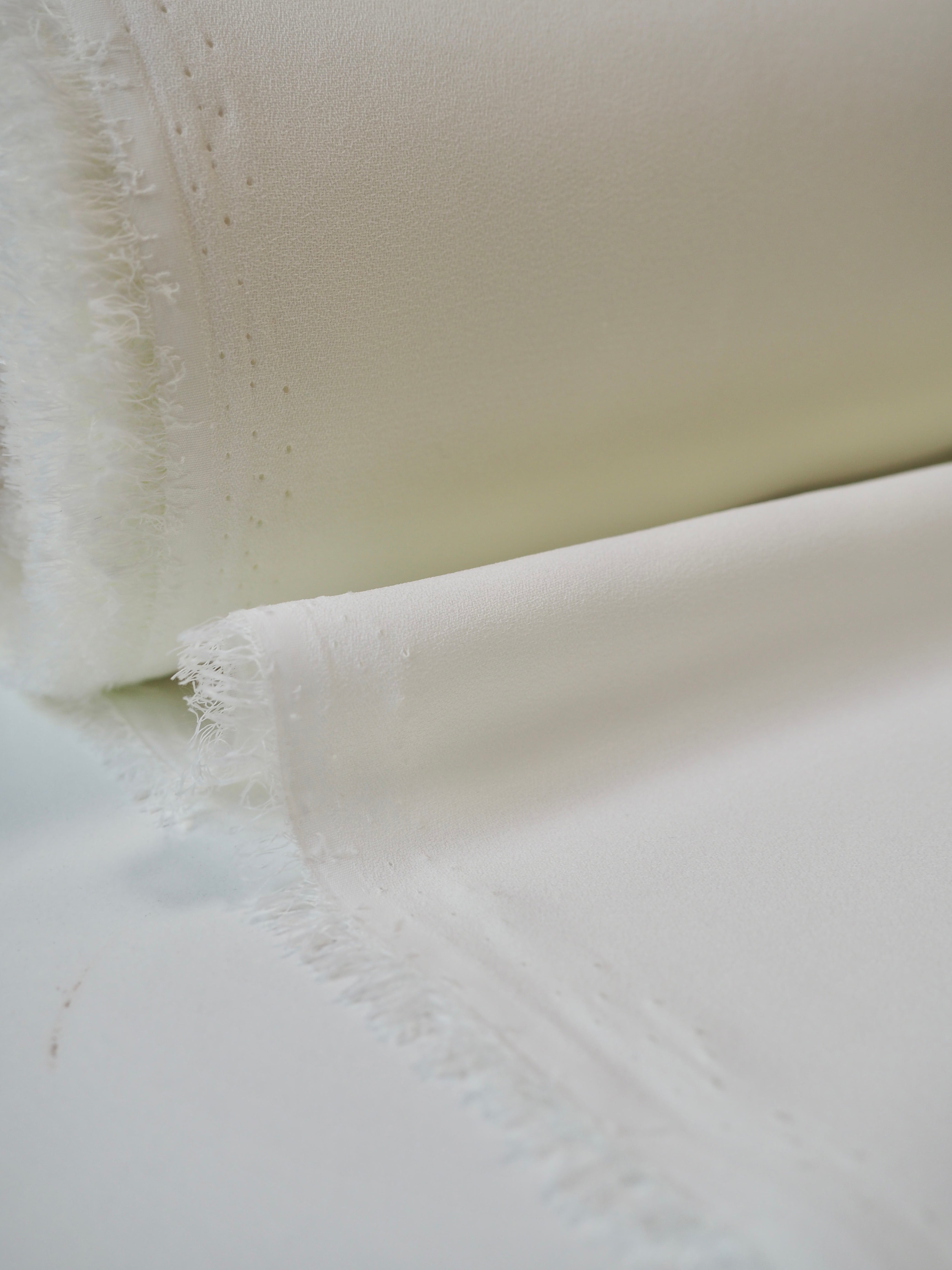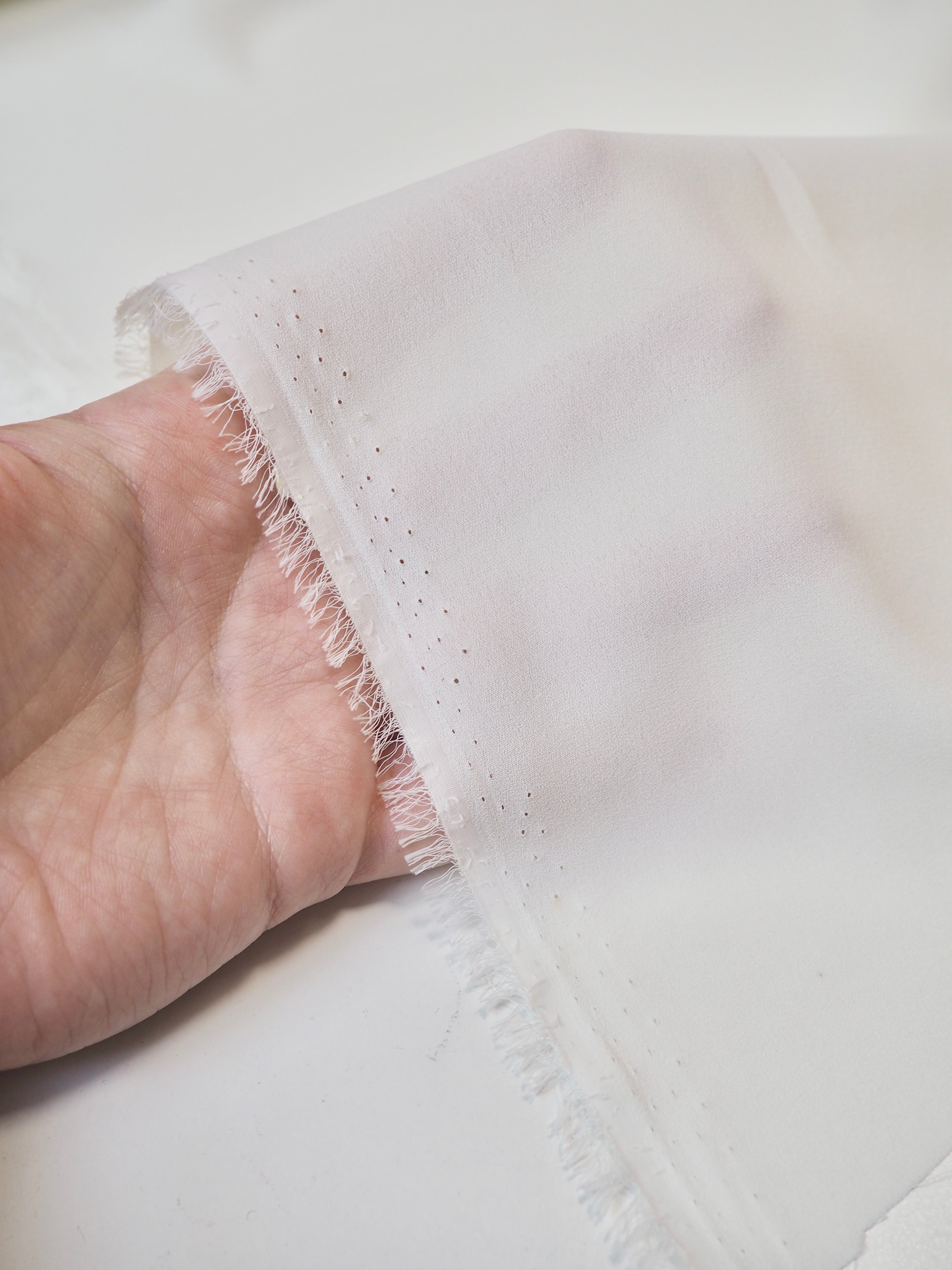 This ex-designer fabric is a crepe. It's a lovely lightweight crepe, with a handle quite similar to a georgette. It has wonderful movement and is very drapey. Has a lovely soft handle, and is slightly sheer, so it might need to be lined. Perfect for long dresses, peasant blouses, and bridal!