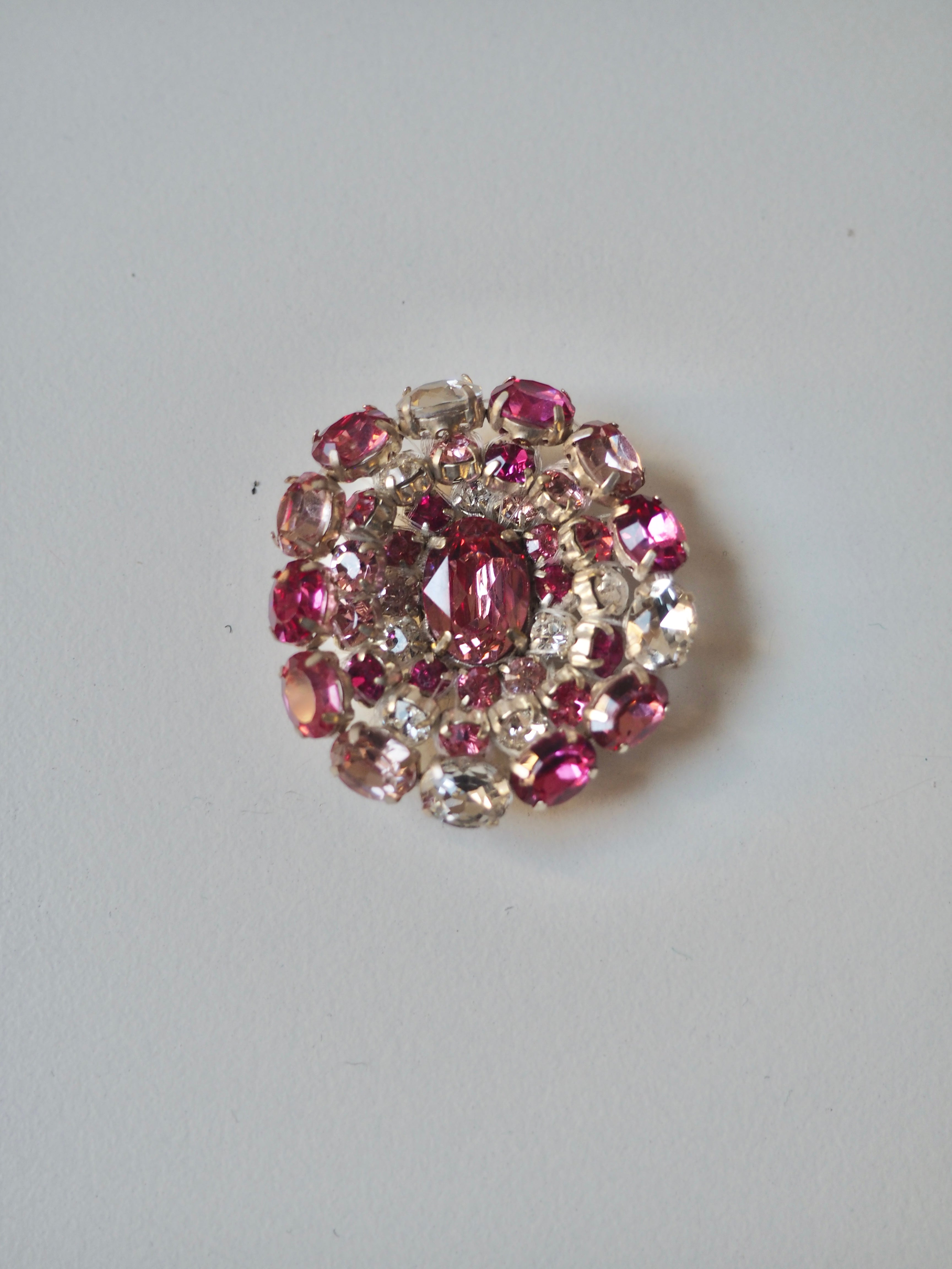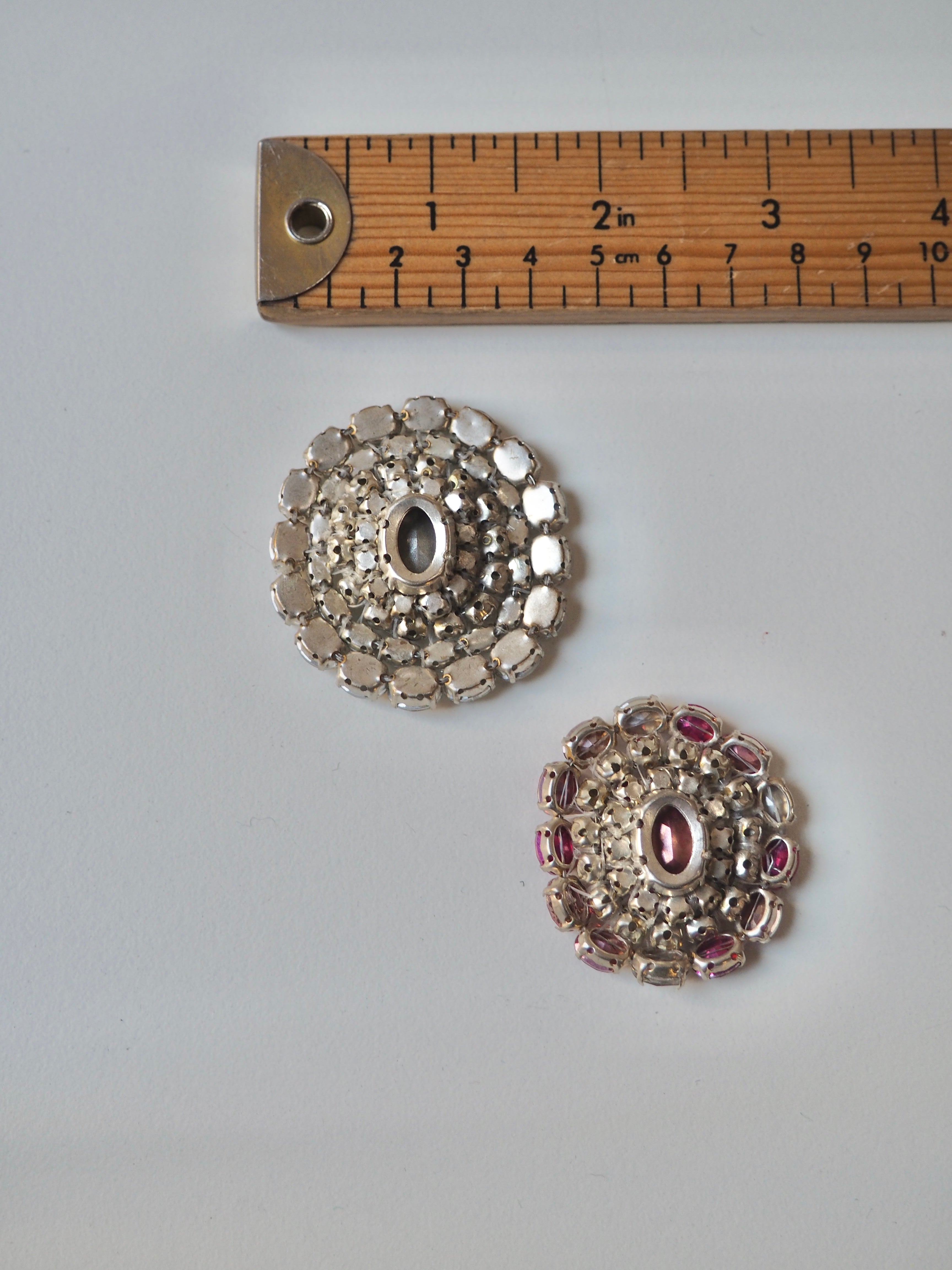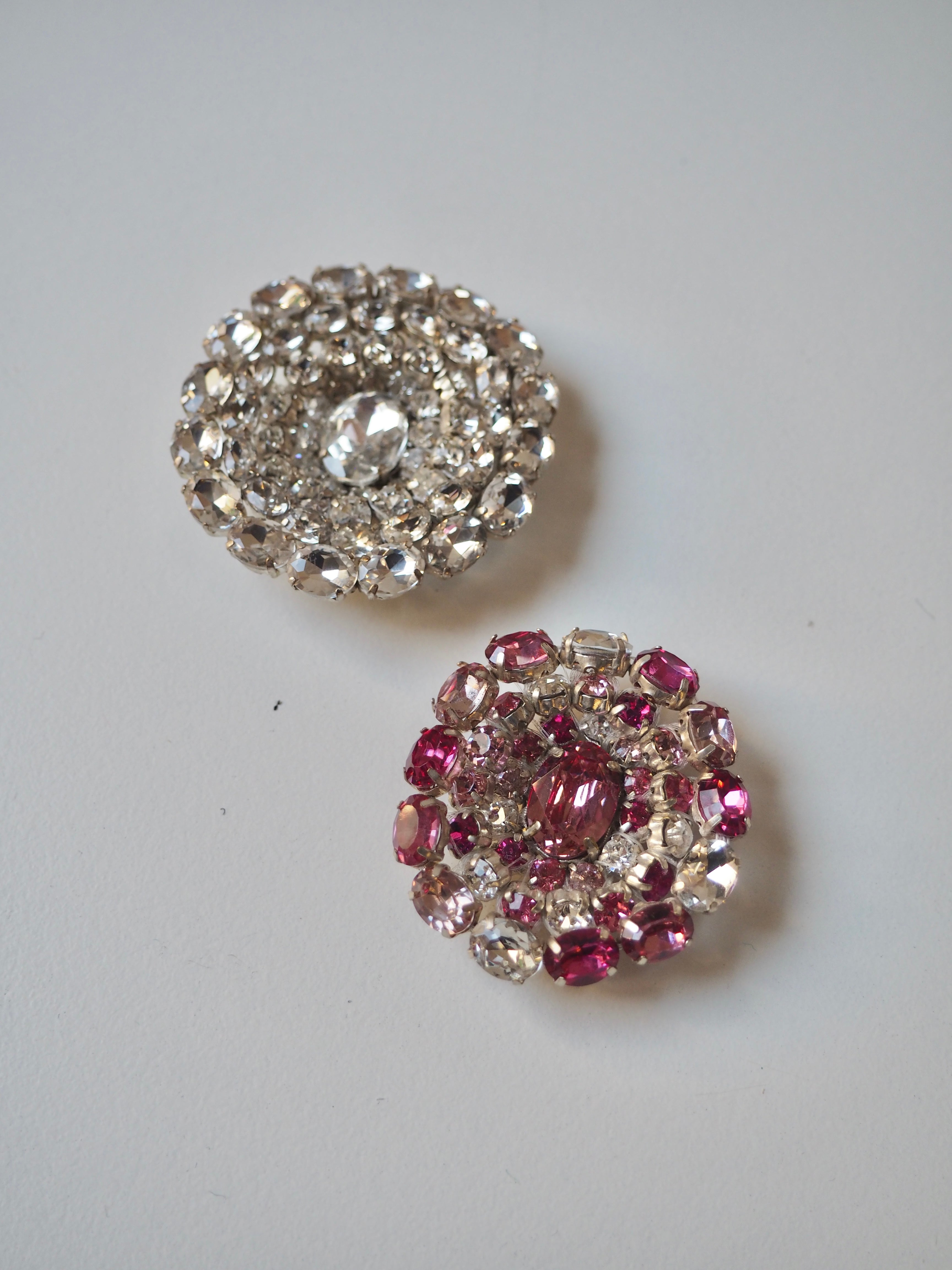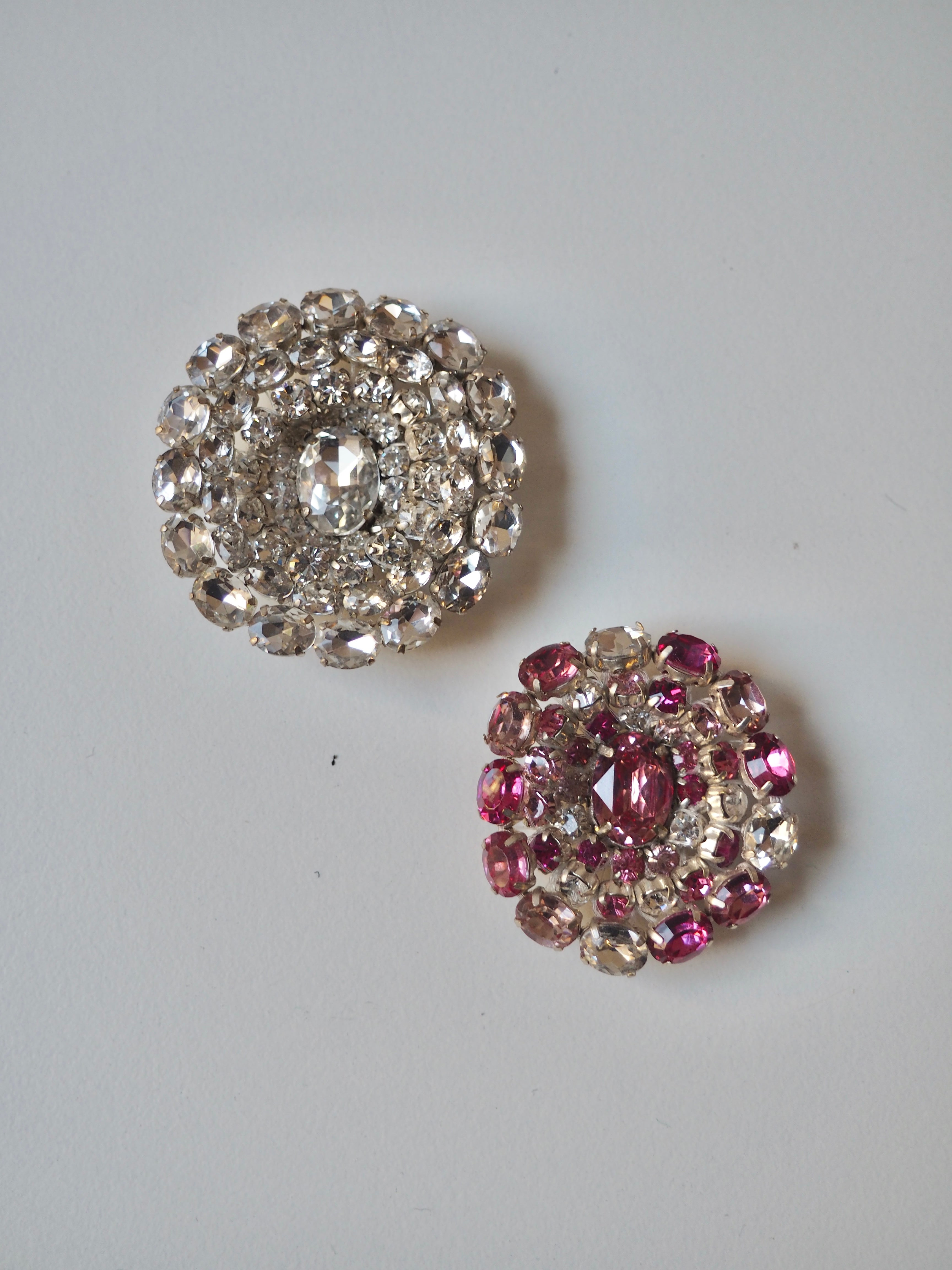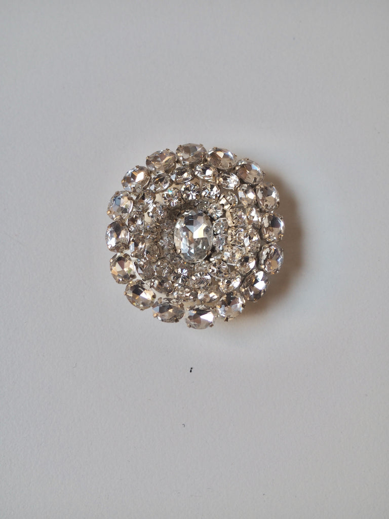 This ex-designer trim is an embellishment. It has an oval design with a target shape of crystal extending outwards. So sparkly and meant to stand out! Lightweight and easy to attach by hand to a costume or special occasion piece!
