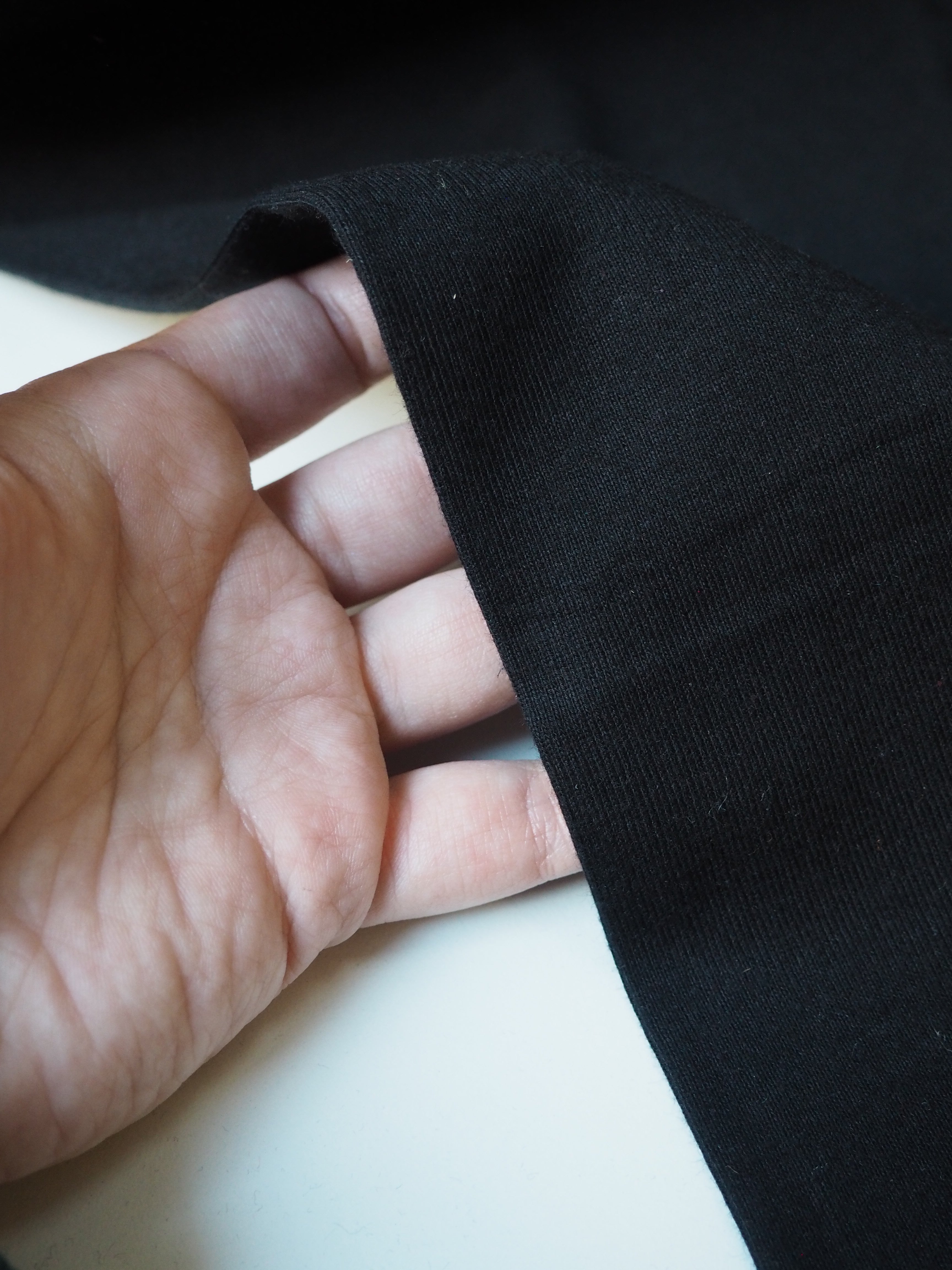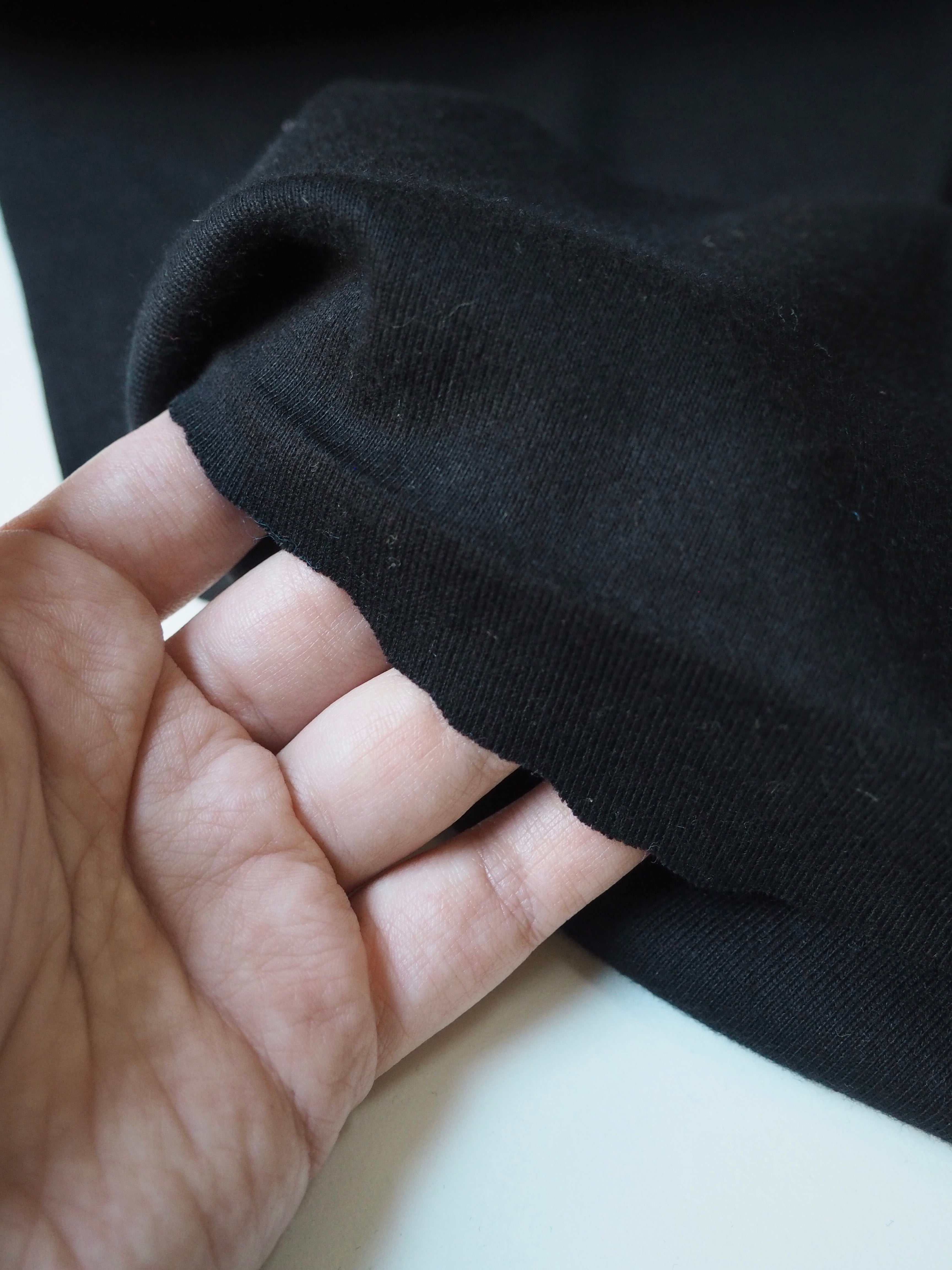 This ex-designer fabric is a soft 1x1 ribbing. It's very soft and stretchy, with about 40% width-ways stretch. Super cosy with an amazing cotton handle, and lightweight. Great for cuffs and hems, everyday basics, or any comfy loungewear!
