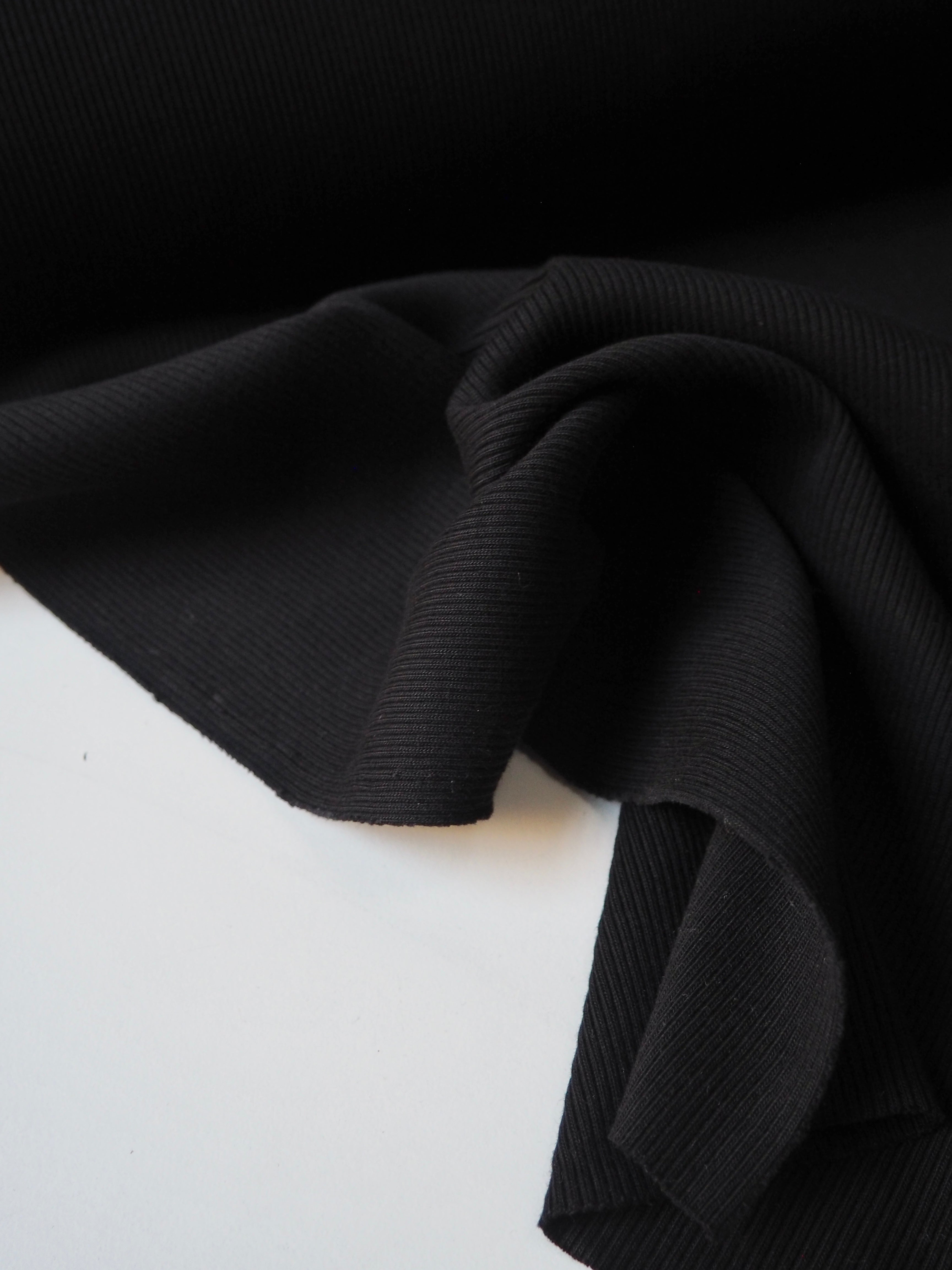 Black Cotton 2x2 Rib Jersey