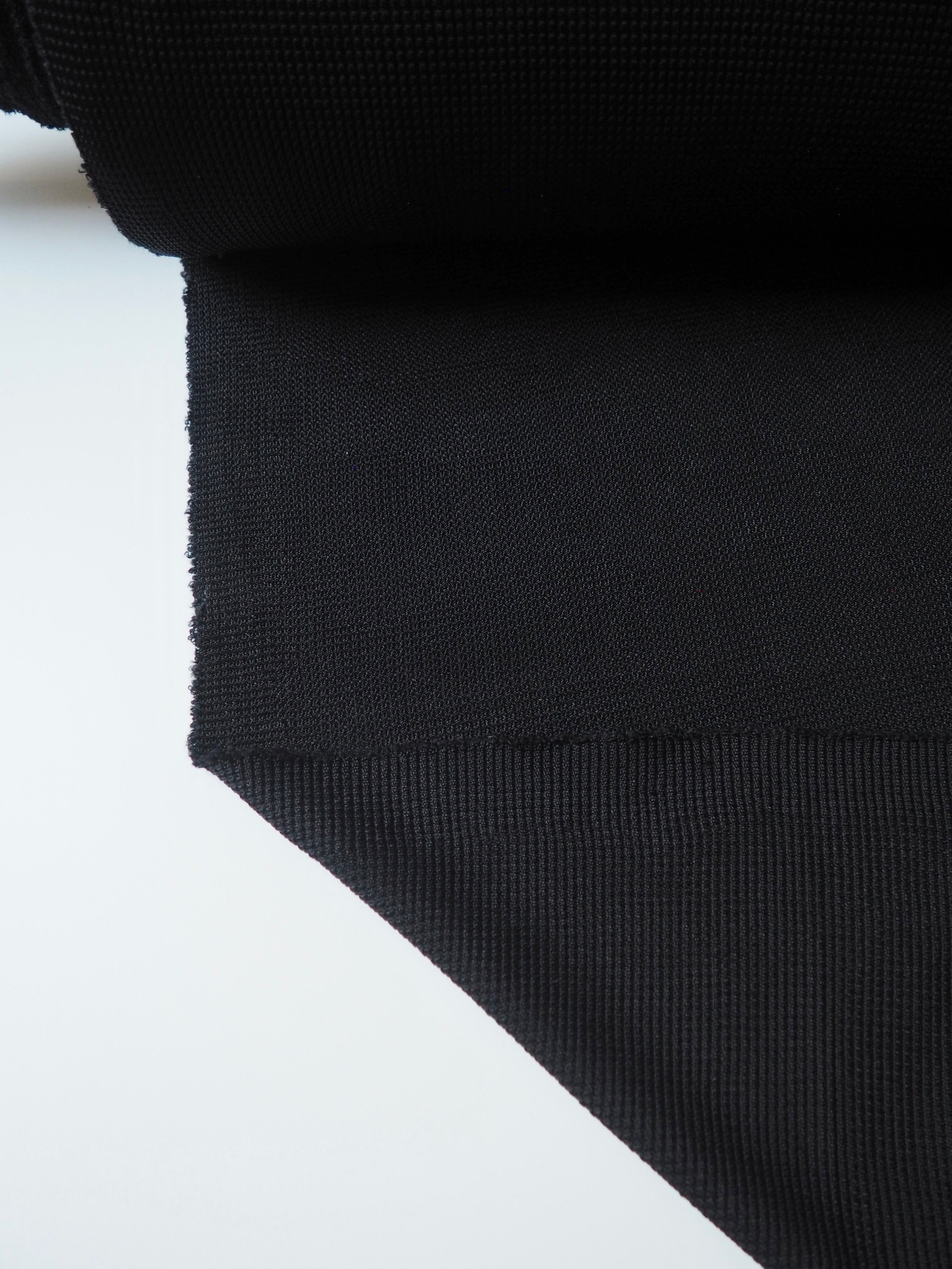 This ex-designer fabric is a unique knit. It has a honeycomb-like, very similar to a pronounced rib knit. It has a great 50% natural stretch both ways. It's semi-sheer when stretched, and is very soft and comfortable. Lightweight, with a great drape, and a textured handle. Is quite bouncy and so fun! Would make the coolest overlay or sheer top!