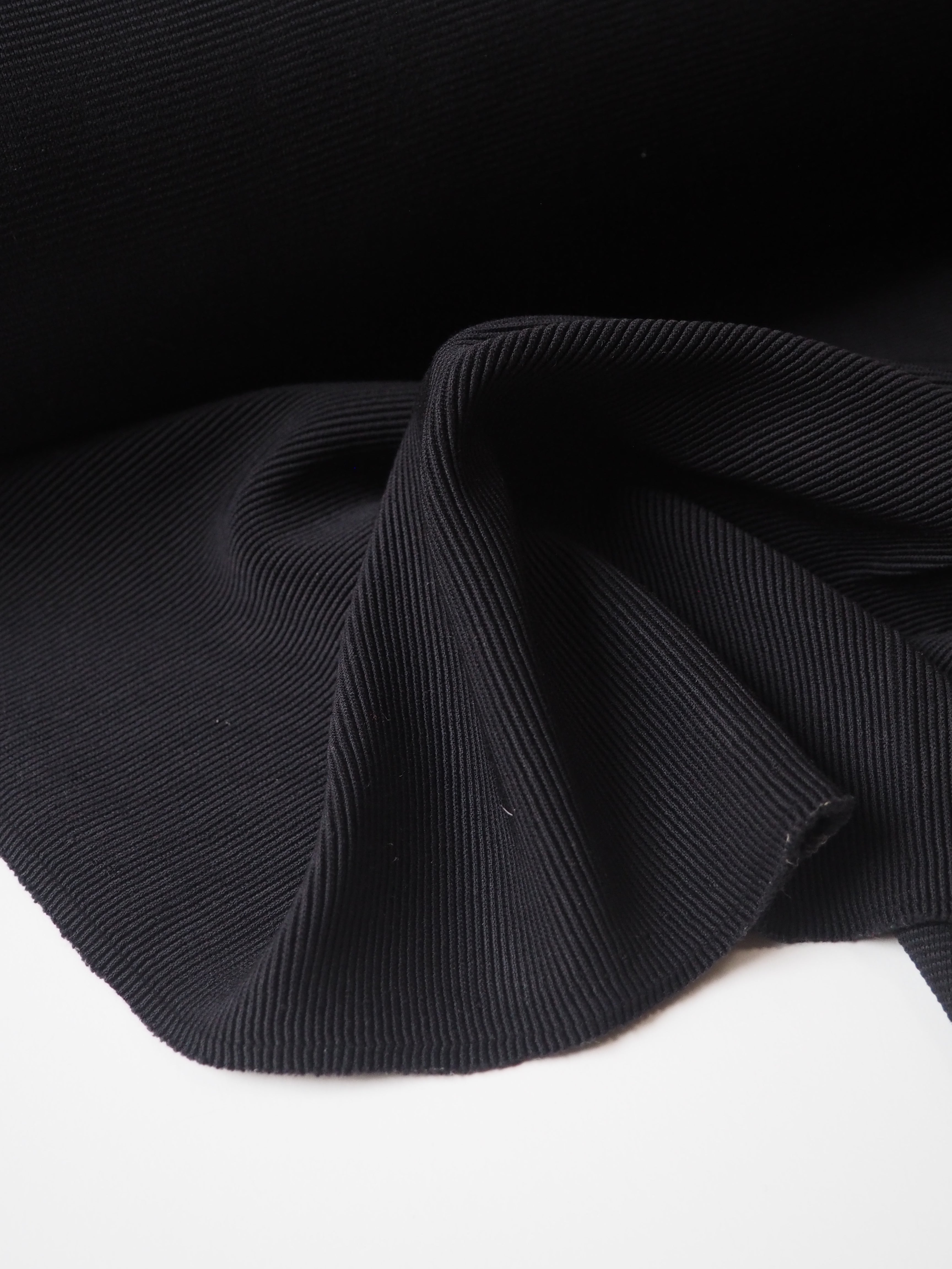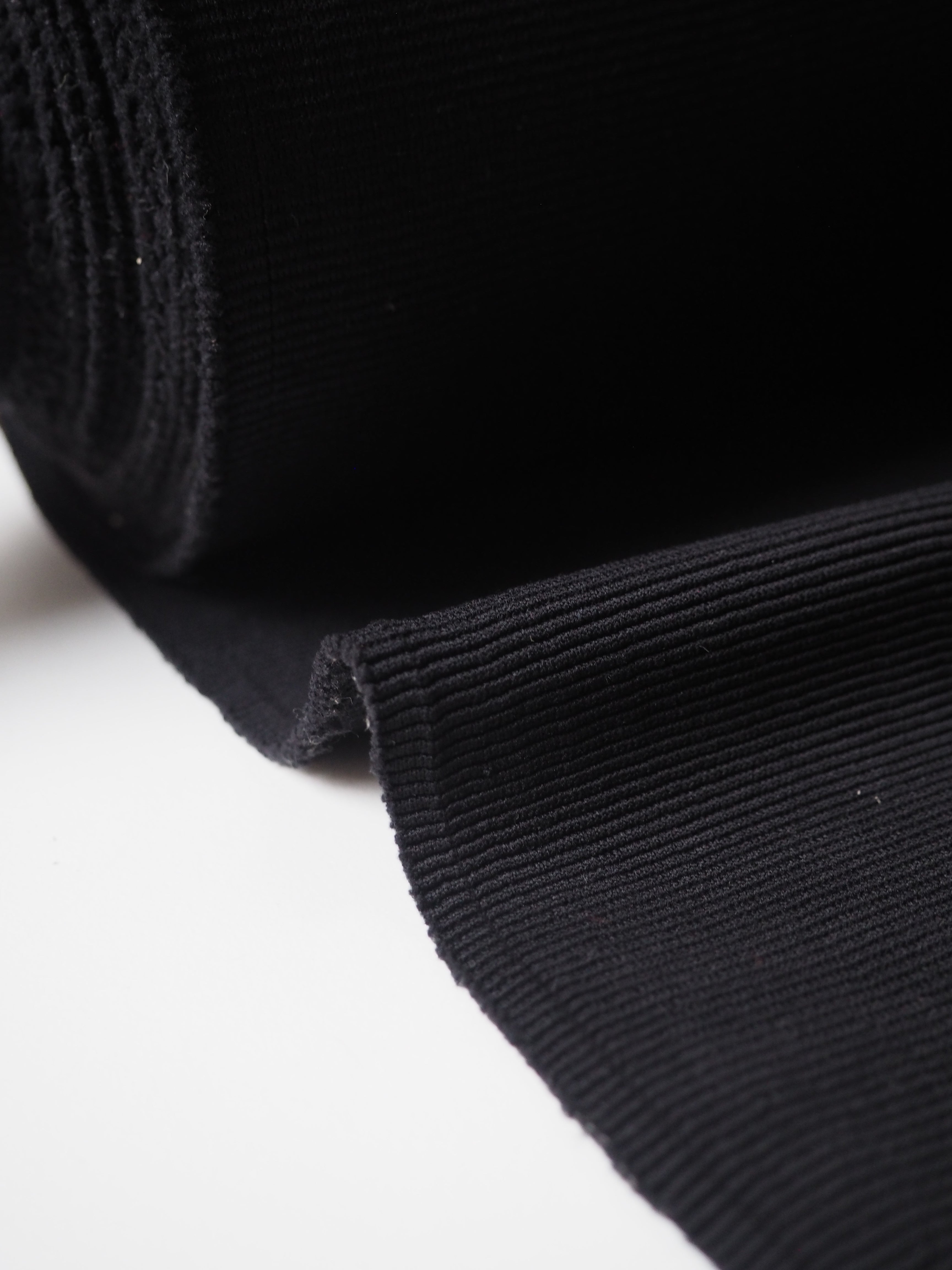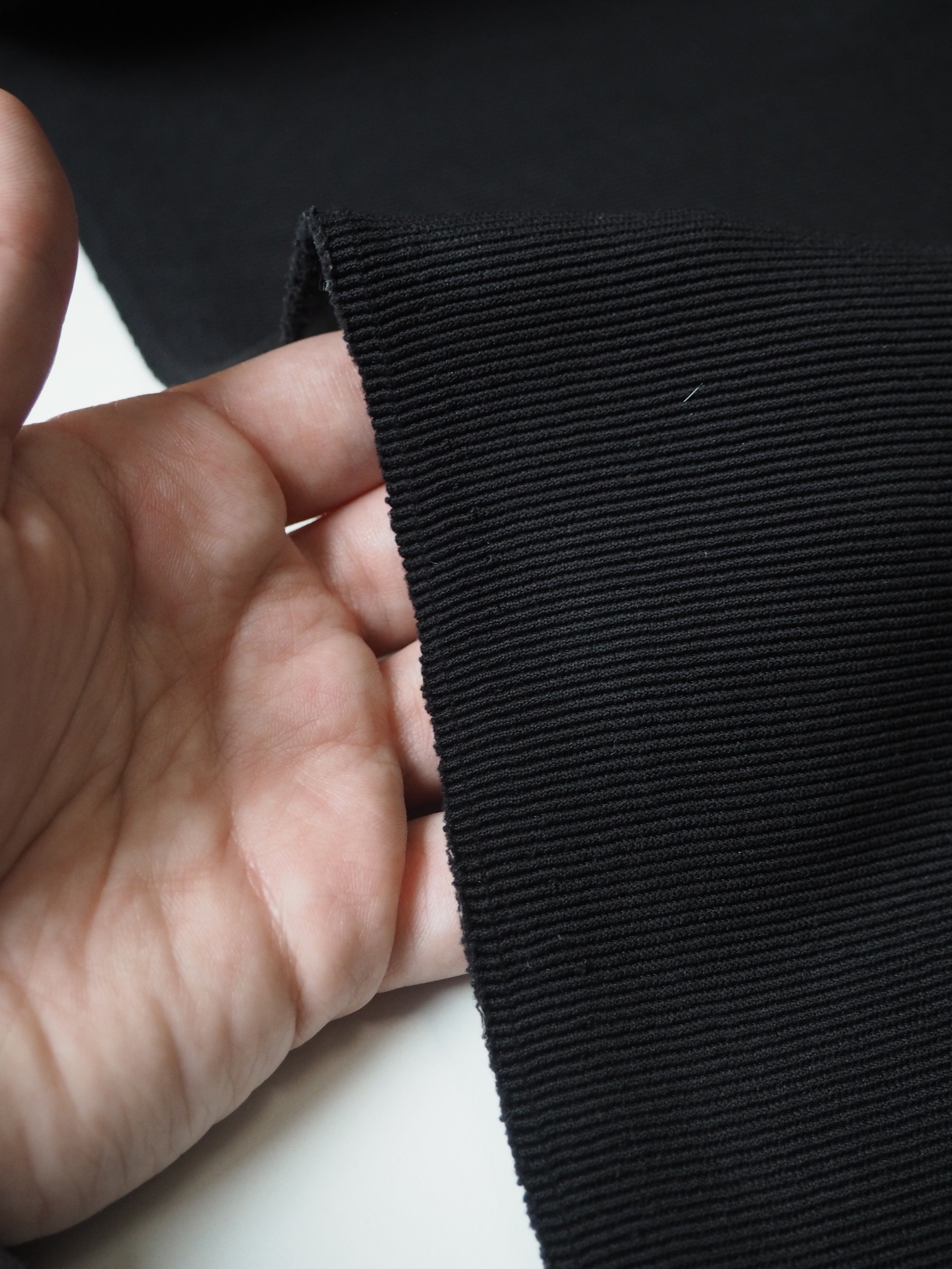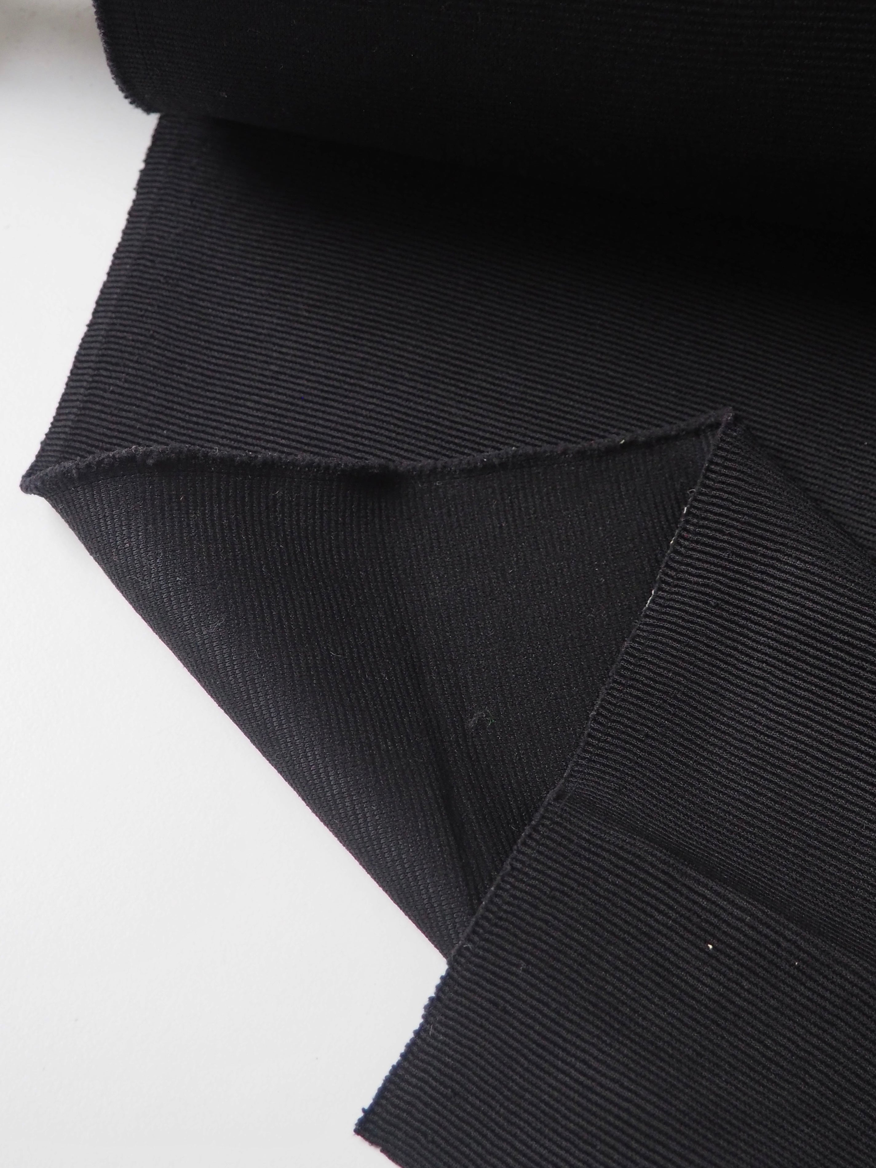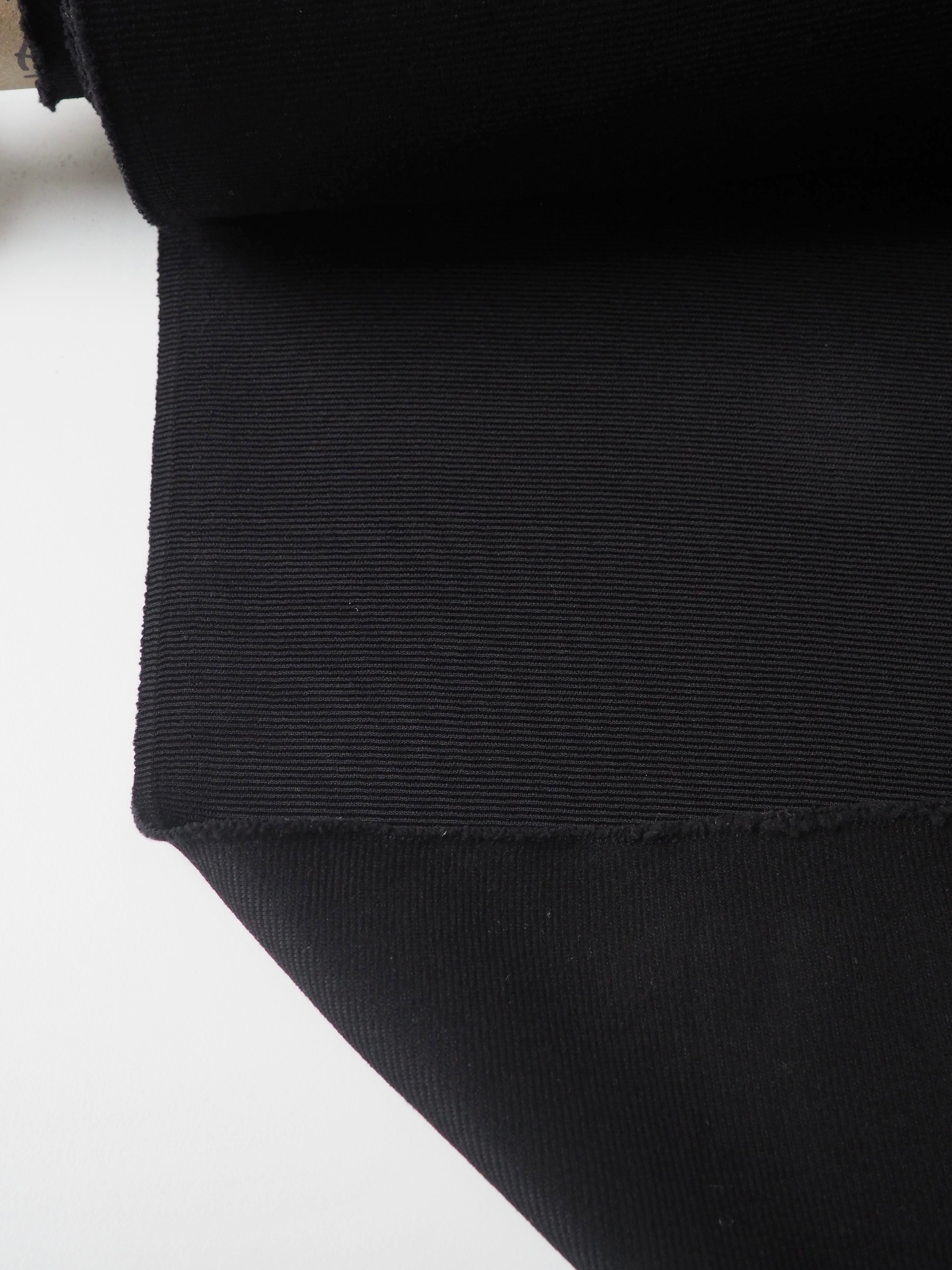 This ex-designer fabric is a rib jersey. It's an ottoman rib knit structure, that looks a lot like a faille weave on a woven, but more pronounced. Has a soft handle and bouncy drape. Medium weight with a gentle sheen finish that gives it a bit of a lux look. Has a 40% stretch width-ways, and around 60% length-ways. Ideal for a pullover!