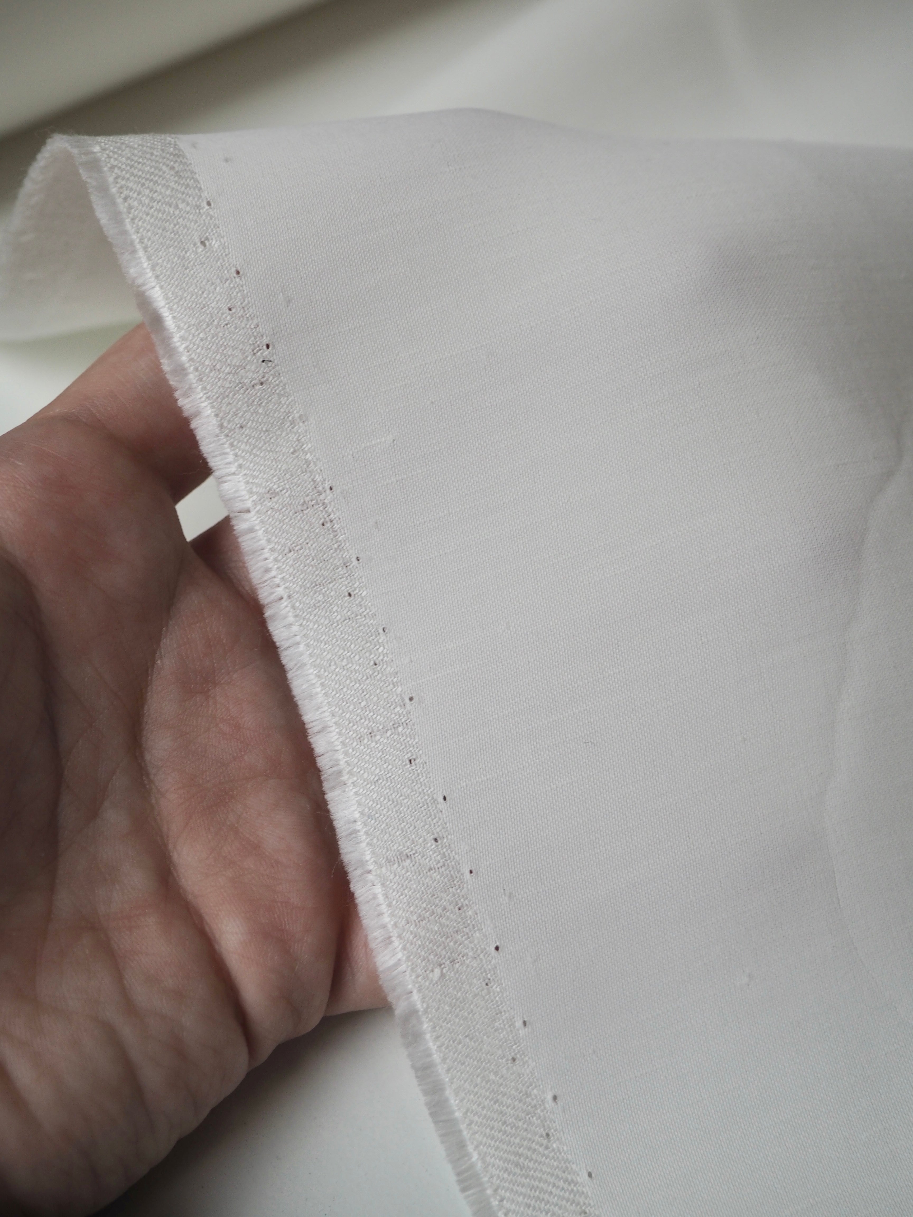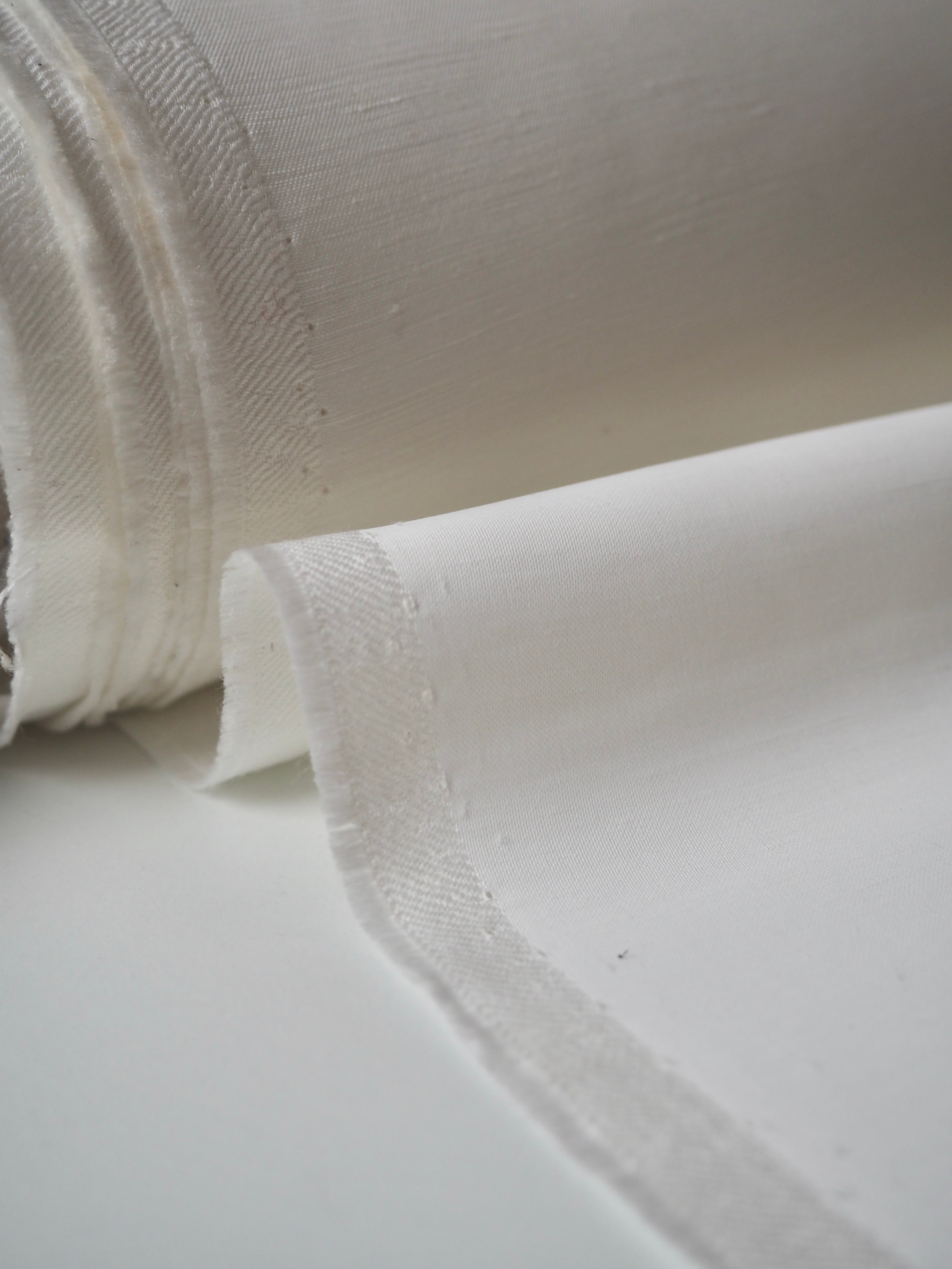 This ex-designer fabric is a luxurious satin. It's a viscose and linen blend, which gives it a sleek satin topside, mixed with a linen reverse handle and fantastic structure. It's a unique cloth that feels incredible and looks so quality. So eye-catching, mostly opaque, and moves beautifully. Perfect for dresses or swishy trousers, or even for a bridal look!
