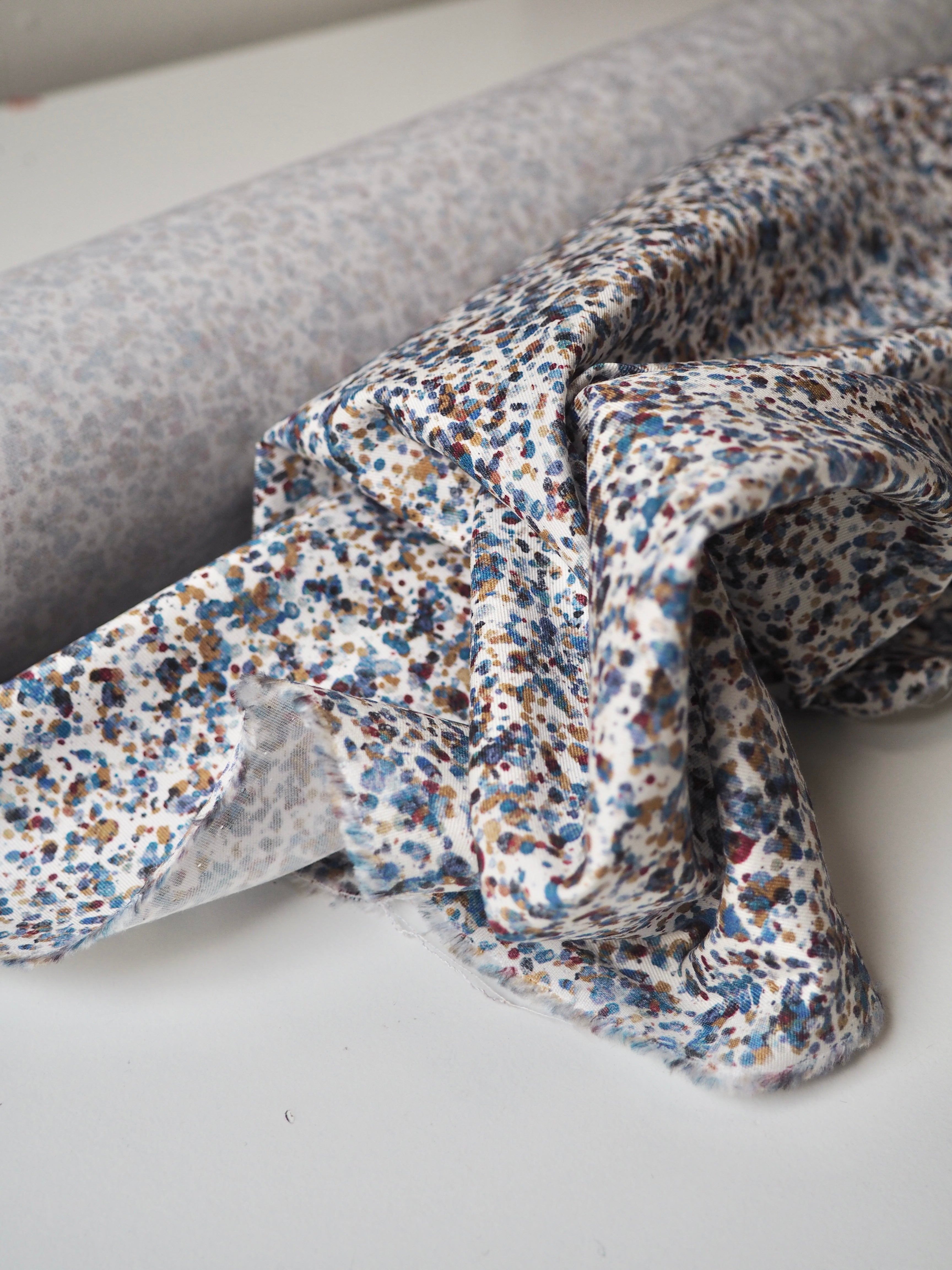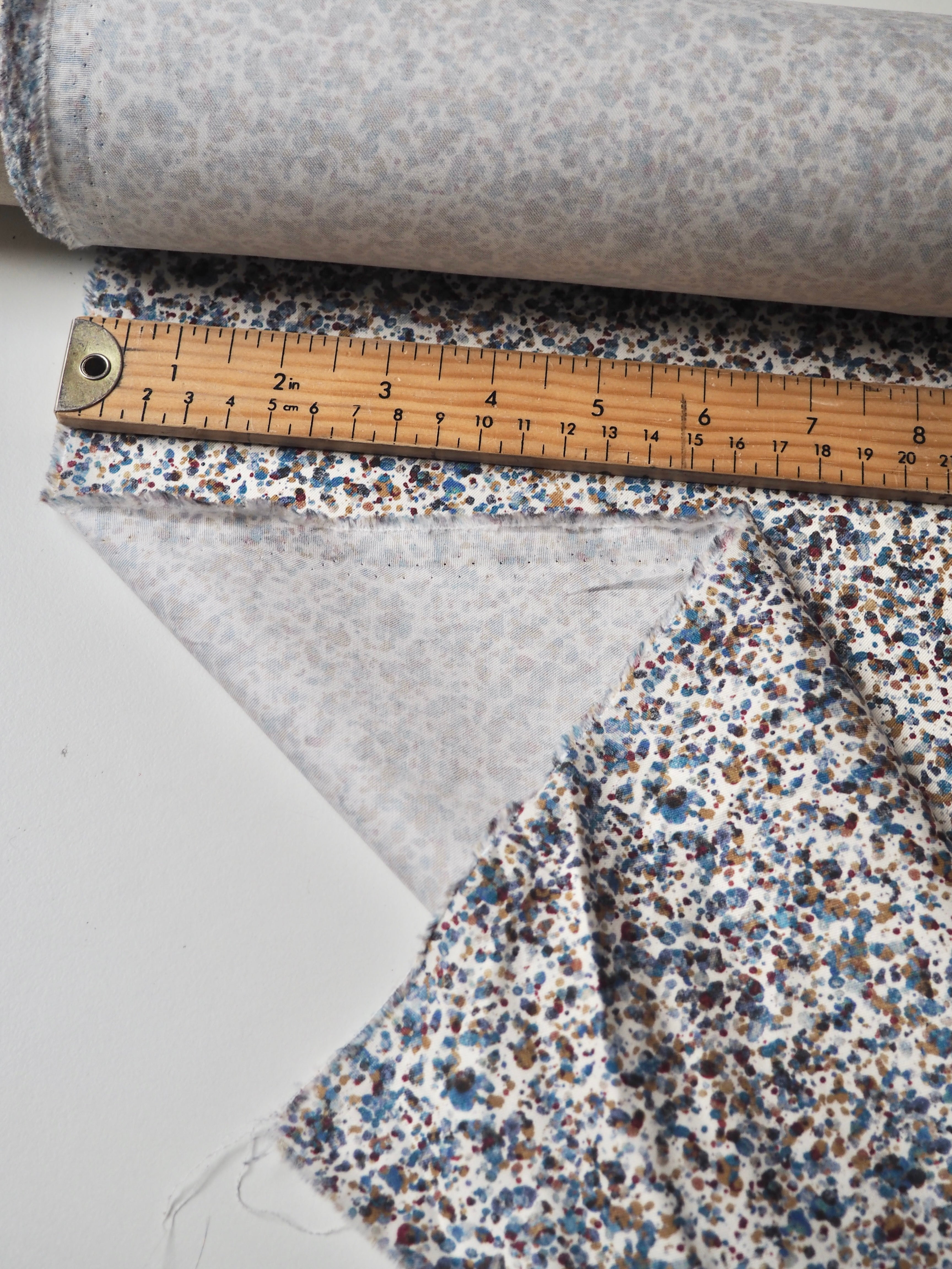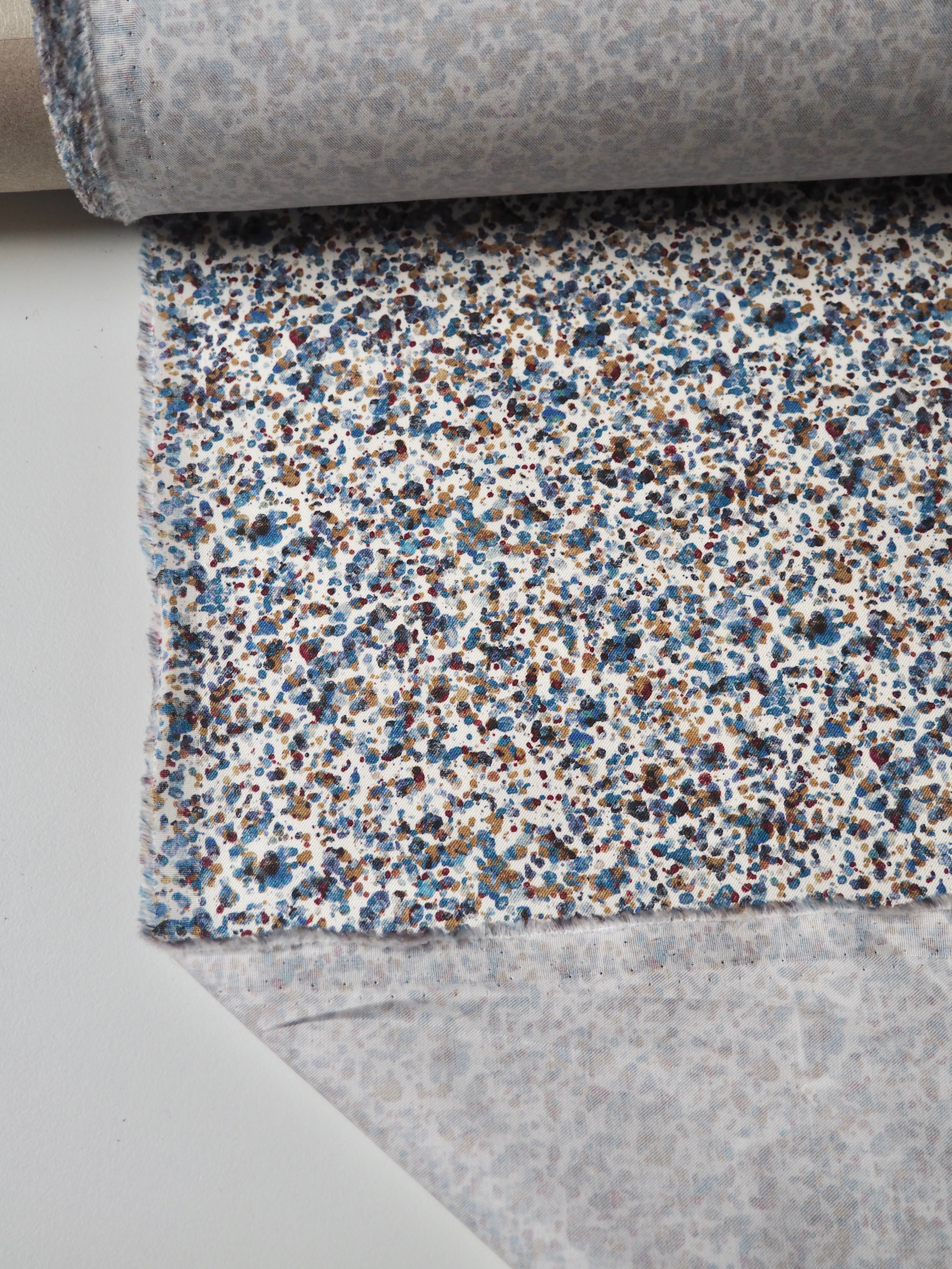 This ex-designer fabric is a classic Liberty cotton twill. It's a small scale multi-coloured dotted print. A top-quality Liberty cotton in a light to medium weight. Soft with a lovely drape and slight crispness. Has a wonderful cotton handle and a slight sheen. Fully opaque! We would love to see a light jacket or bag!