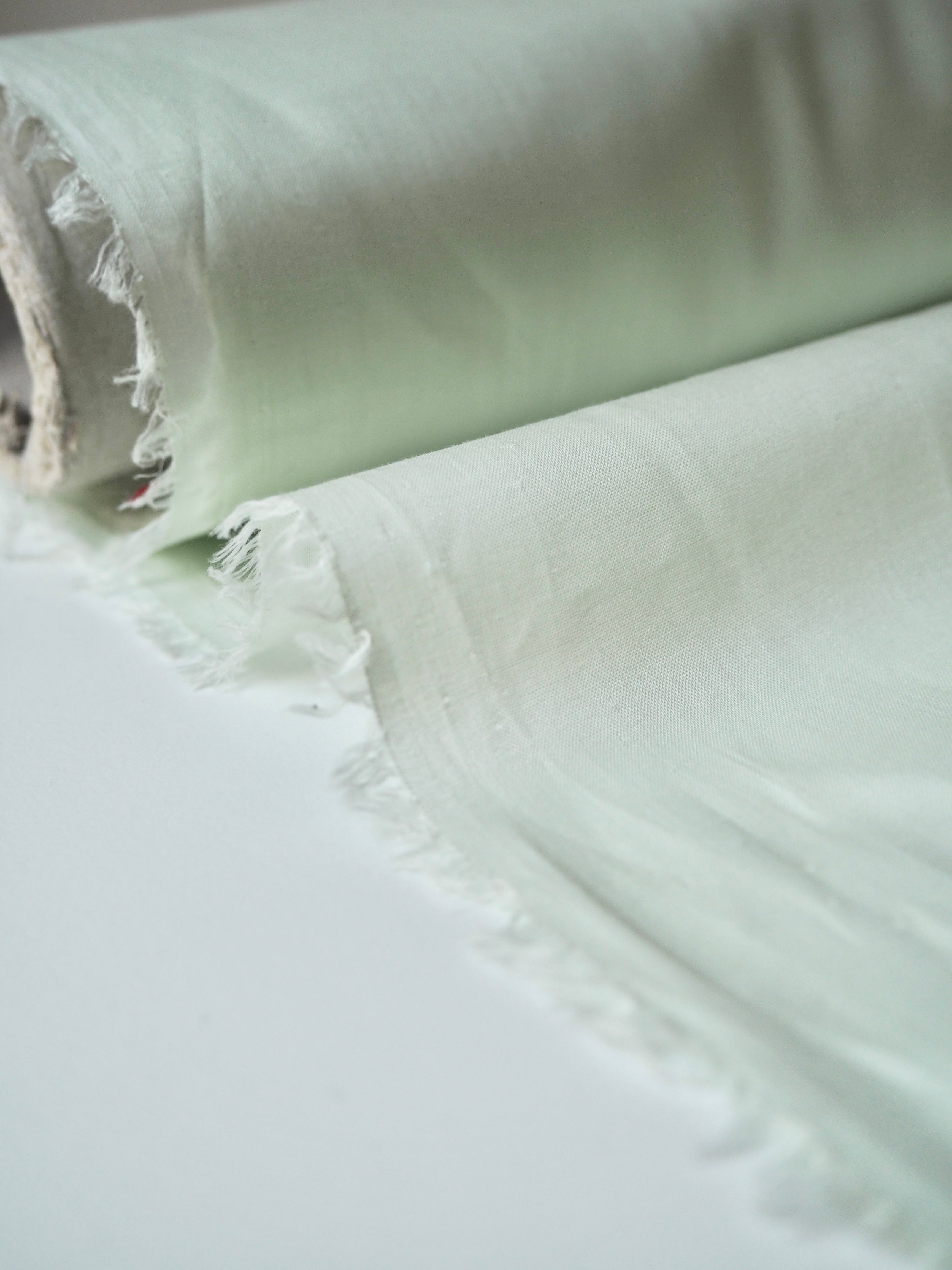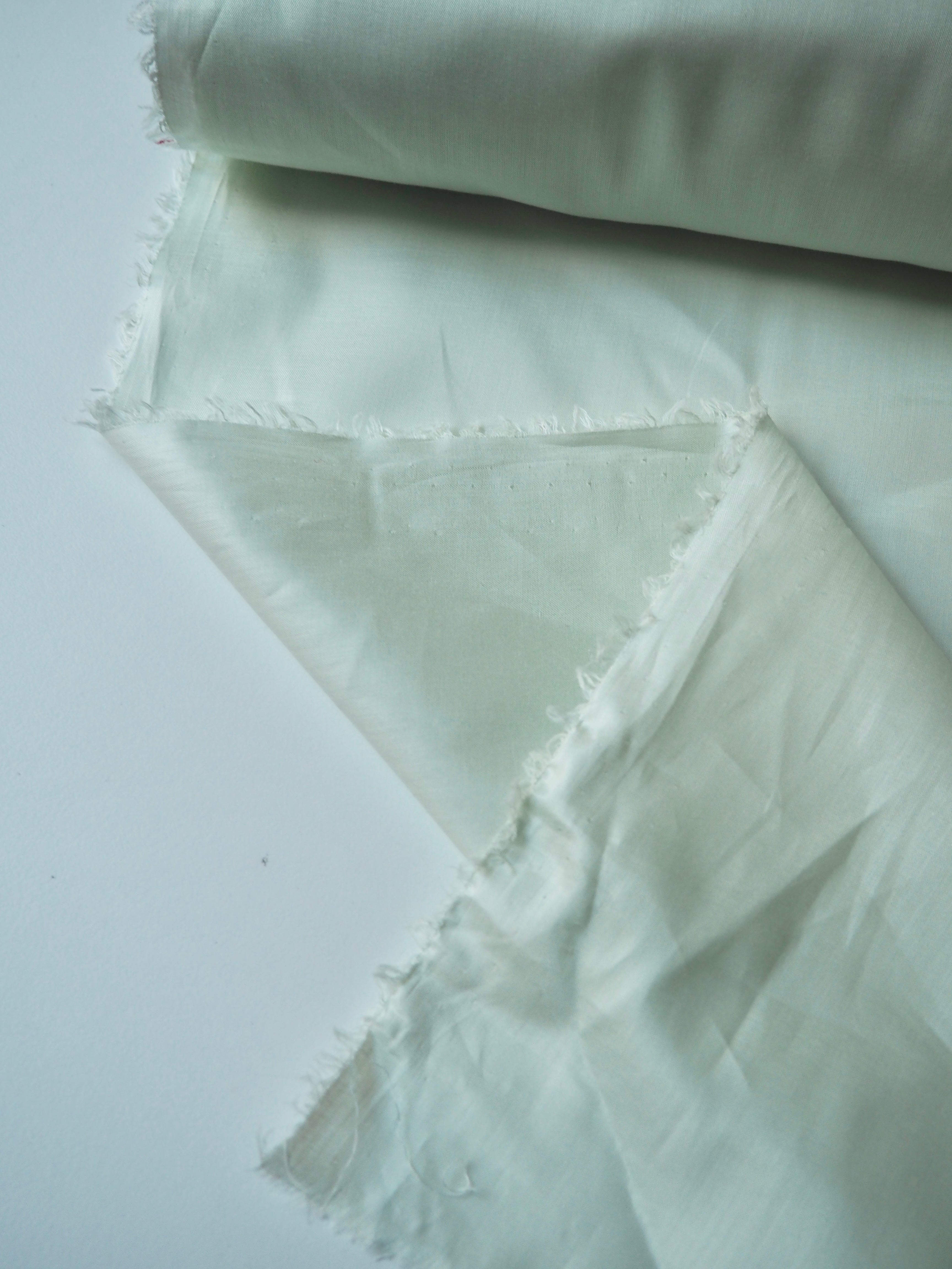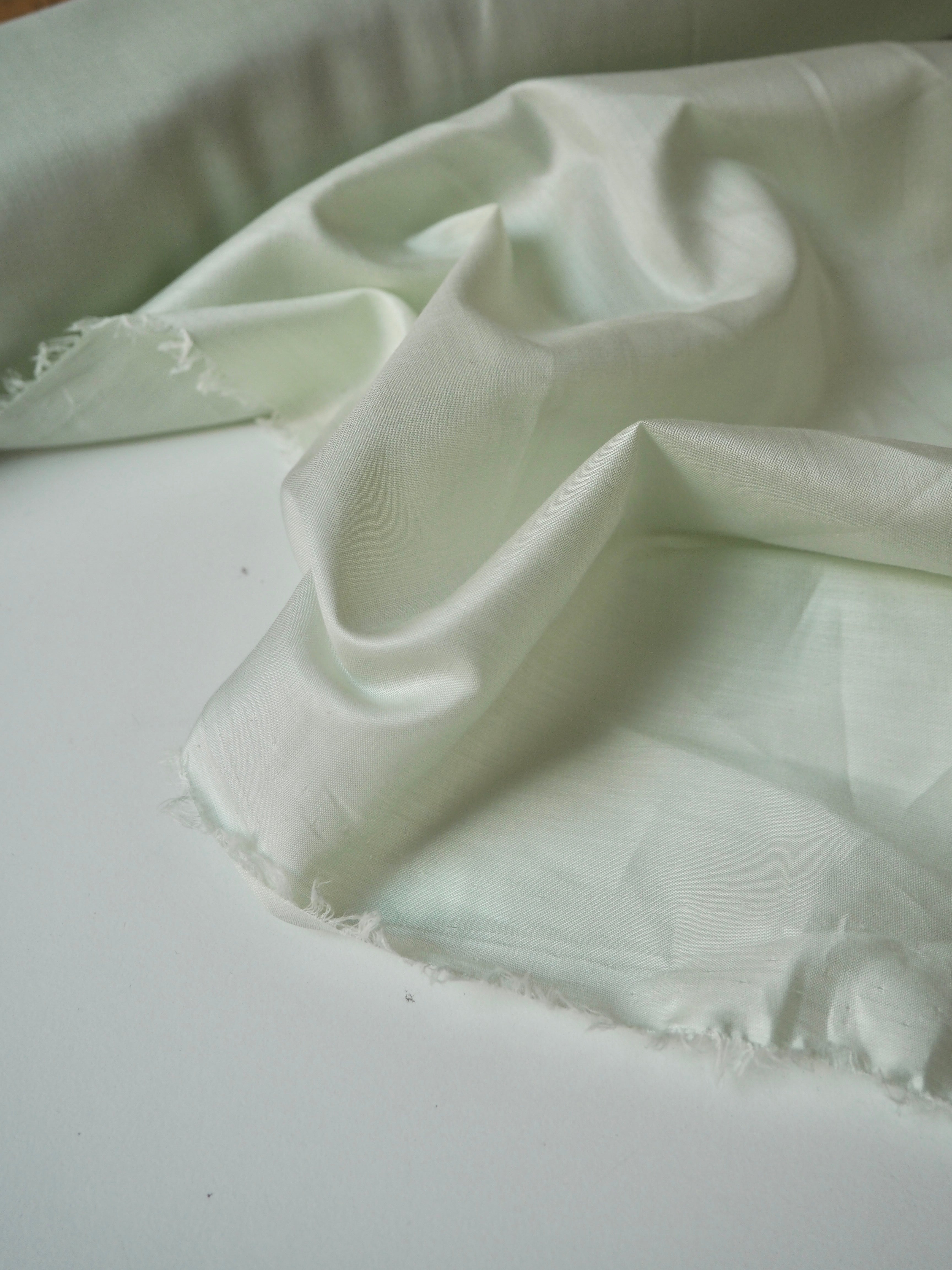 This ex-designer fabric is a voile. In a pastel matcha green colour. Has a super soft cotton handle, is semi-sheer, and drapes so beautifully. Very lightweight, with fantastic movement. Lovely in our Everyday Dress, as a lining, or for lingerie!