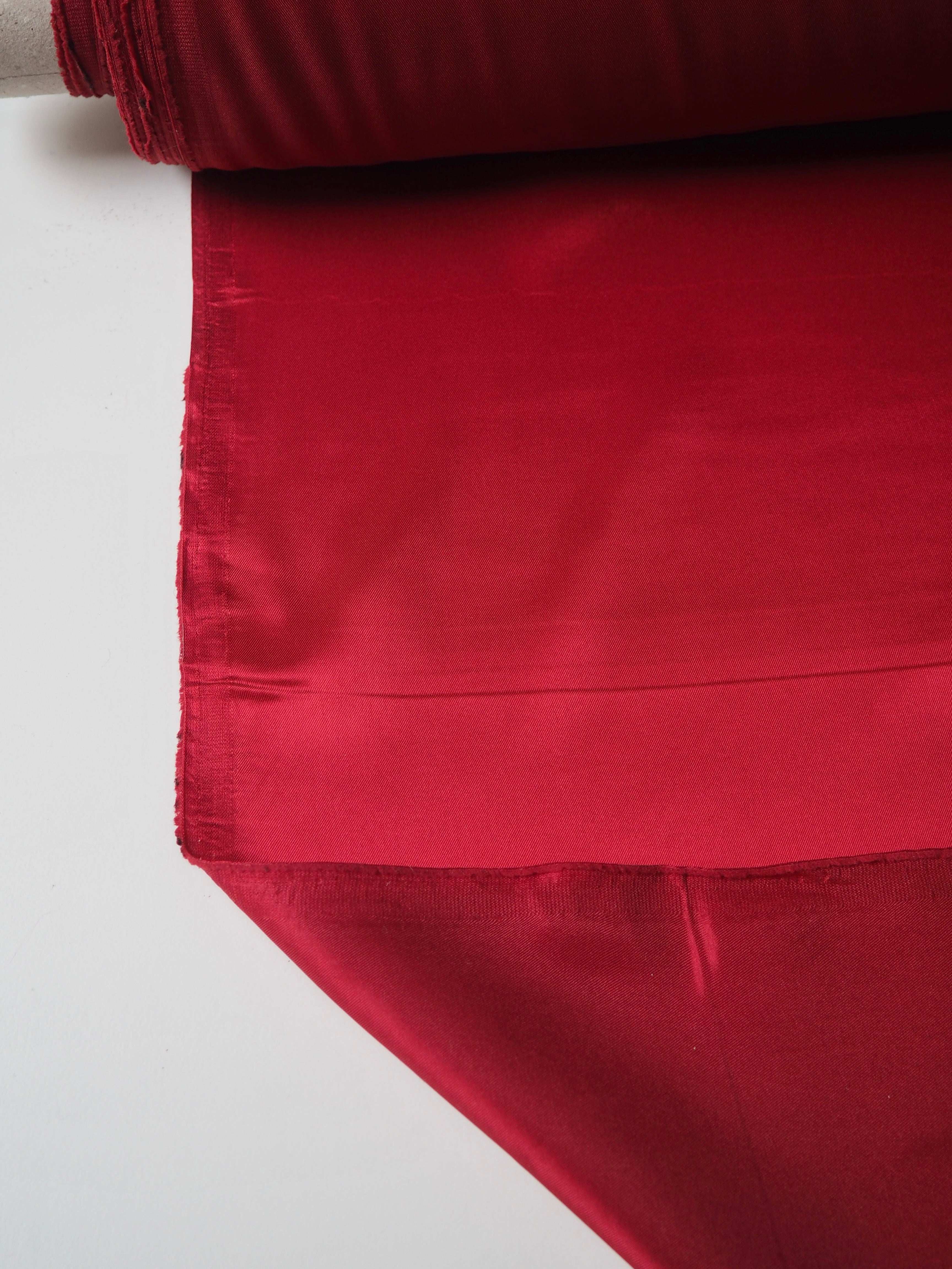This ex-designer fabric is a stretch lining. It has a twill weave in a soft and slinky acetate fibre. Has a gentle 10% stretch width-ways. Lightweight with a gentle drape and nice satin finish. Has a slight structure to it as well. Mostly opaque. Ideal for lining any garment, especially a suit jacket or coat!