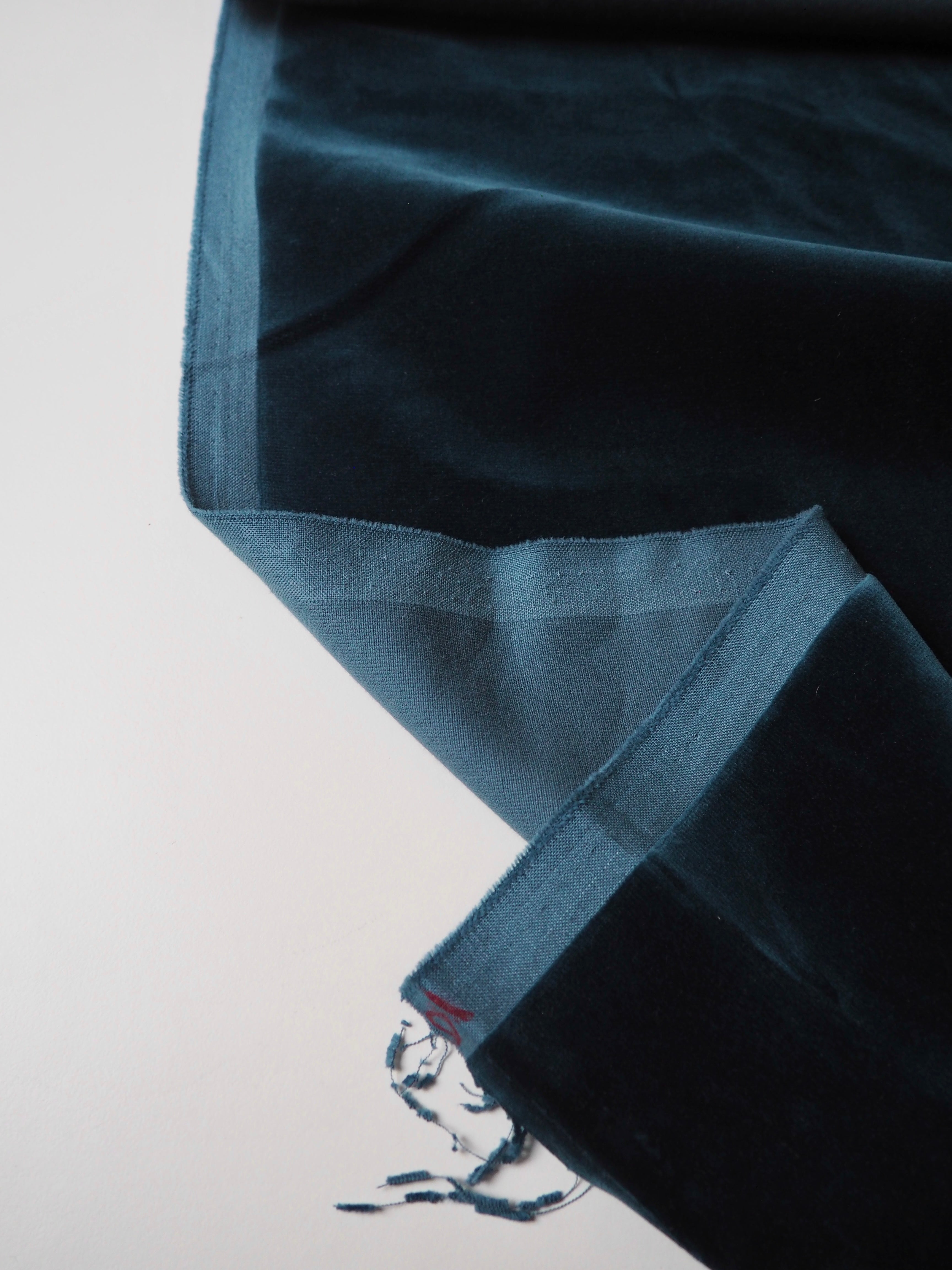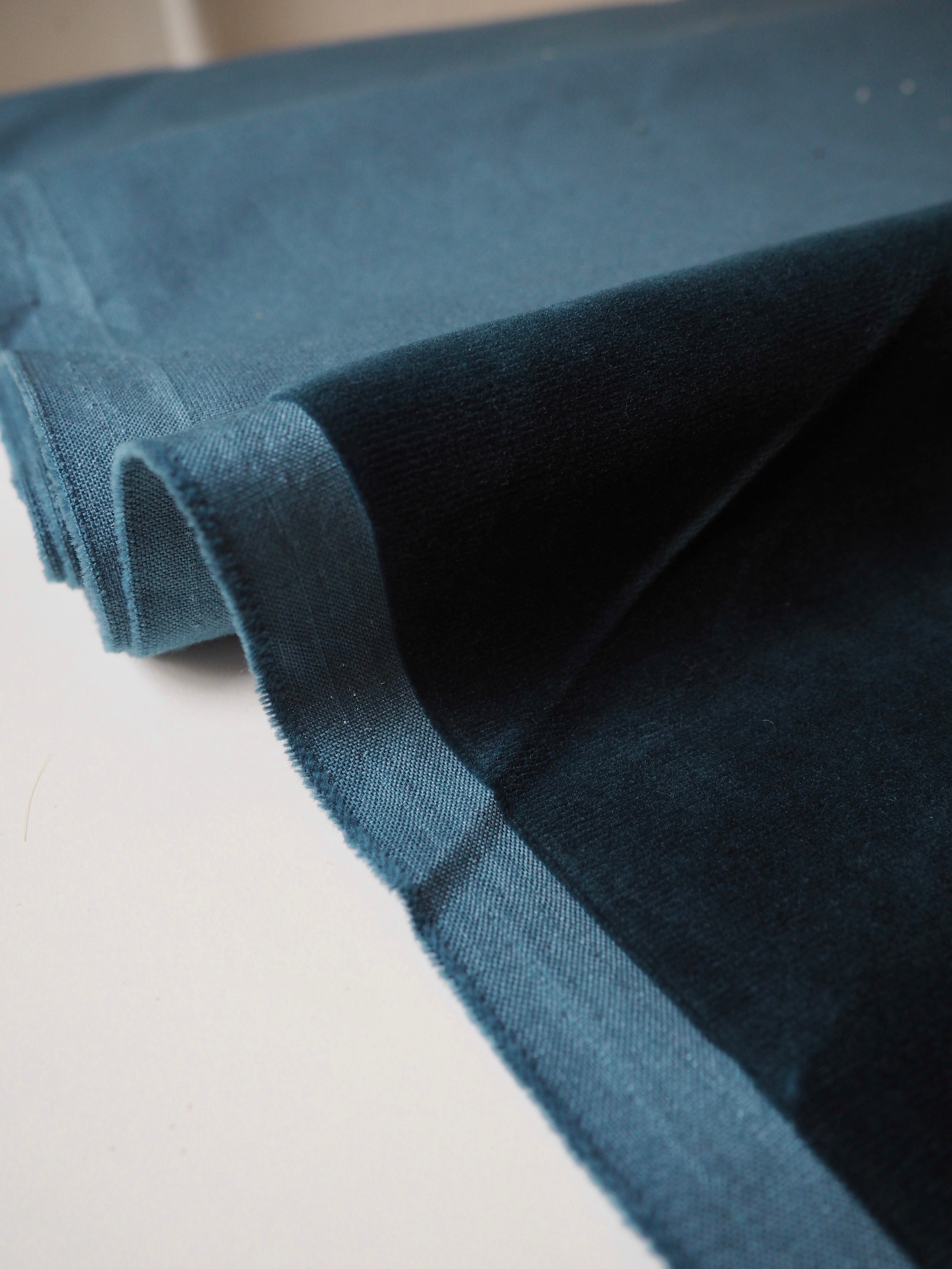 This ex-designer fabric is a rich velvet. It's so soft to the touch and has a beautiful sheen with a cotton canvas backing. The pile is dense and looks so luxurious. Medium to heavy weight and a wonderful mix of structure and great drape. Gorgeous for a patchwork, cushions, or garments! This velvet has pile damage, some areas more than others. The price reflects this. Steaming and brushing the velvet should help revive the velvet and bring back the natural softness and smooth finish, but we cannot guarantee this will work on all areas.