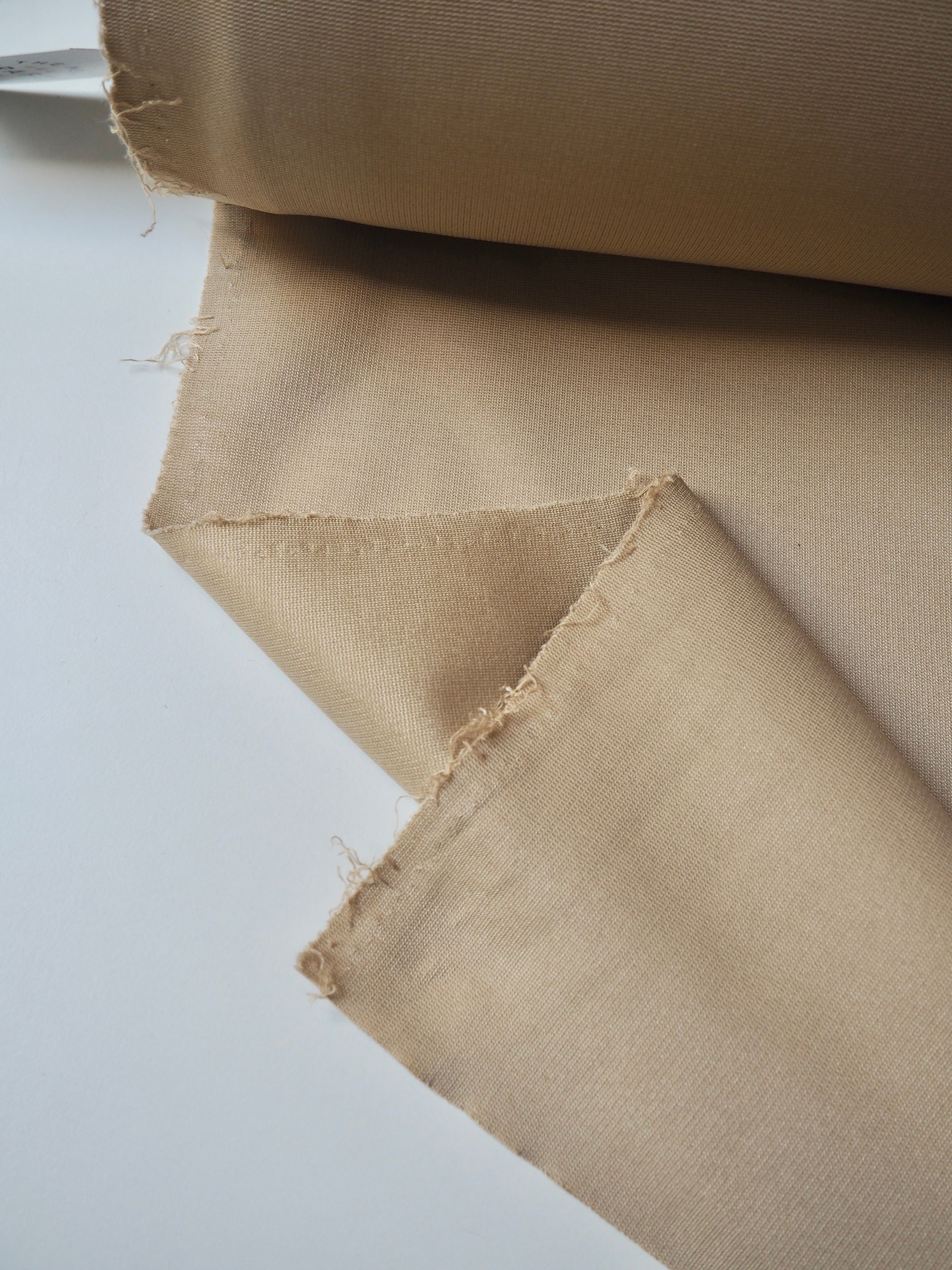 This ex-designer fabric is a jersey. Ponte di Roma is a double interlock jersey with a medium weight. It has a great structure and this one is sturdy with a slight iridescent finish. Has strong 50% stretch both ways, and great recovery. Perfect for bodycon dresses!
