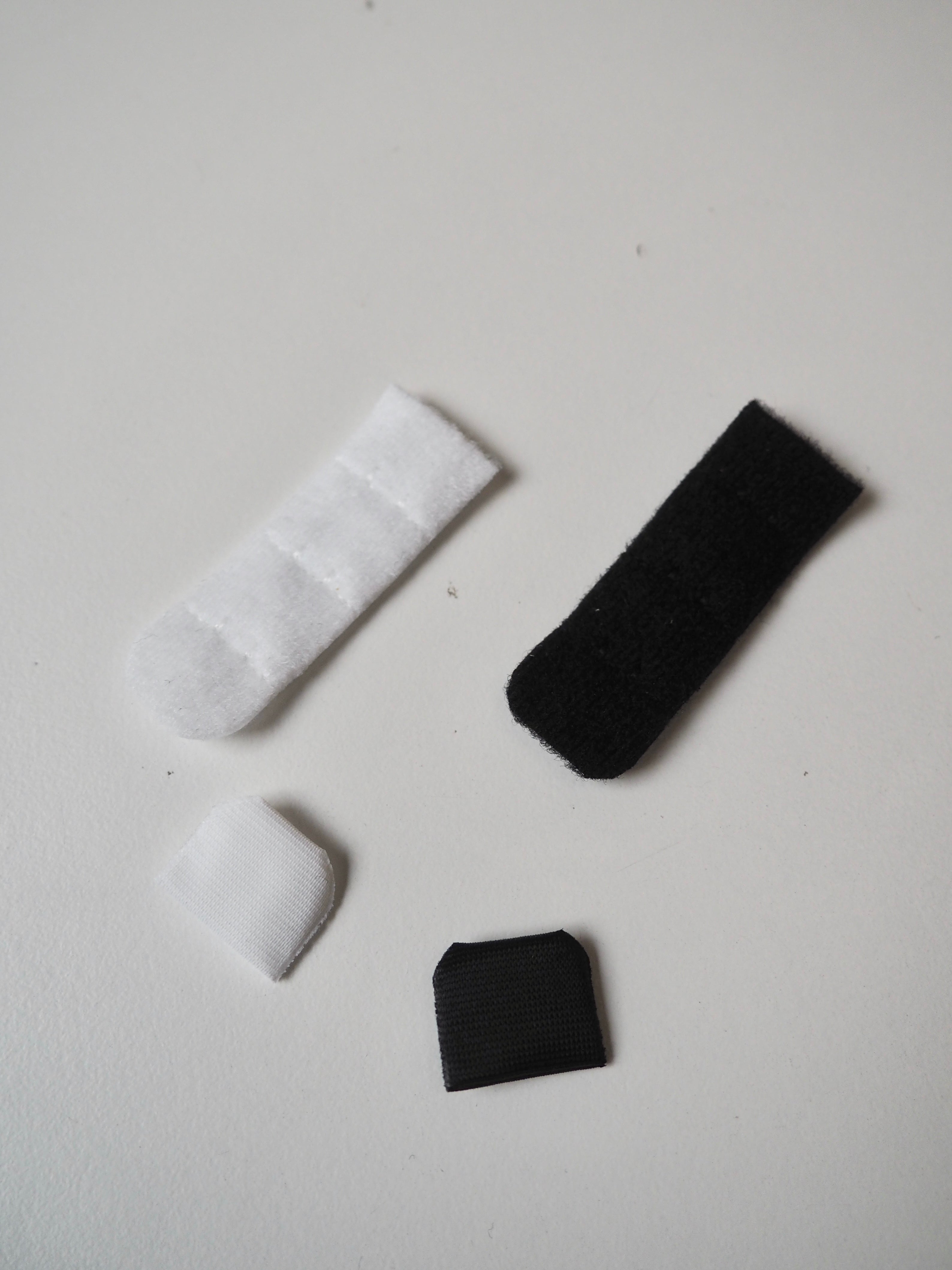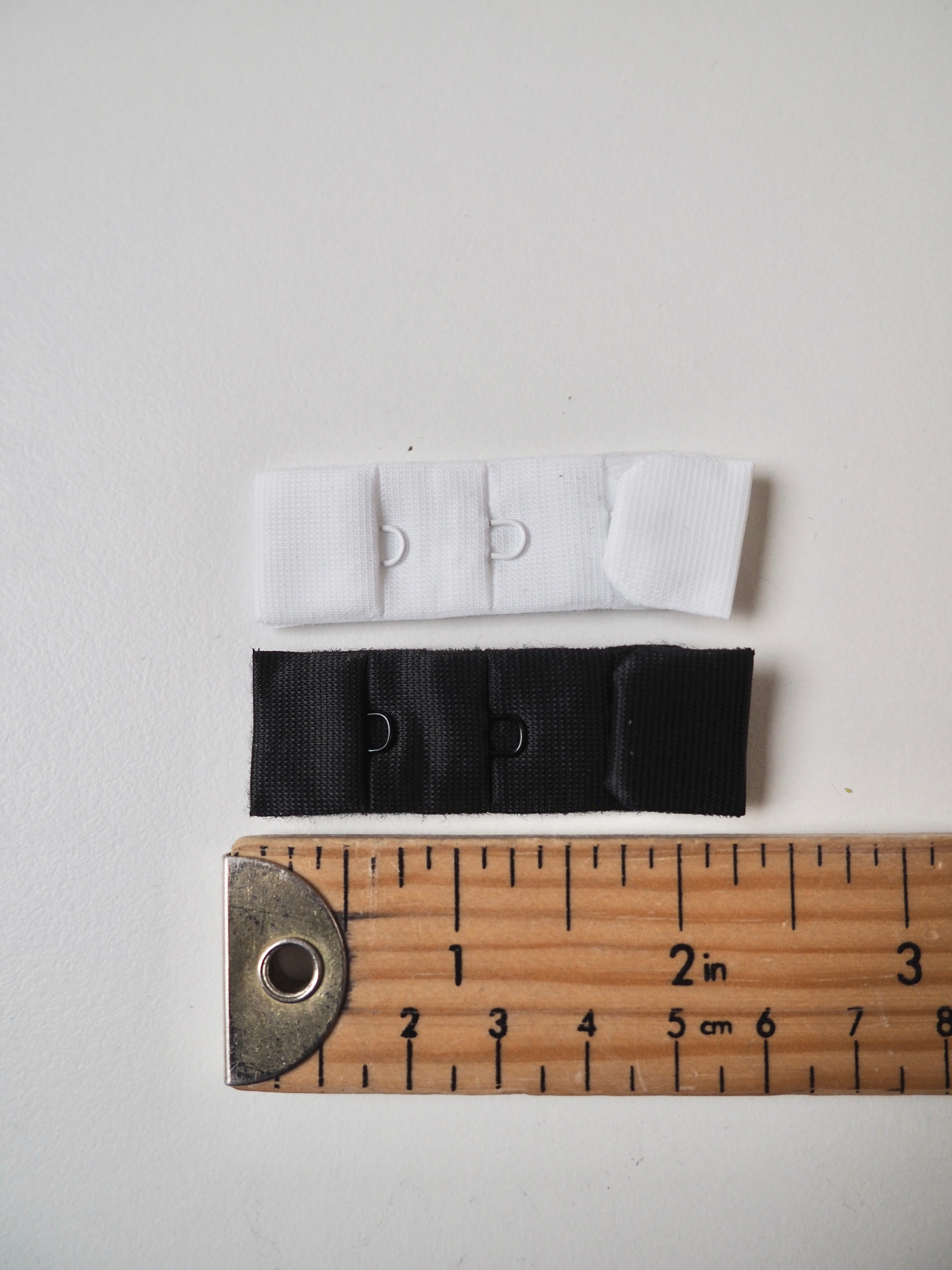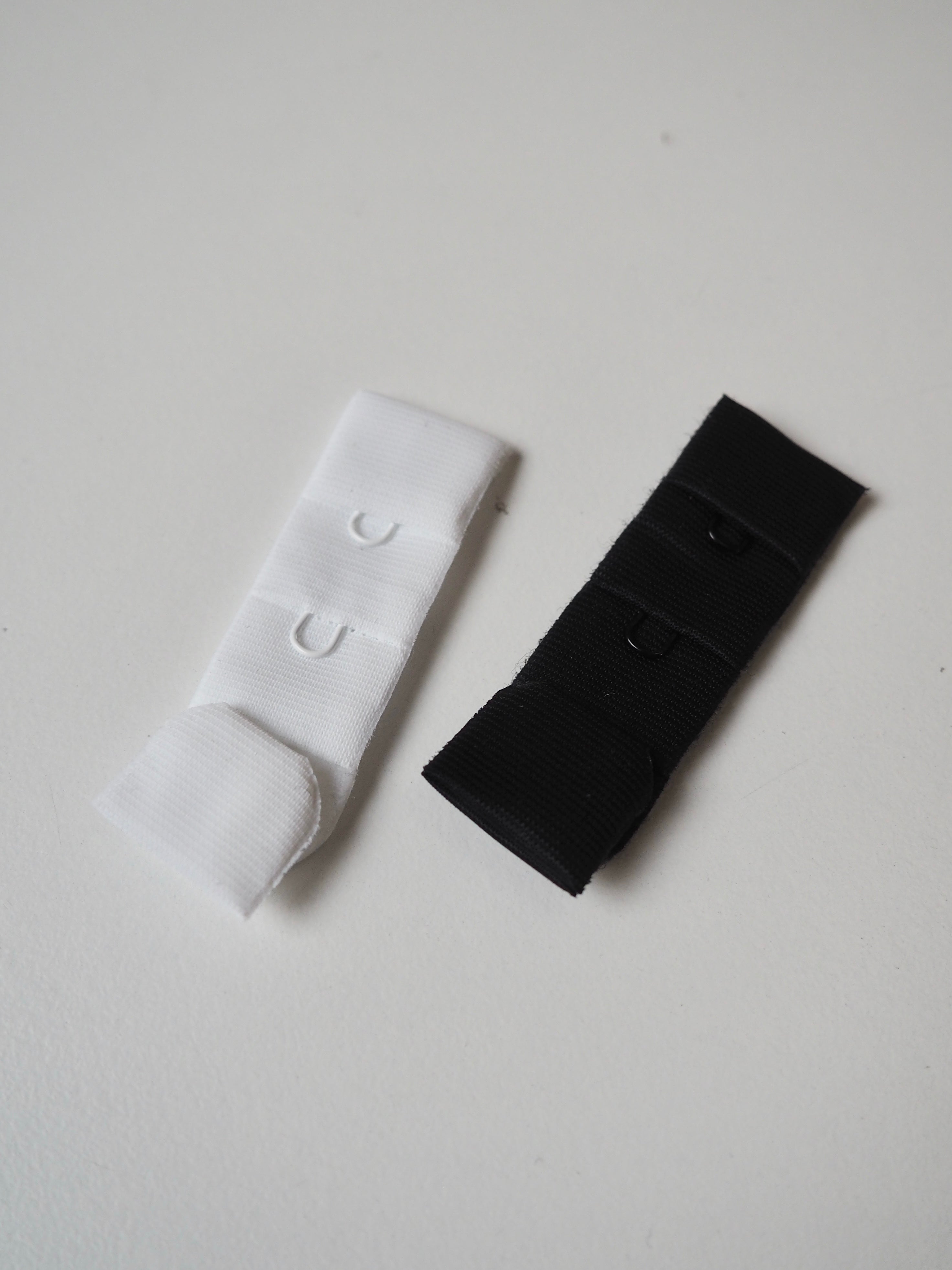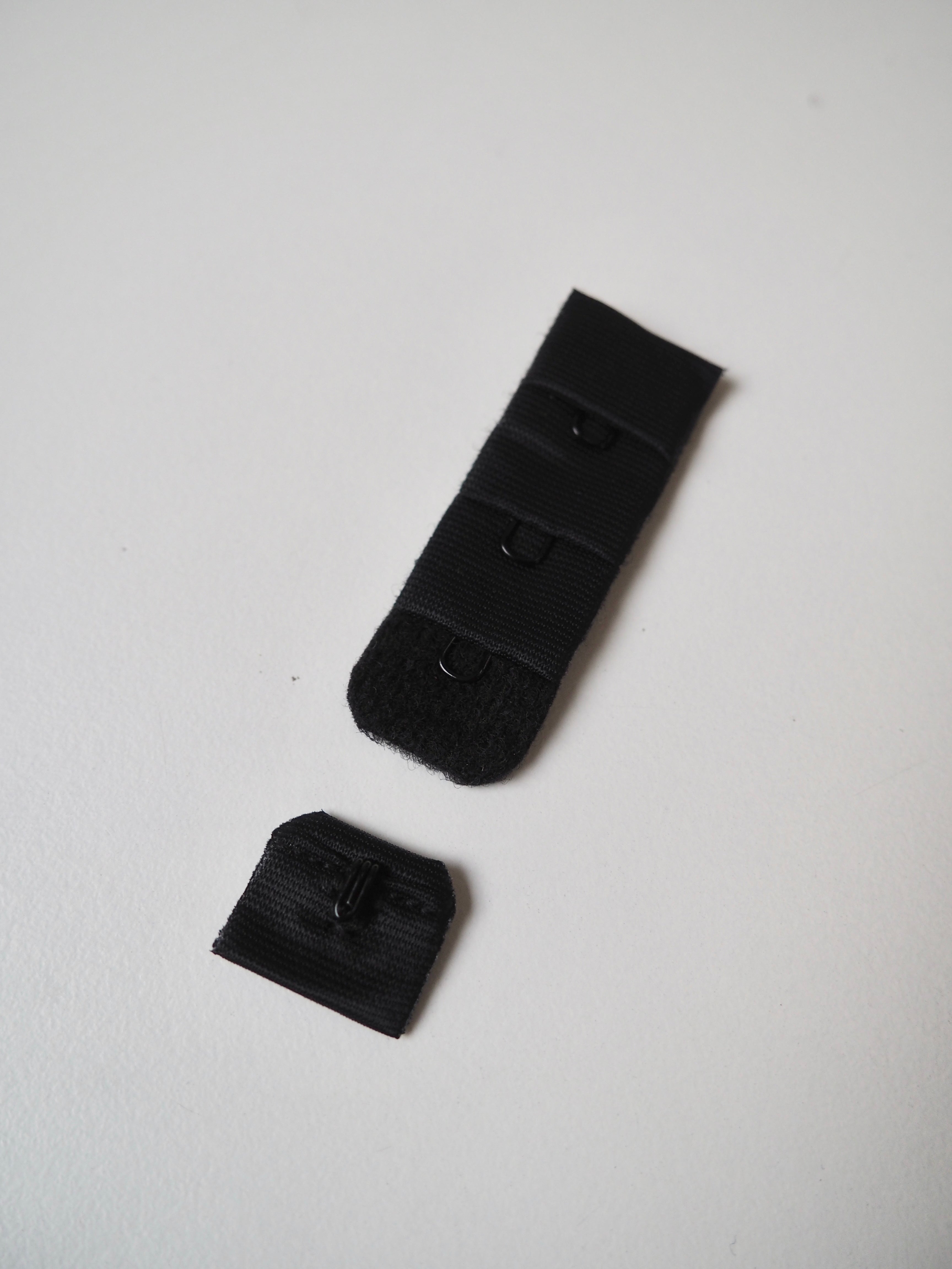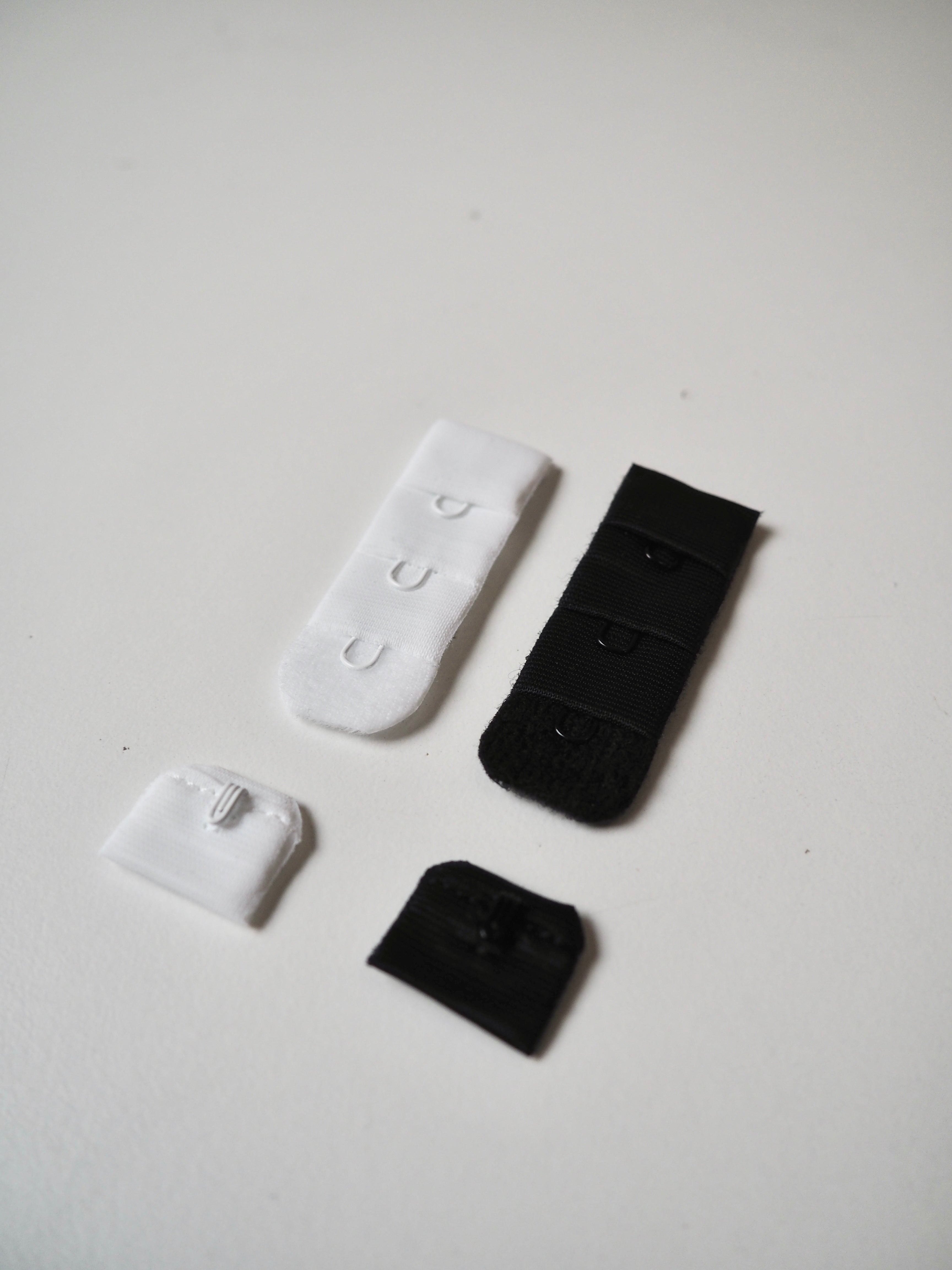Bra hook and eye fastener. Plush material, soft to the touch. Three single hook and eyes give 4cm of adjustable length. One hook to three eyes. Perfect for bra making!
