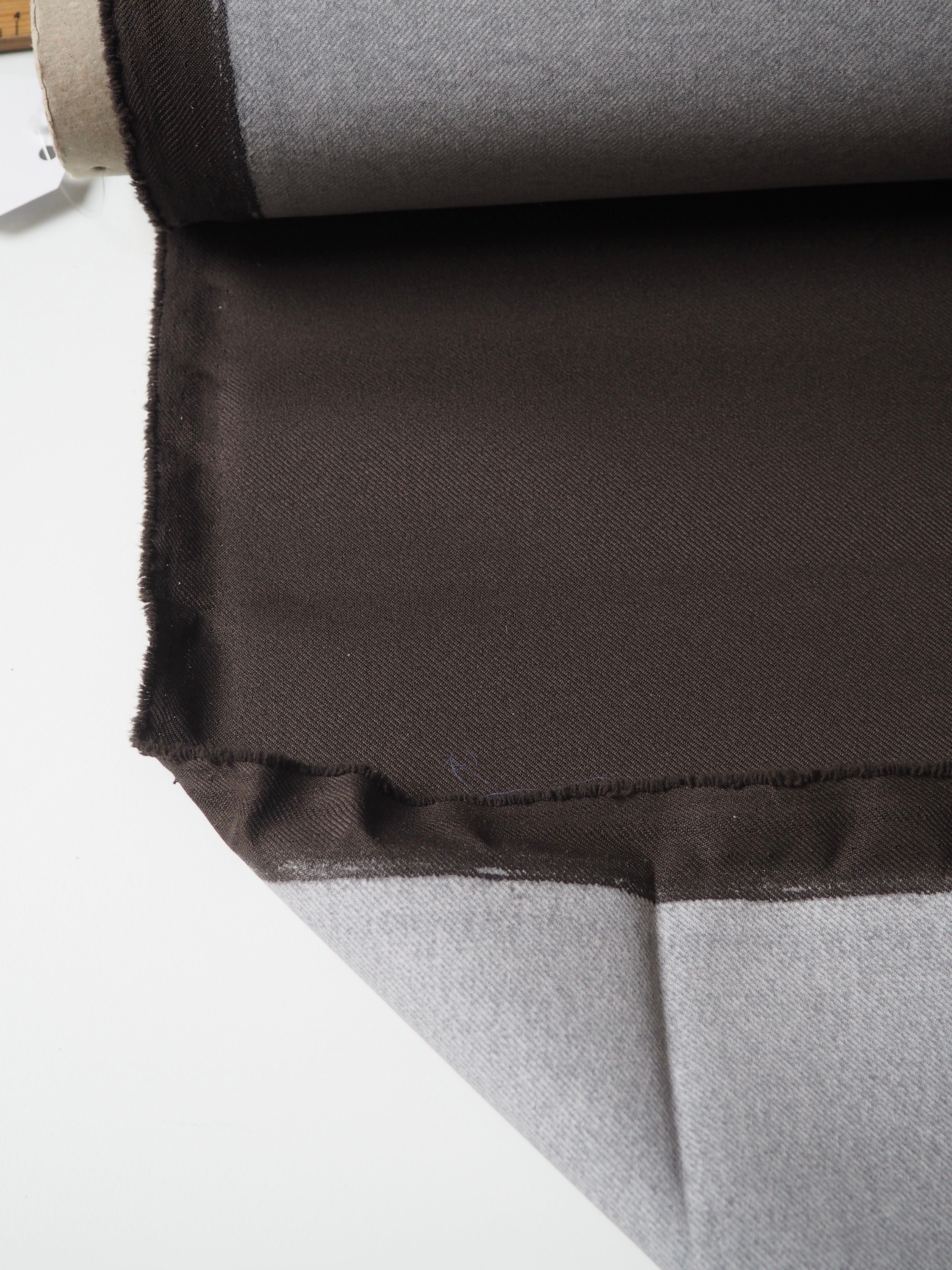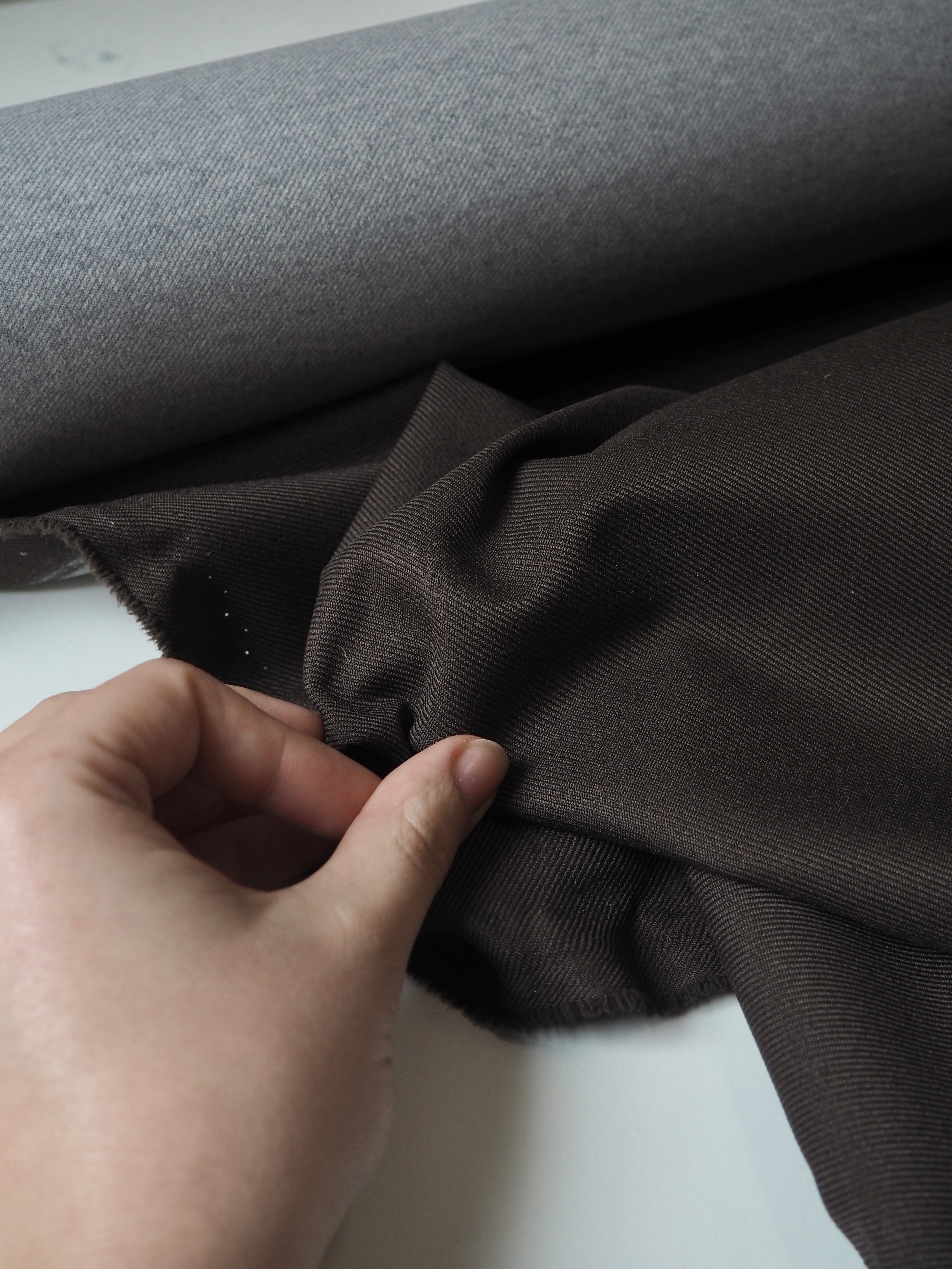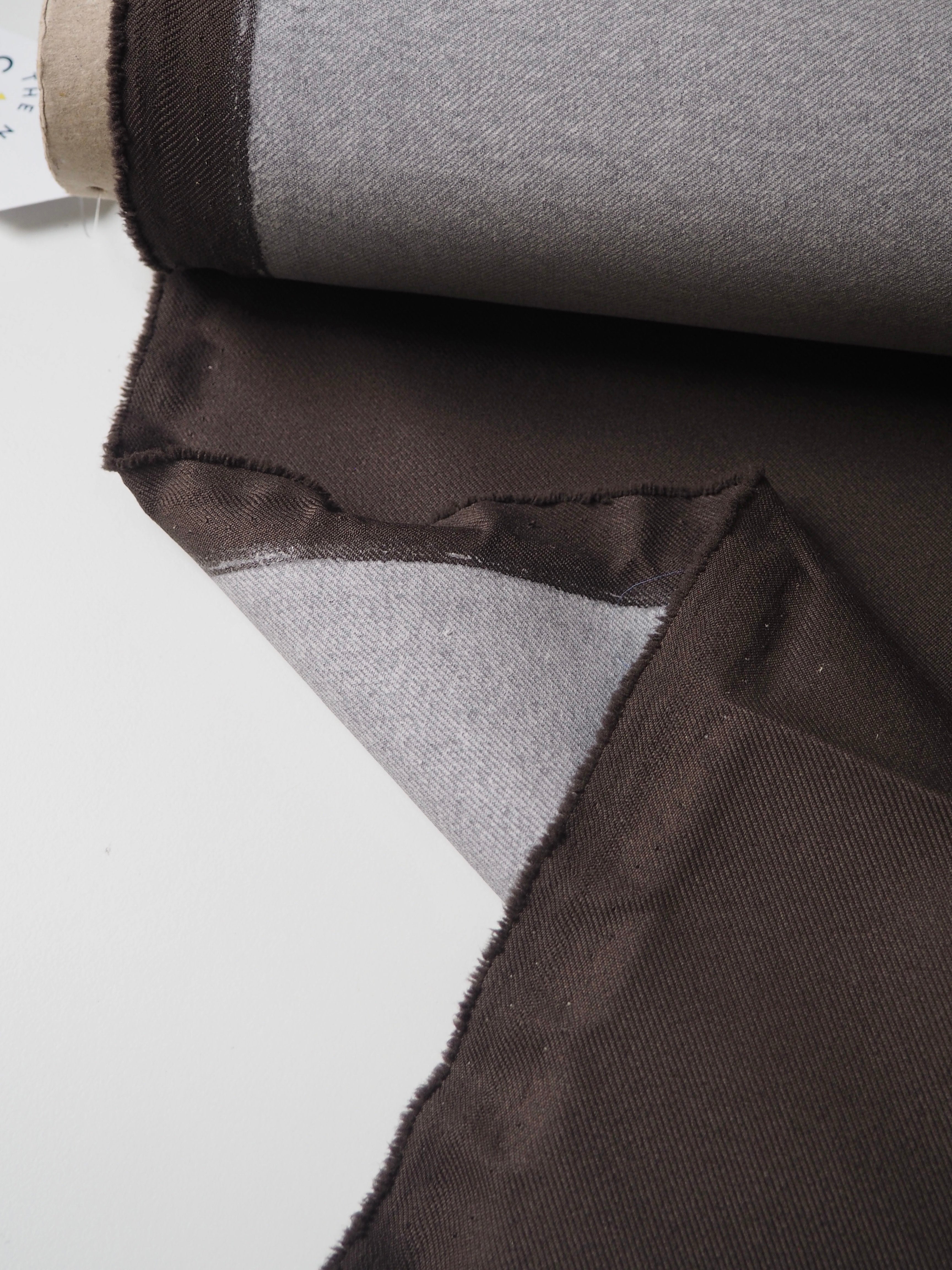 This ex-designer fabric is a twill. It's brown with a coated backing. Lightweight with a typical twill weave and sturdy handle. It's a very structured cloth made for furnishing projects, but can be used as you like!