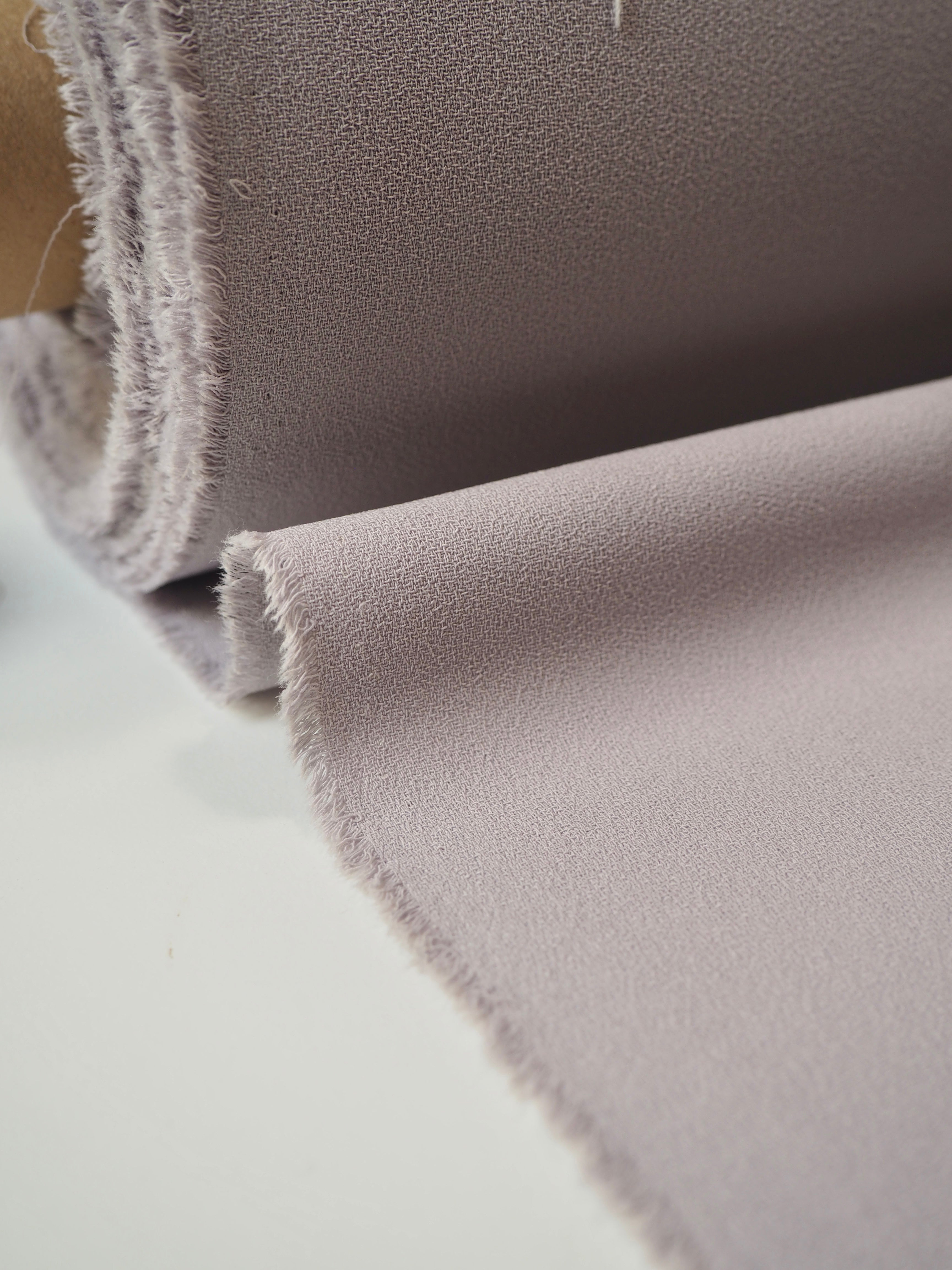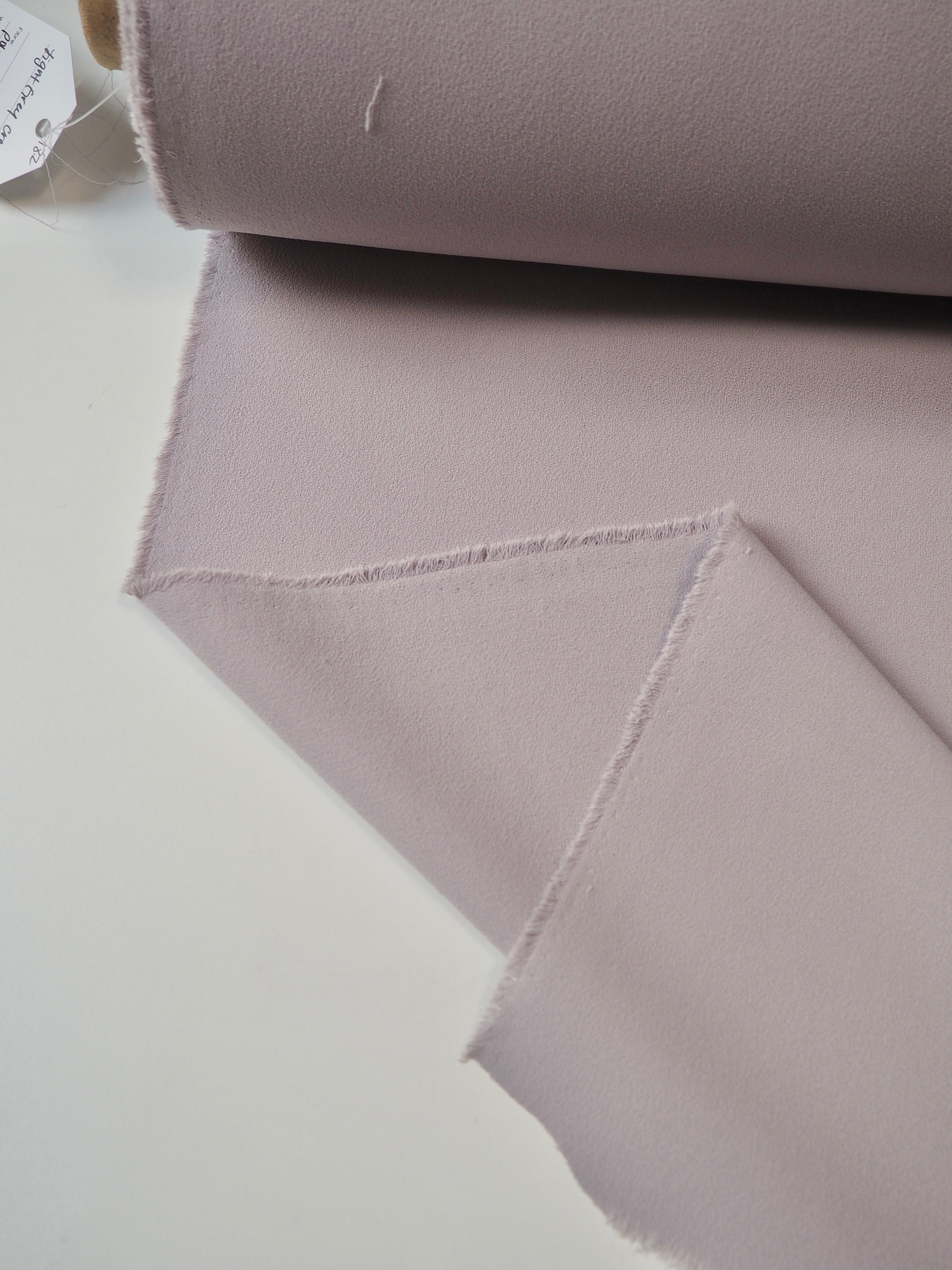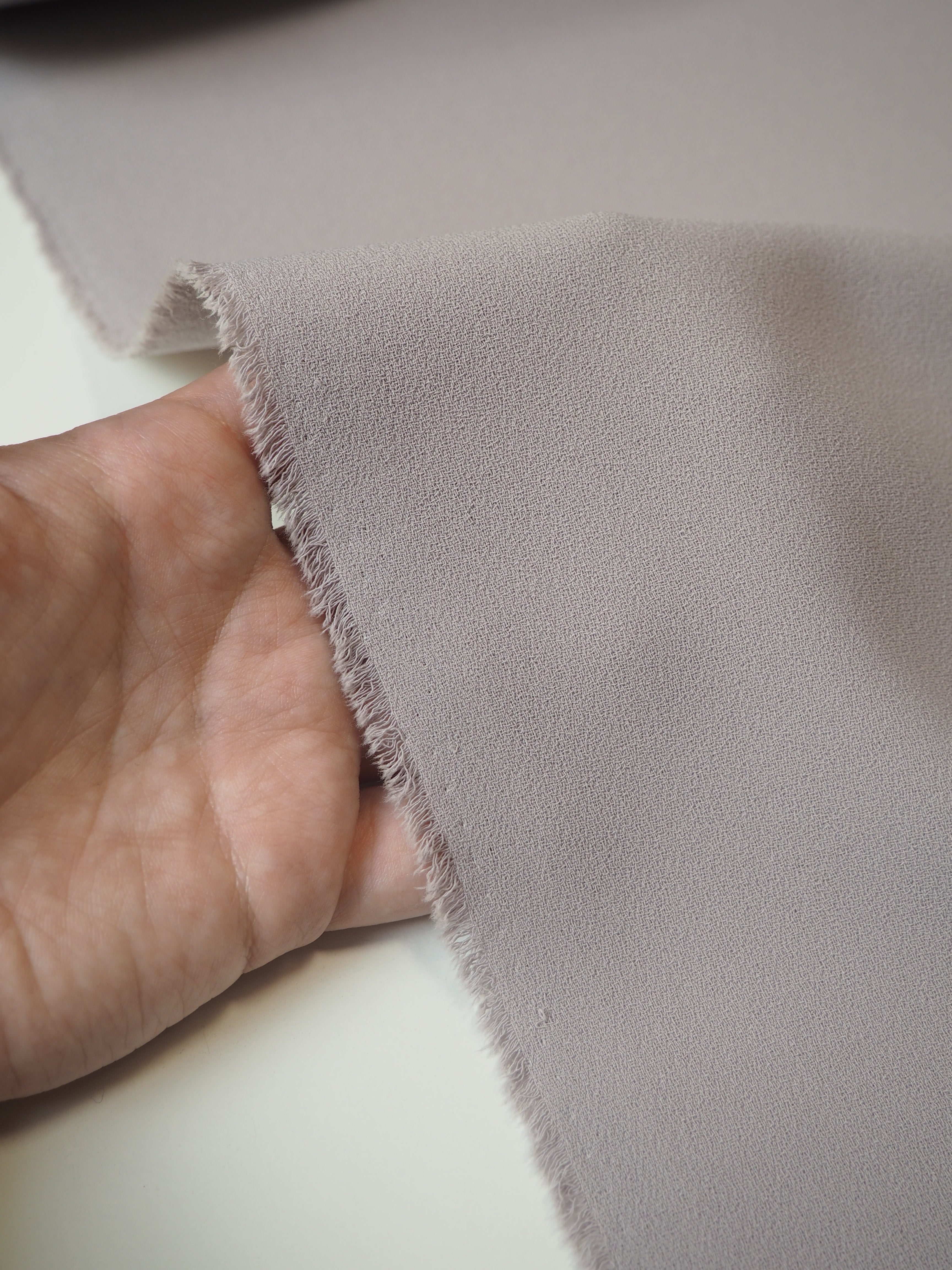 This ex-designer fabric is a crepe. It's light to medium weight with lovely movement and great drape. Has the loveliest handle, with a typical crepe texture. Opaque. Perfect for dresses and tops, and even trousers!