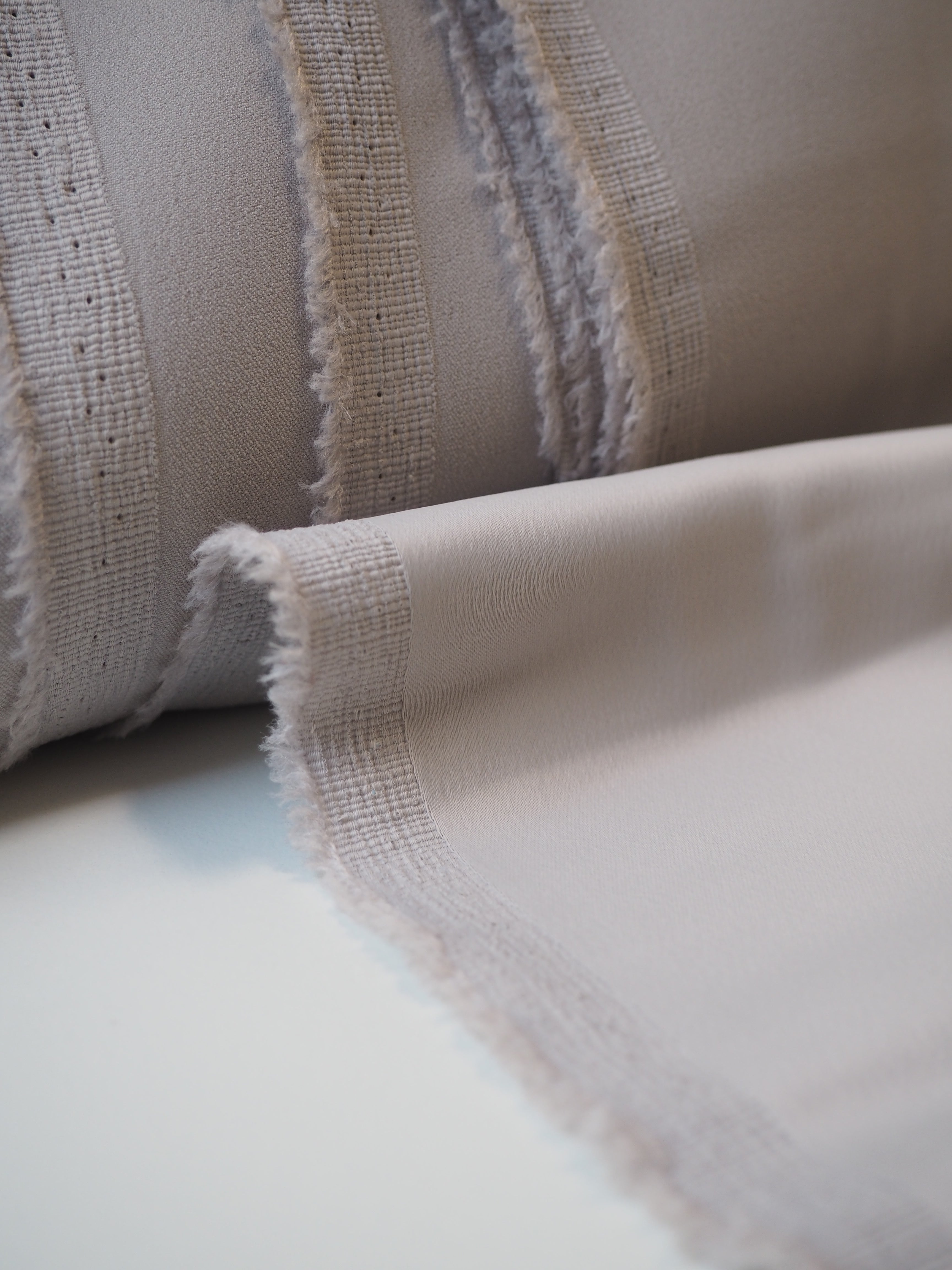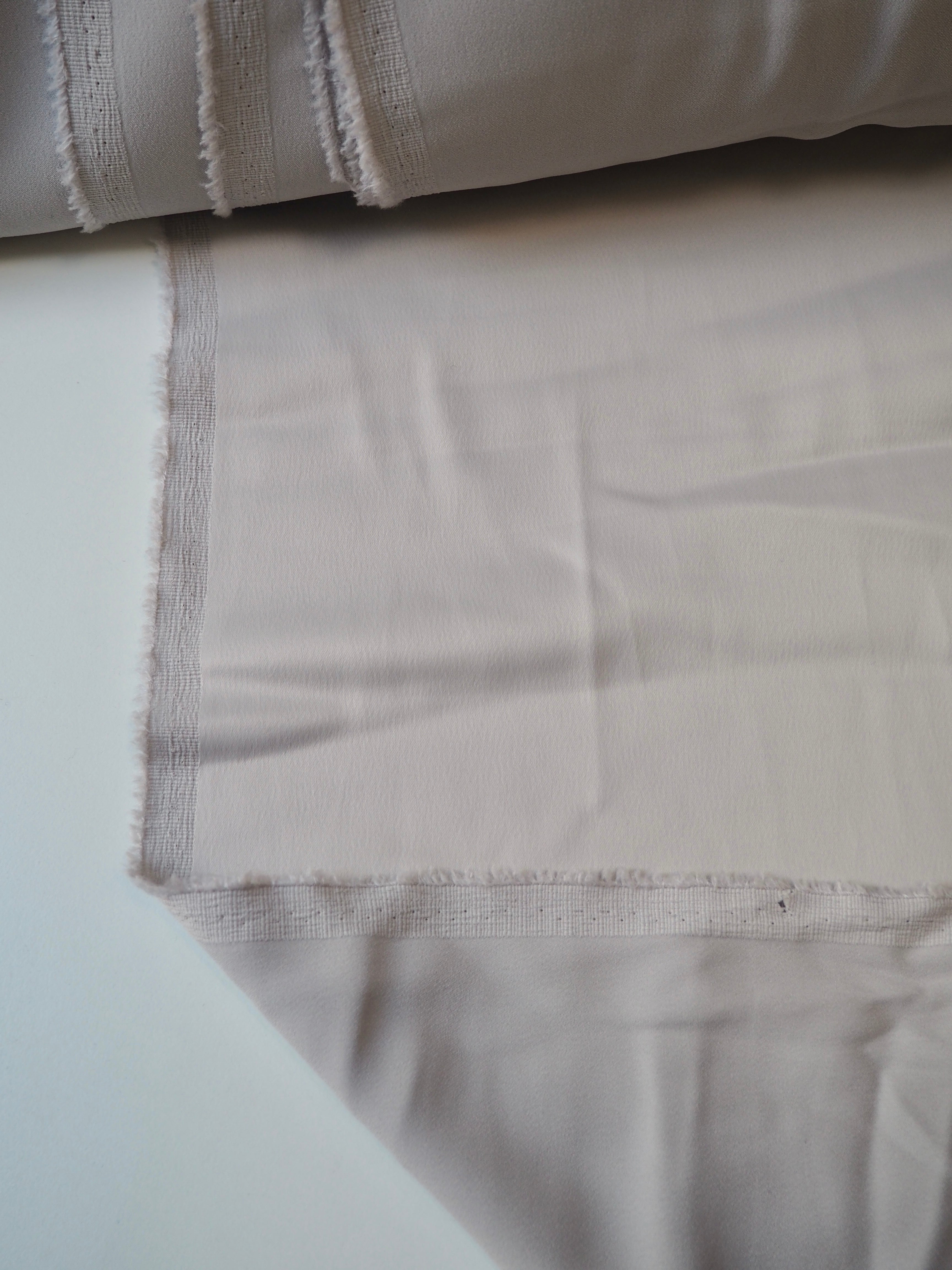 This ex-designer fabric is a satin-backed crepe. It's a blend of viscose and acetate. It's medium weight with lovely movement and drape. Has a light satin sheen on the reverse, with a soft crepe topside. These can be used interchangeably! Has a lovely handle, and is fully opaque. Perfect for dresses and tops, or swishy trousers!