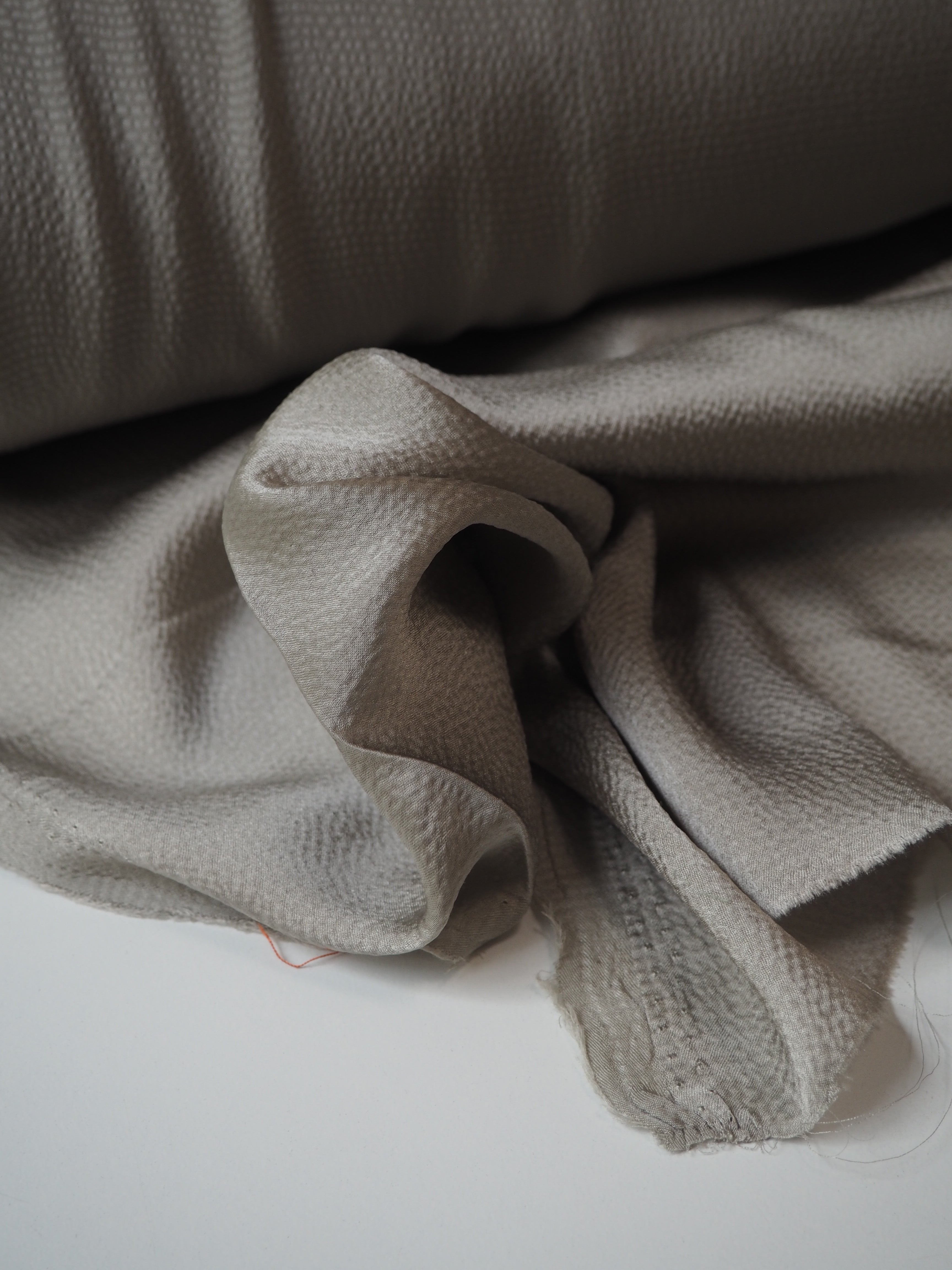 This ex-designer fabric is a hammered silk. It's lightweight and hangs beautifully! The hammered finish gives it an eye-catching texture, and it has a lovely medium sheen. Wonderful movement, and so soft and silky against the skin! Fantastic handle and fully opaque. It would make a beautiful Everyday Dress/Top!