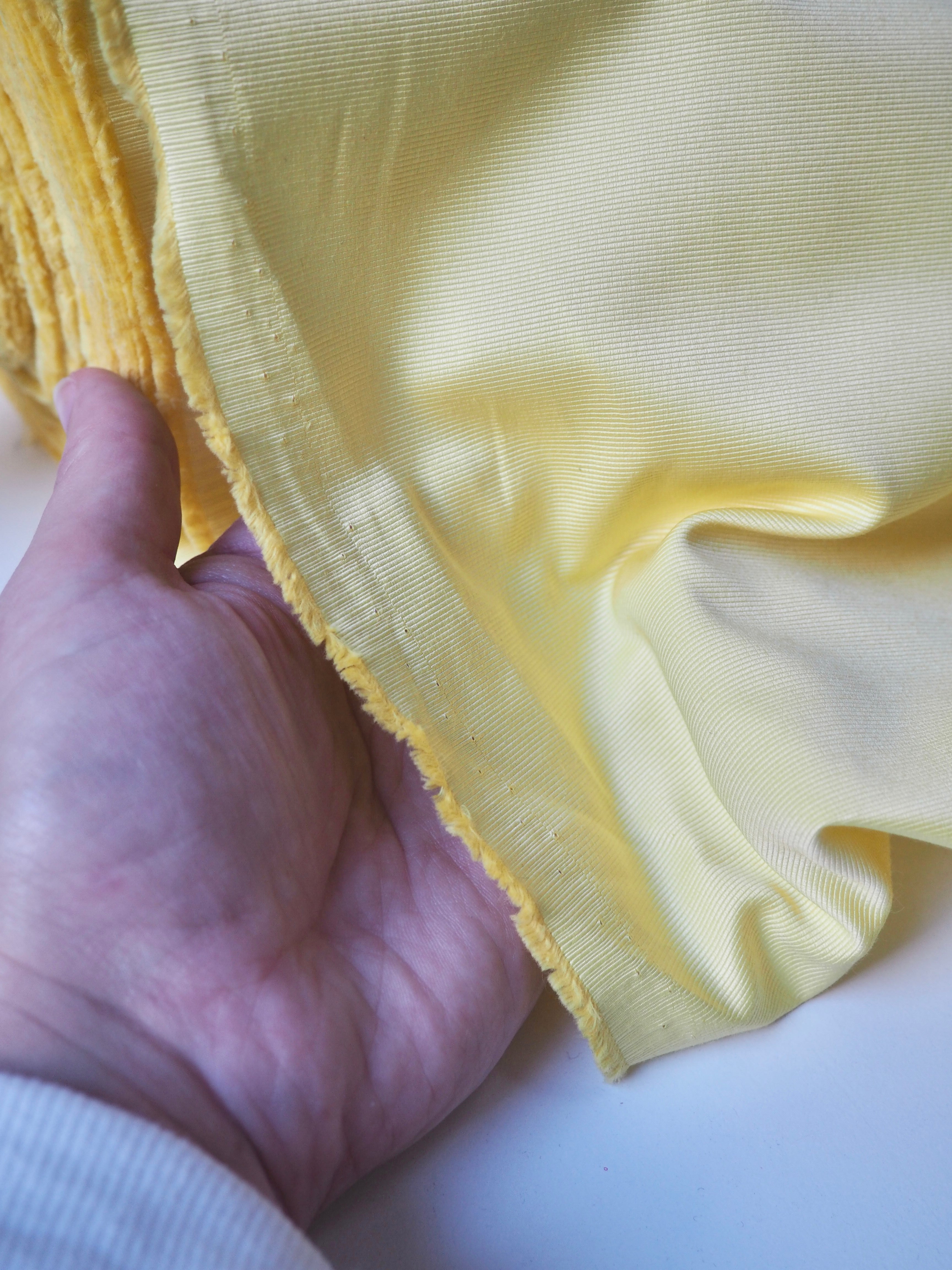 This ex-designer fabric is a viscose faille. Faille is a woven linear pattern, similar to a twill but instead of going diagonally the ribs run width-ways across the fabric. Light to medium weight with great movement and drape, with the faille weave giving it great structure. This one has a lovely bright sheen and beautiful smooth handle. This would be perfect for a jacket, structured dress, or even cushions! This cloth is brighter than the photos allow, it's quite lemon-y!