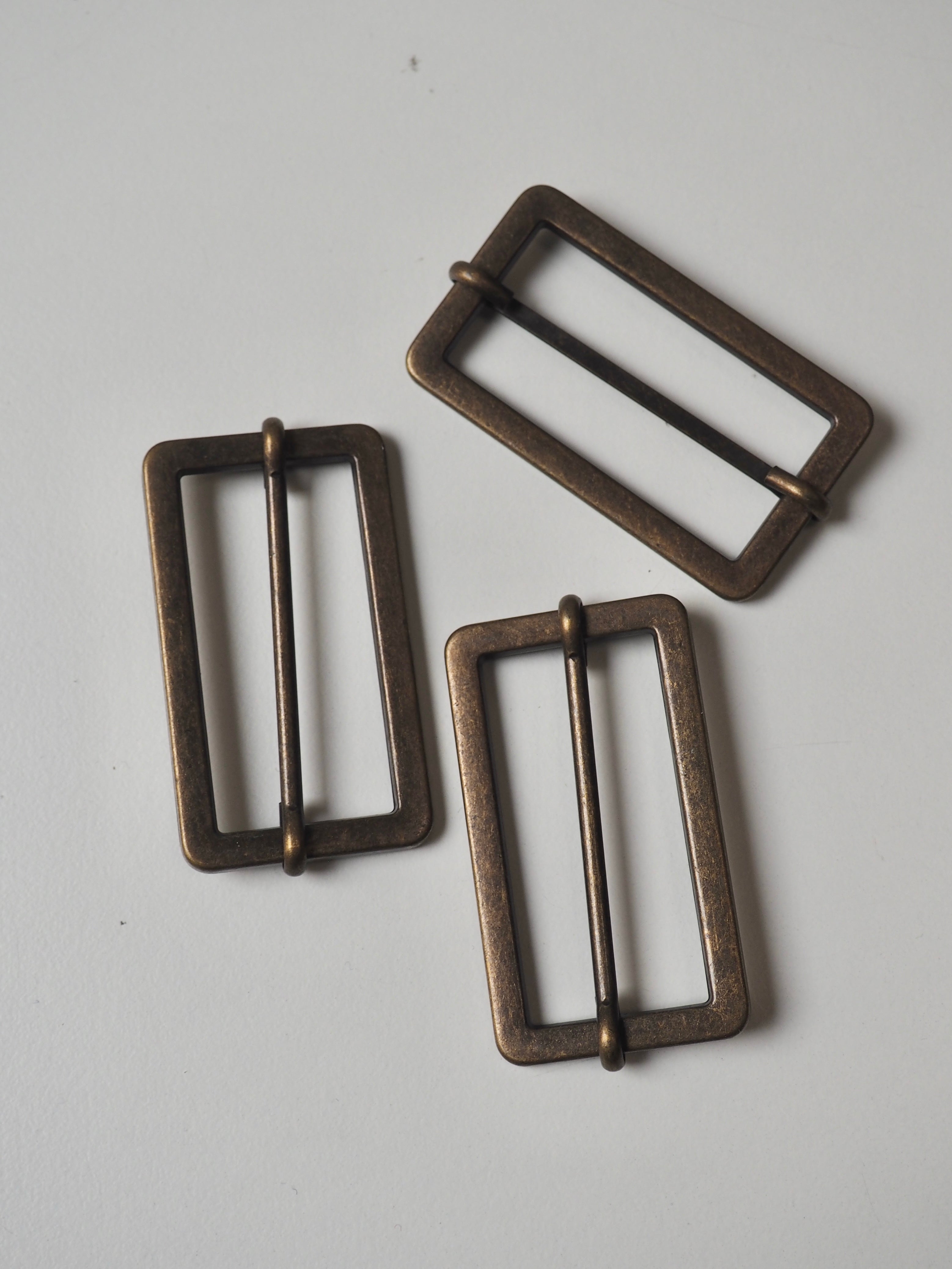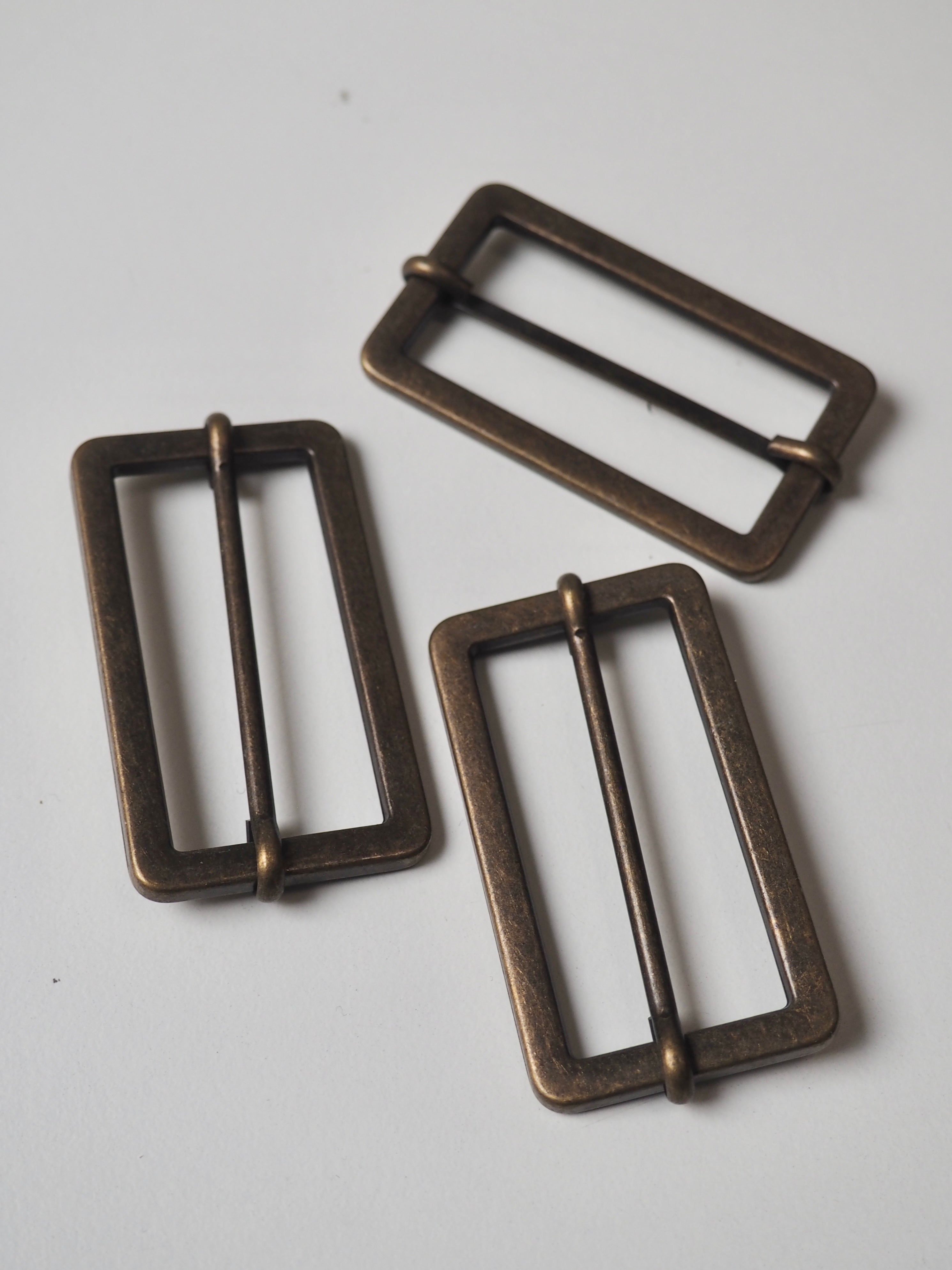 This ex-designer hardware is a slider. It's lightweight and has a sliding central bar for adjustments. They could be used for coats, dresses, jumpsuits, or accessories - they're great for adding an extra detail to your me-mades.