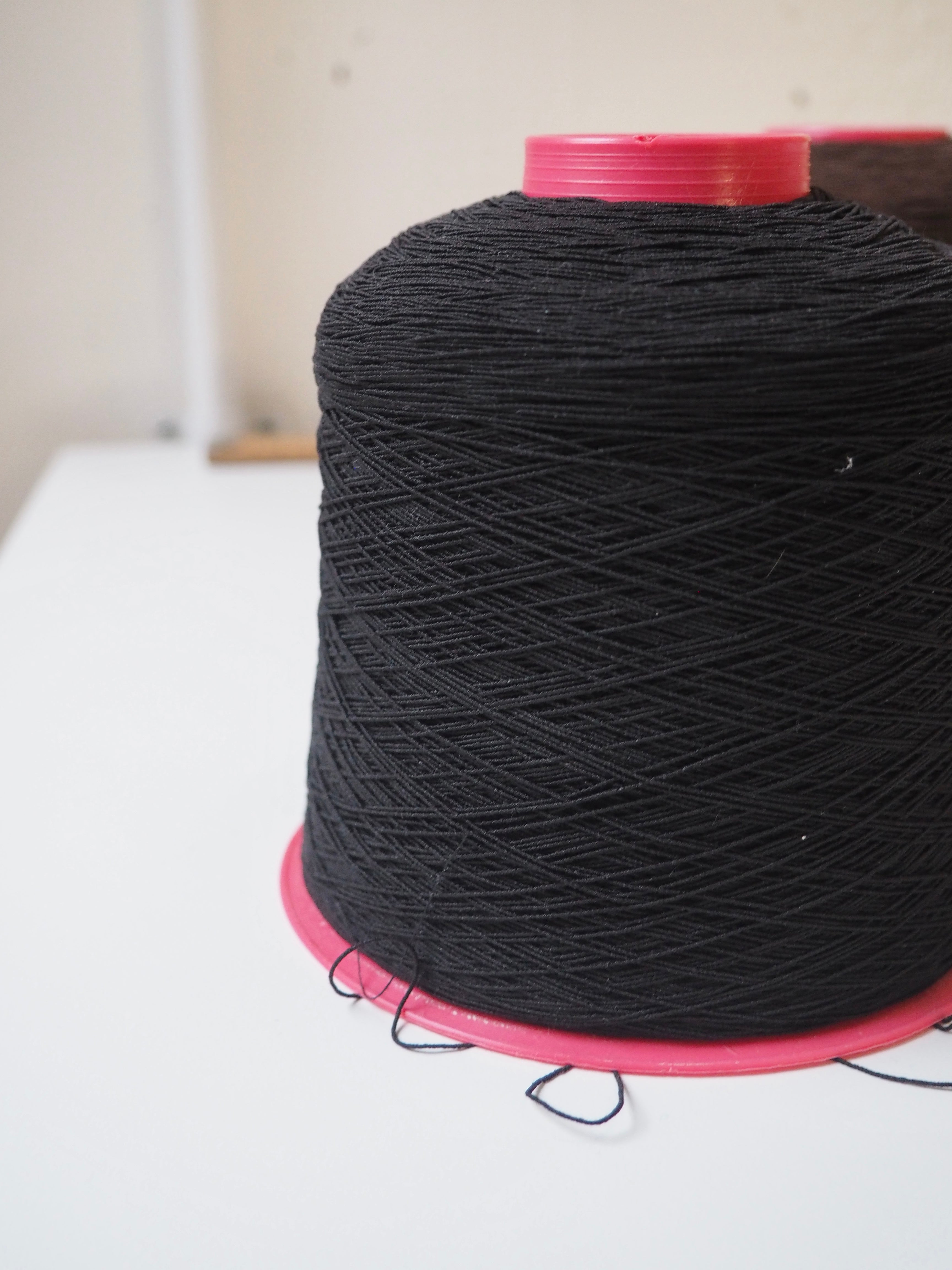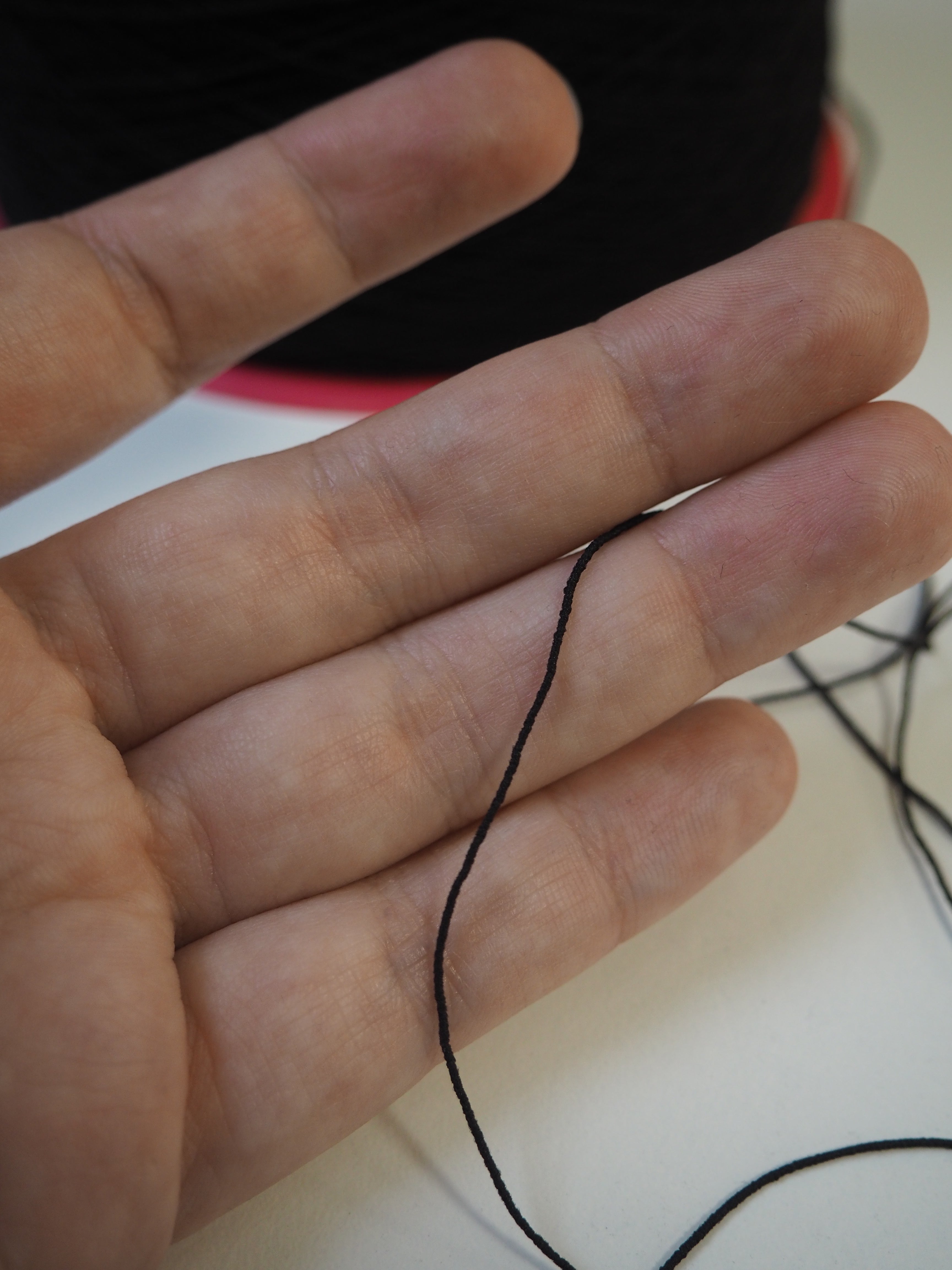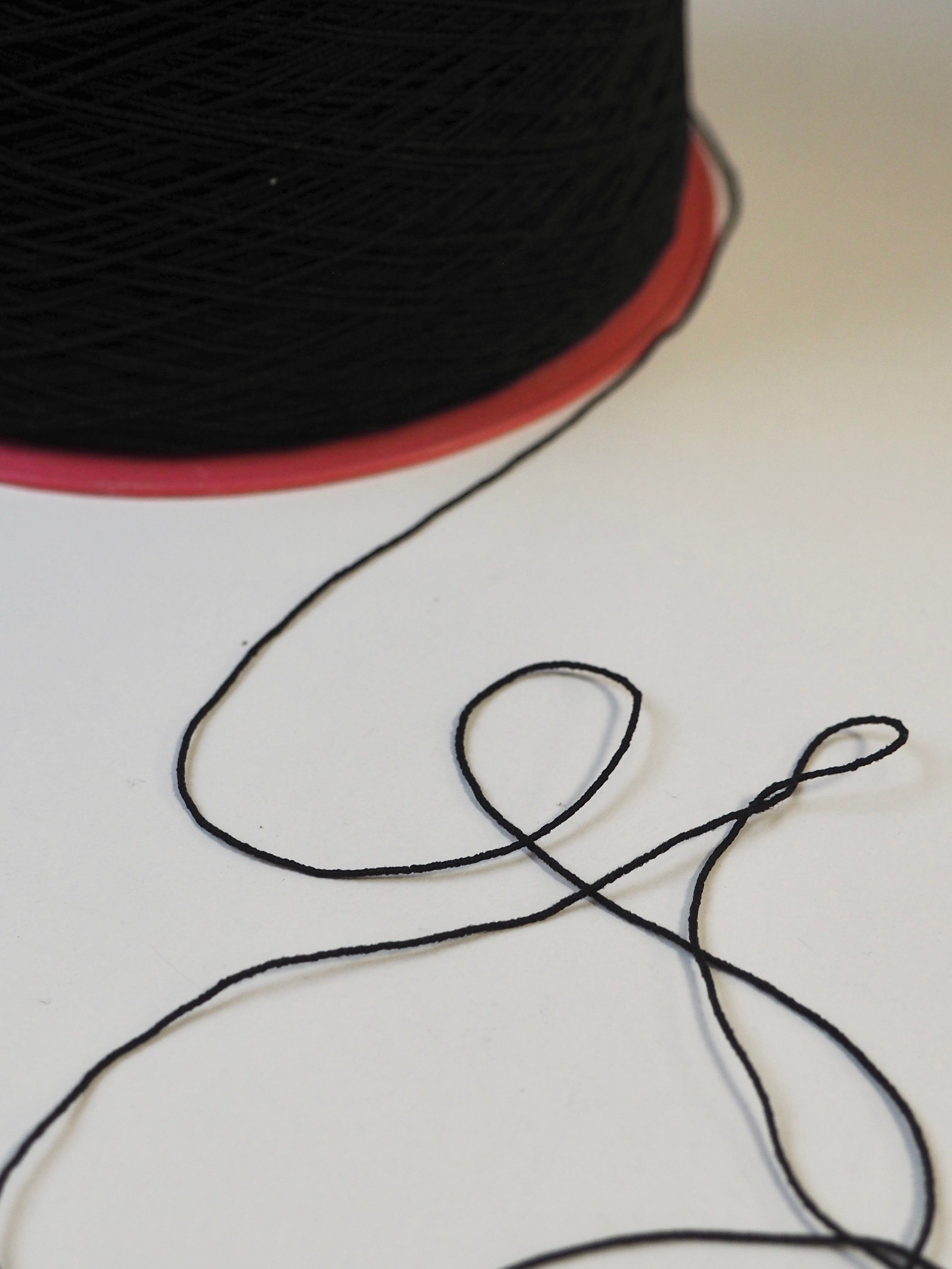 This ex-designer trim is an elastic thread. It's very stretchy, up to 1.5x its original size. Super lightweight and perfect for shirring projects!