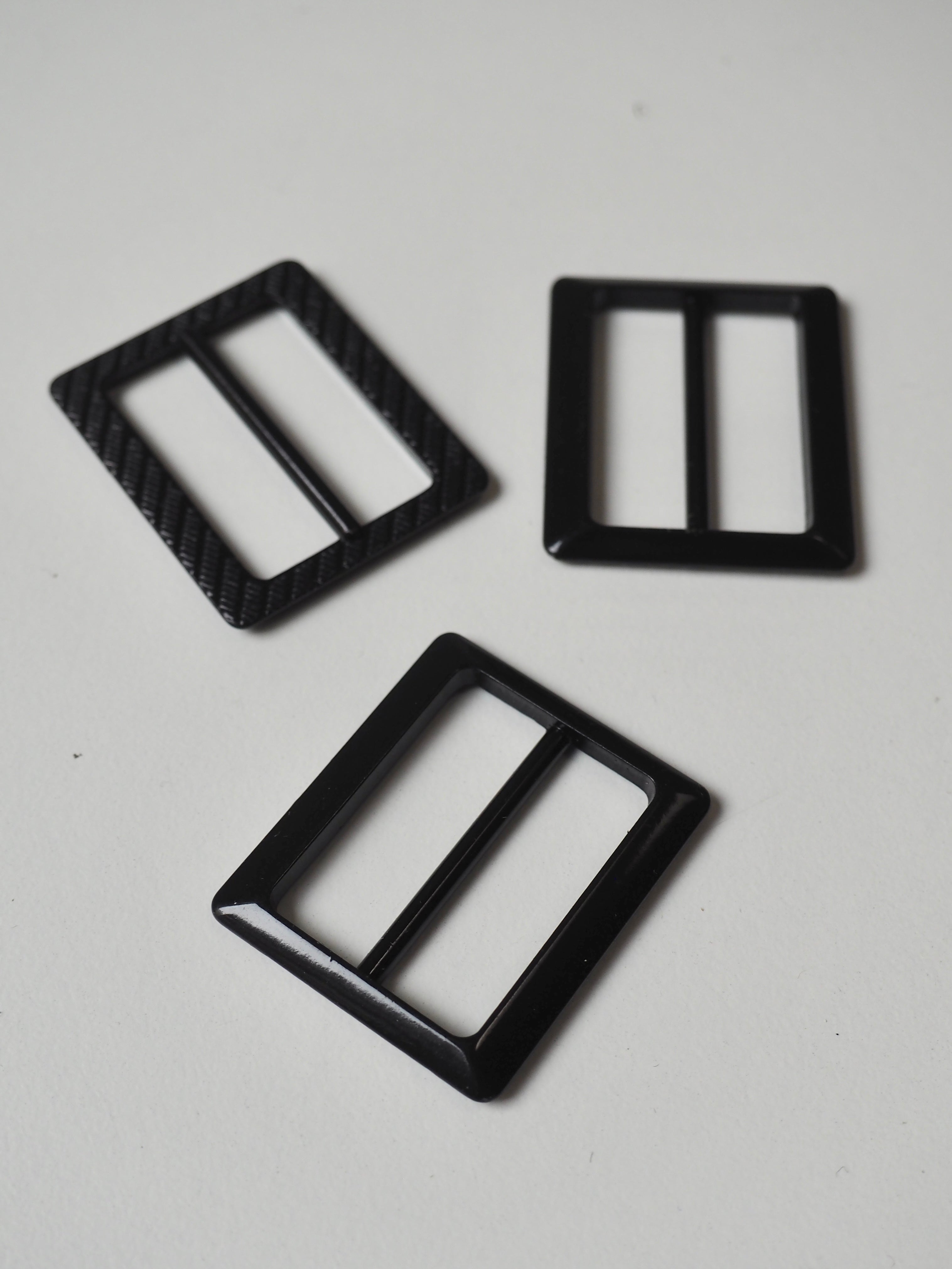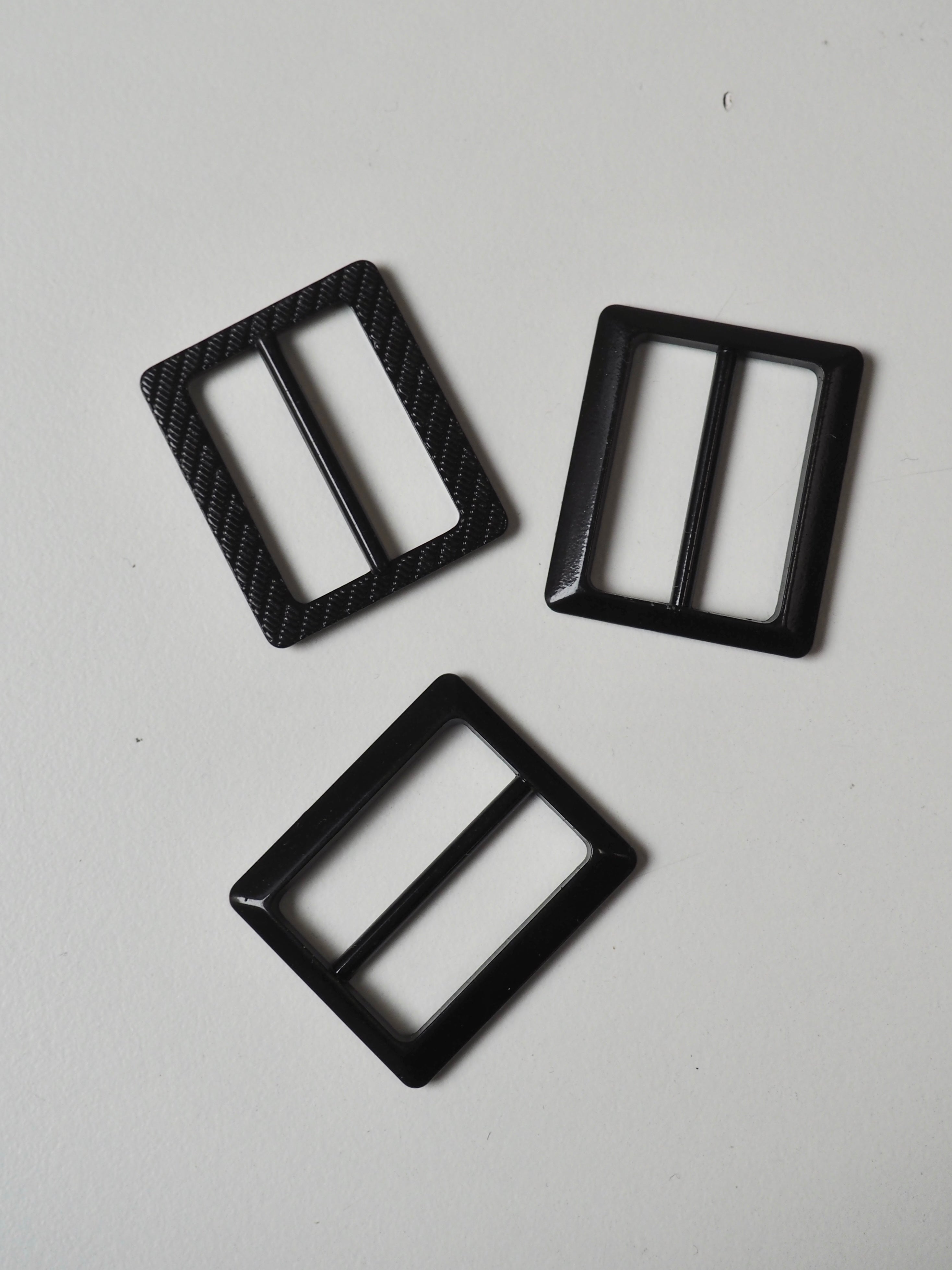 This ex-designer hardware is a slider. It's lightweight and has a fixed central bar for adjustments. They could be used for coats, dresses, jumpsuits, or accessories - they're great for adding an extra detail to your me-mades.