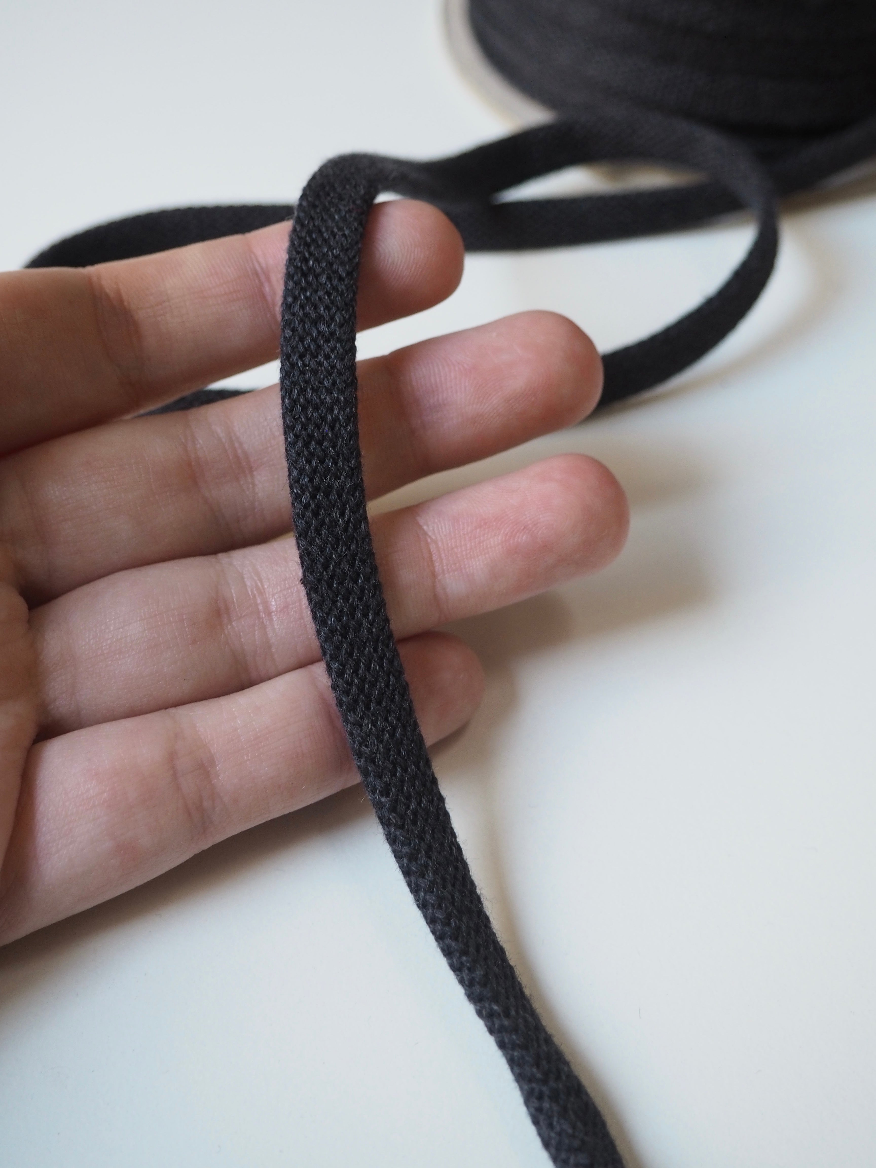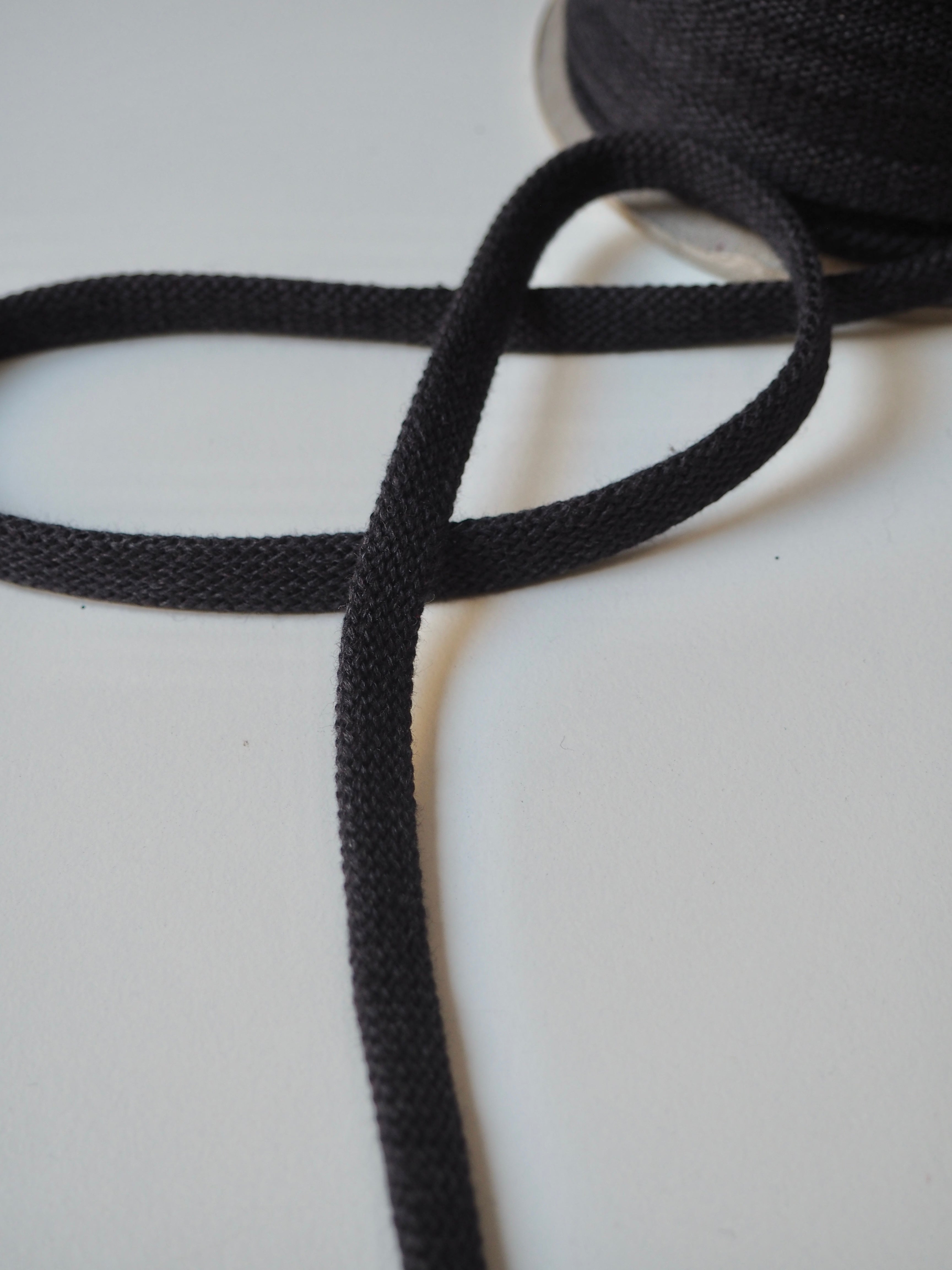 This ex-designer trim is a flat braided cord. This braided cord is perfect for ties on home furnishings, or as a drawstring on a garments. Very soft and easy to use for so many projects. It is tubular so can be used in that capacity. It could also be used for macrame and would look great as a plant hanger!