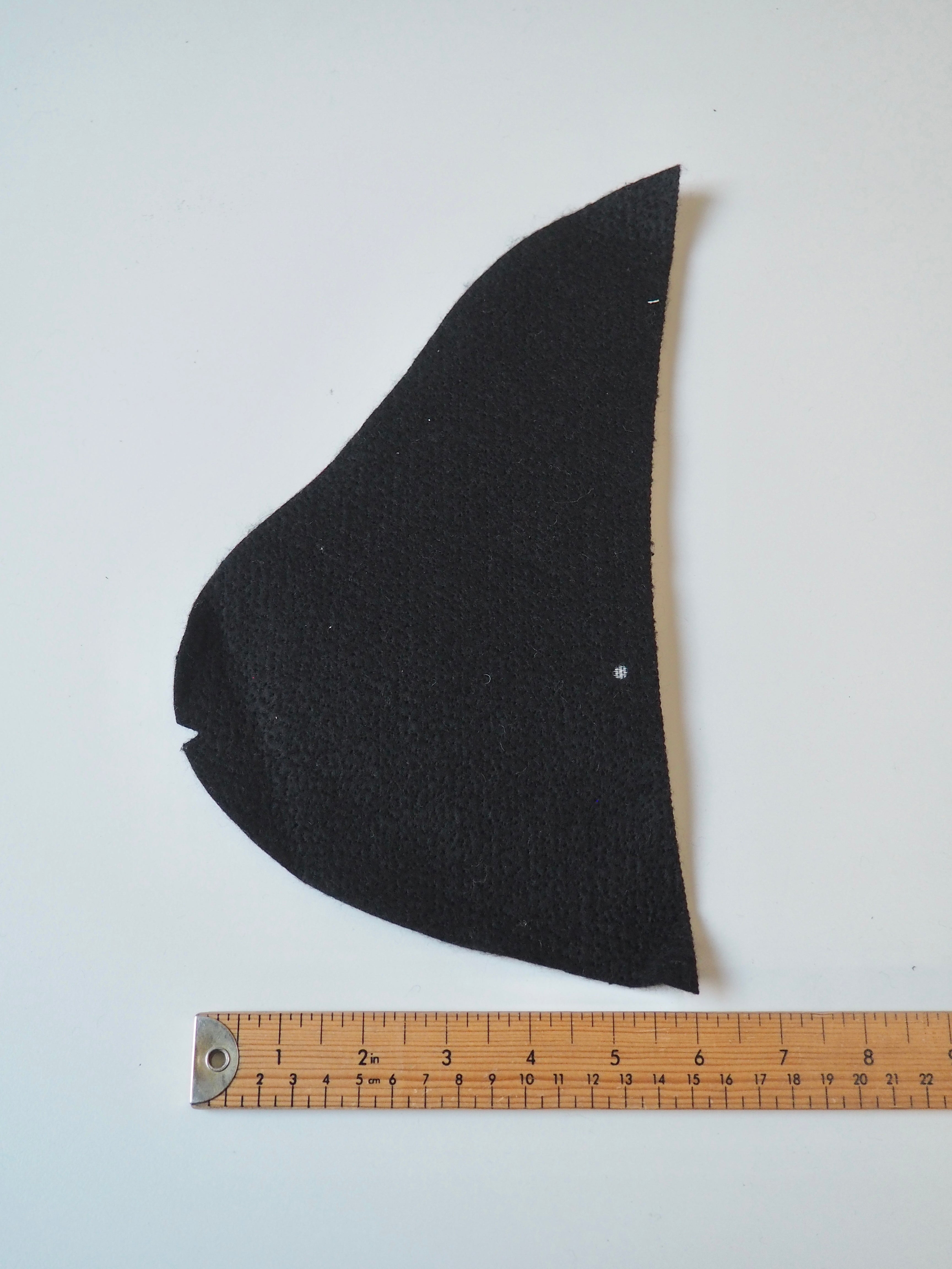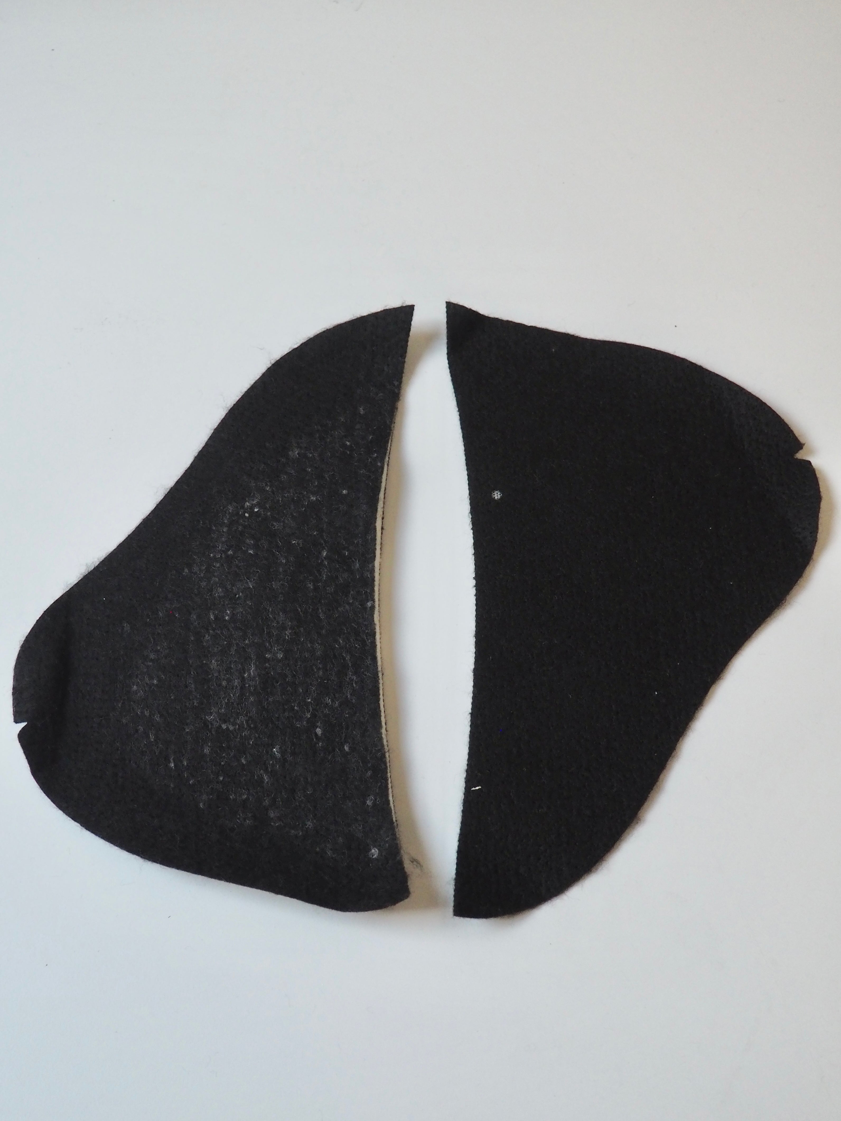 This ex-designer trim is a pair of shoulder pads. They are made up of two layers of structured felt around a canvas layer and several layers of shaped wadding in the centre. The layers have been needlepunched together to ensure a rigid supportive structure. They are a large elongated triangular shape which could also be adjusted for the desired fit and effect. Perfect to add shape to the shoulder of a jacket or staple winter coat!