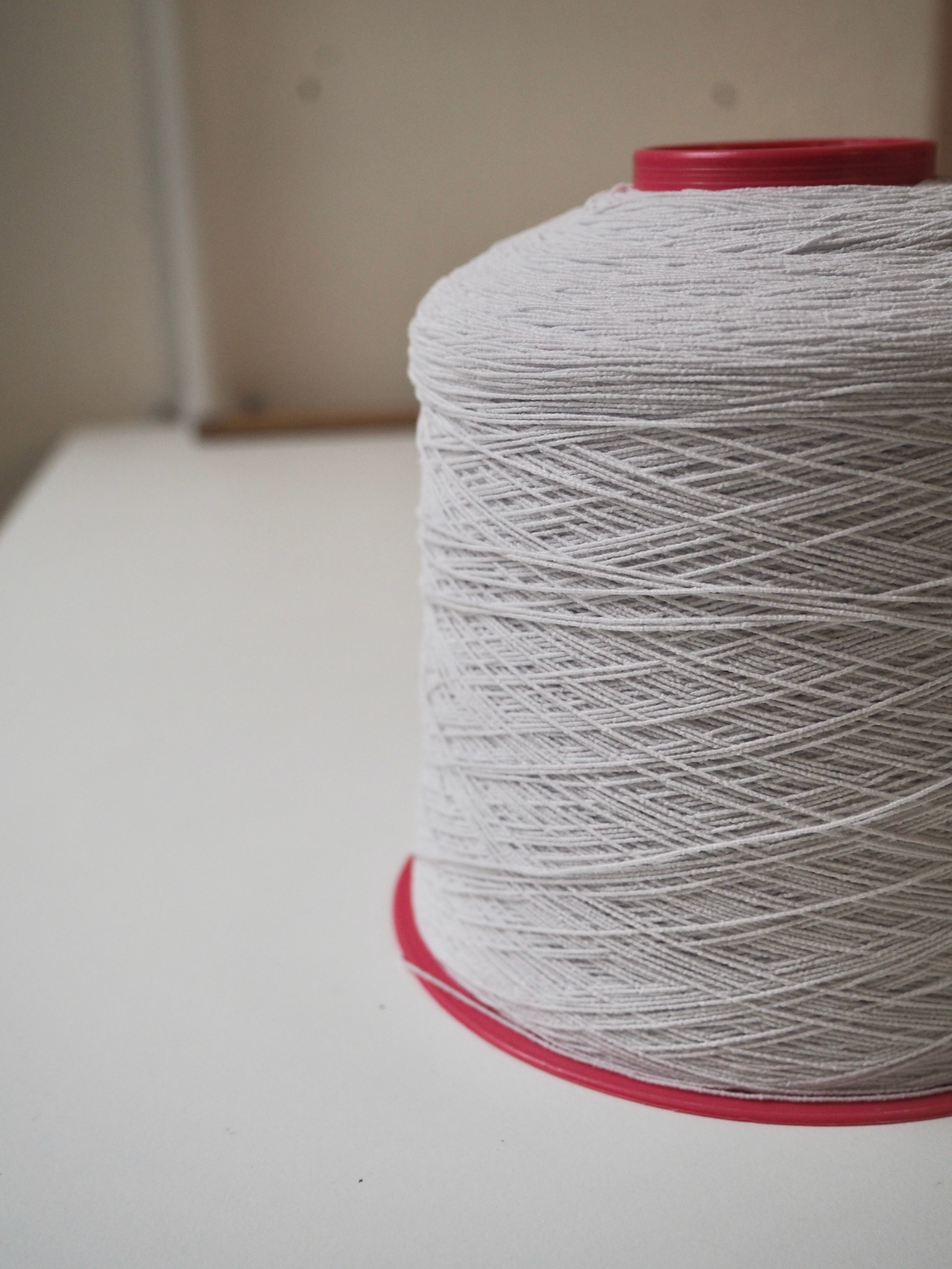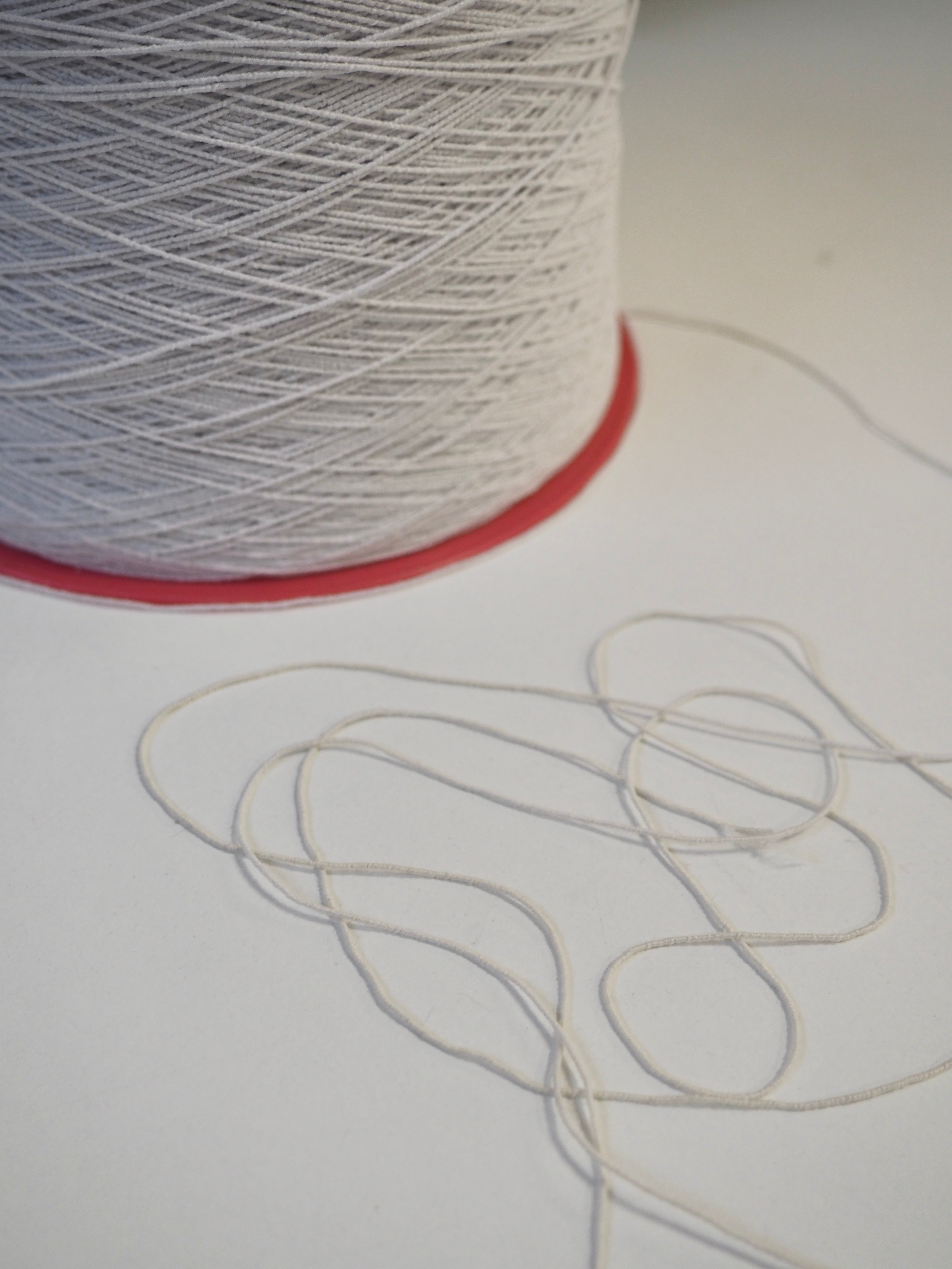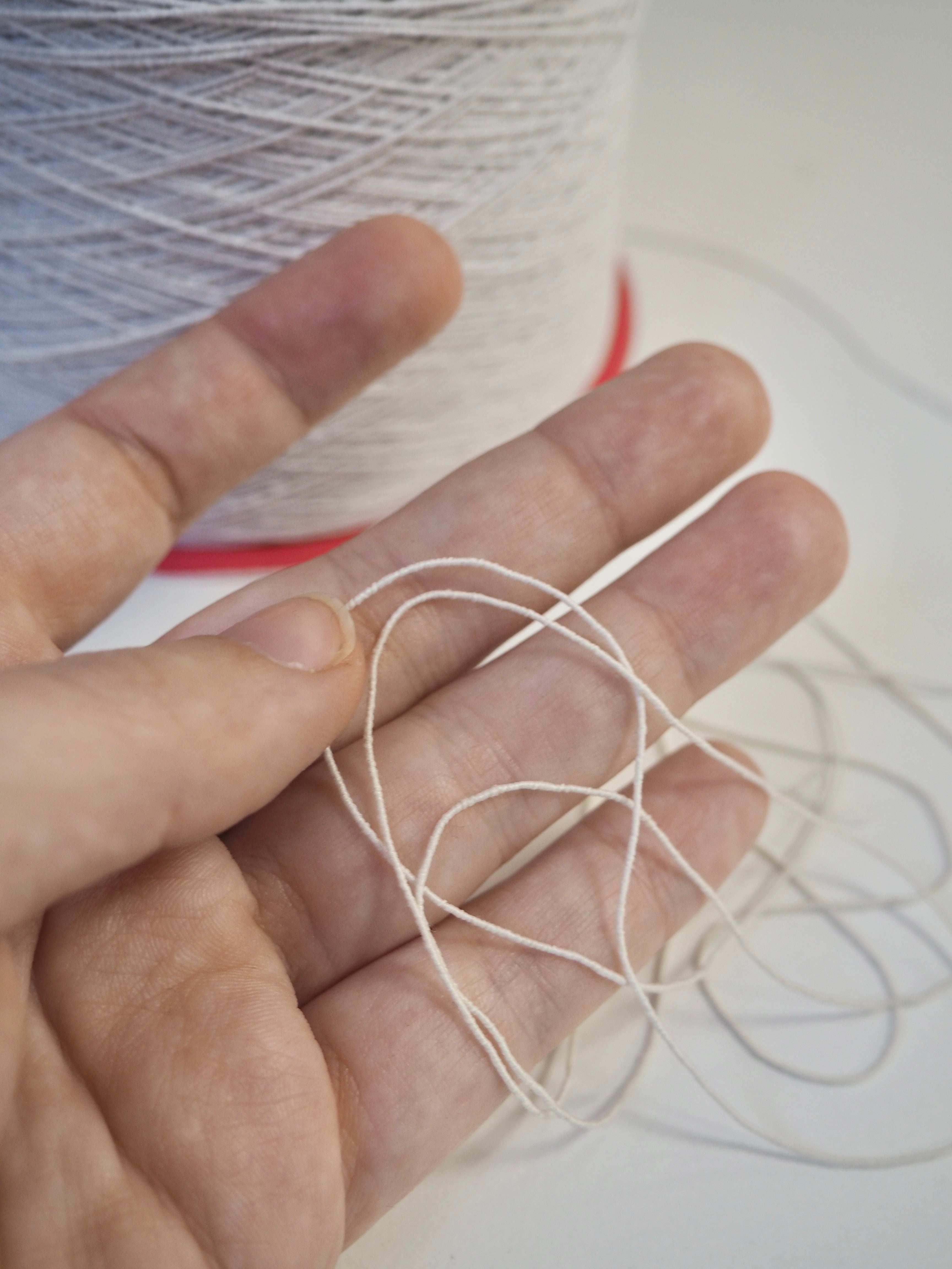 This ex-designer trim is an elastic thread. It's very stretchy, up to 1.5x its original size. Super lightweight and perfect for shirring projects!