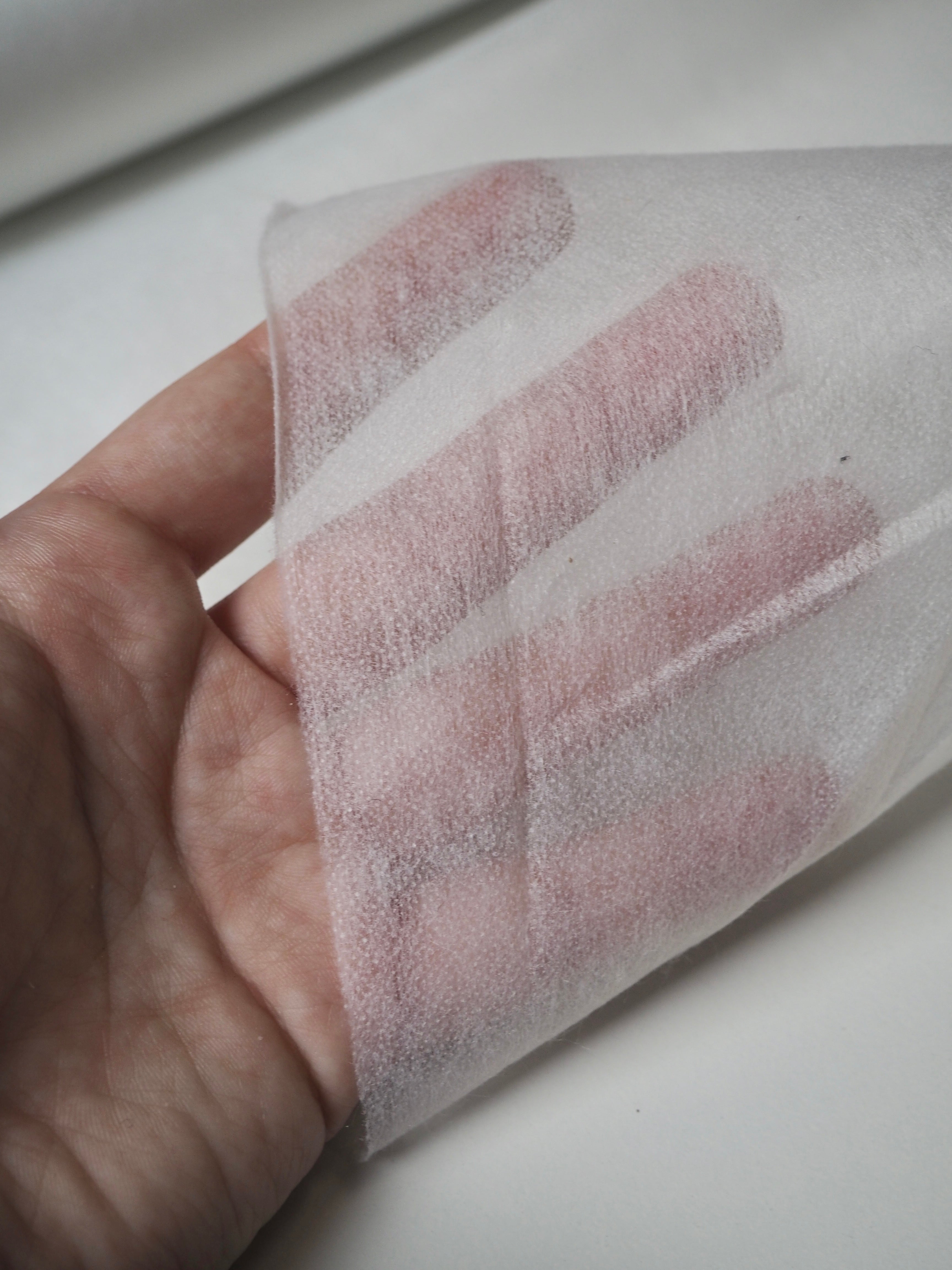 This ex-designer fabric is an interfacing. It's very lightweight with a soft but slightly papery handle. Has a slightly fuzzy finish, with a fusible backing. Perfect for crafting and quilting, and for facings and pocketings!