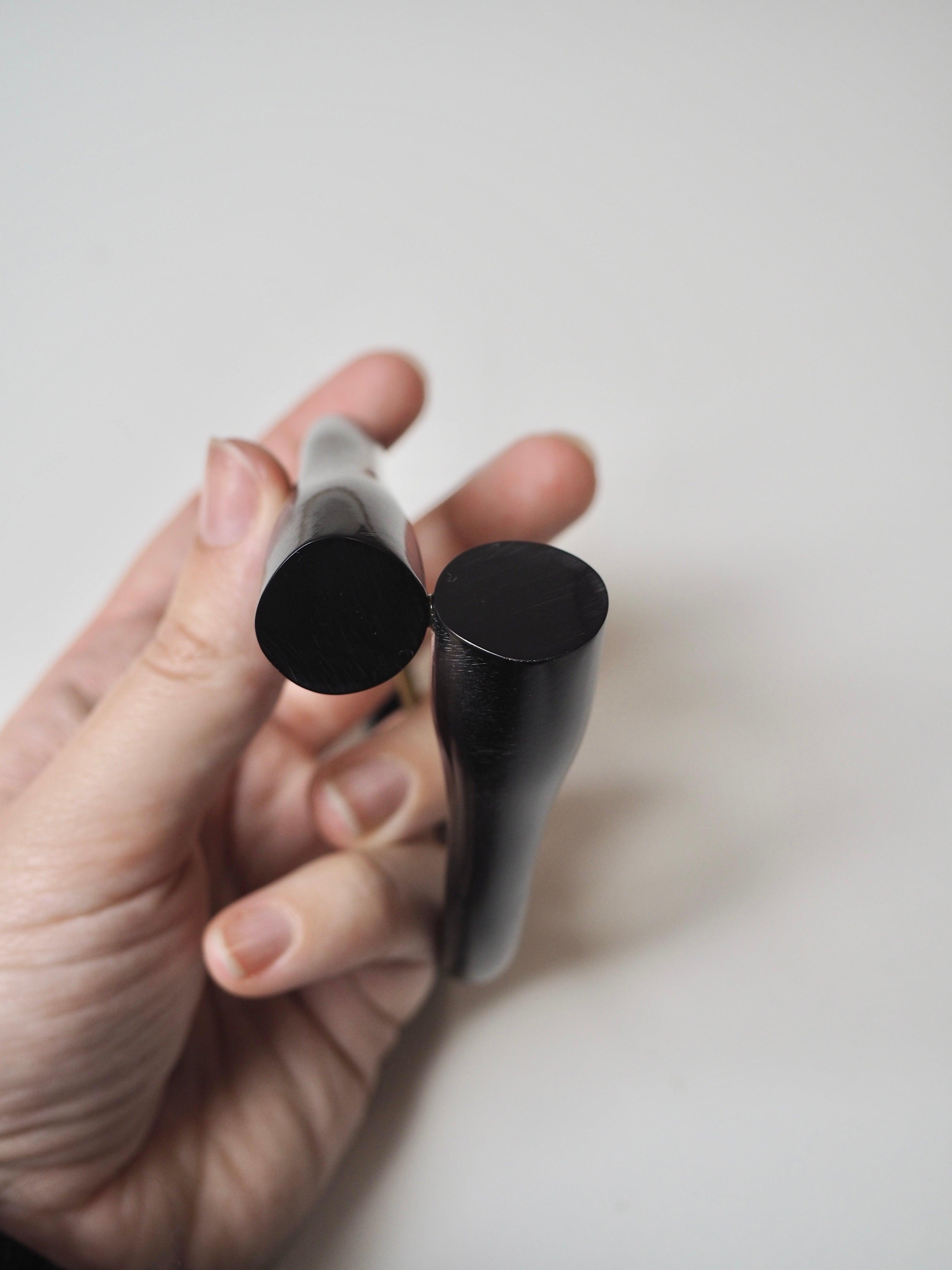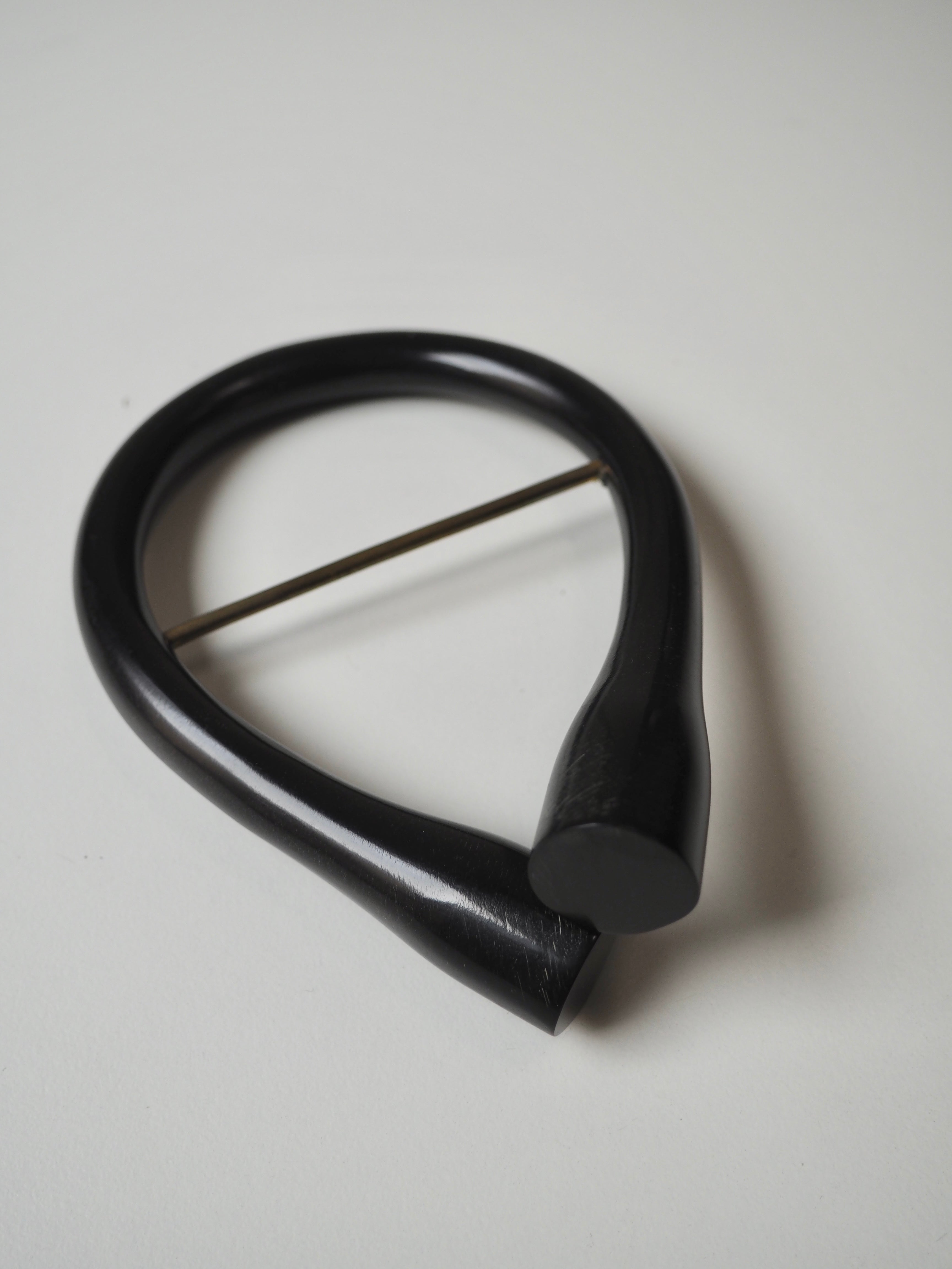 This deadstock trim is a plastic buckle, perfect for adding a special detail to garments! They could be used for coats, dresses, jumpsuits, bags, belts - they're perfect for adding an extra detail to your me-mades. They are a black colour, with lighter brush type marks to look like horn. No needle, so only works as a slider style buckle.