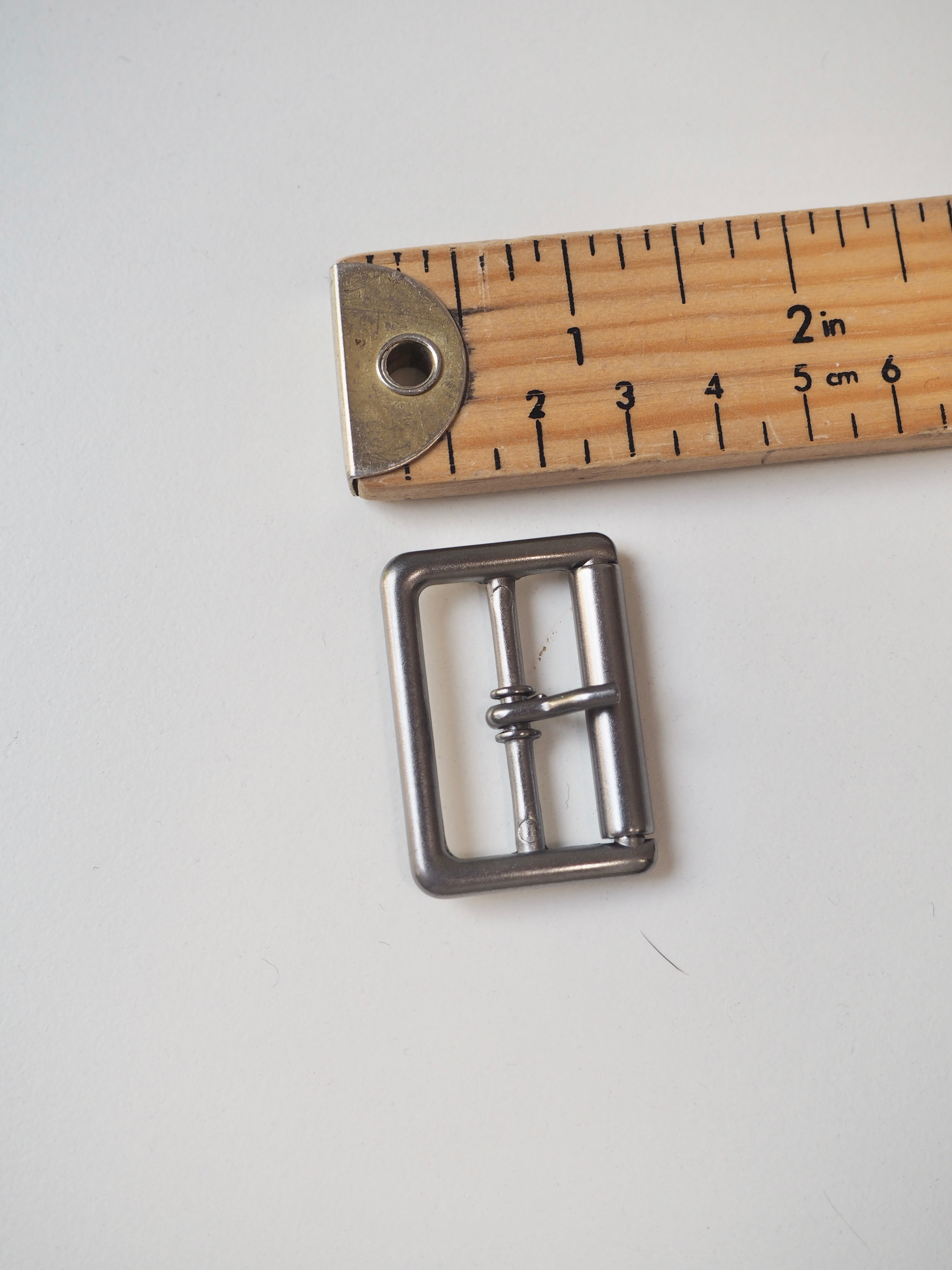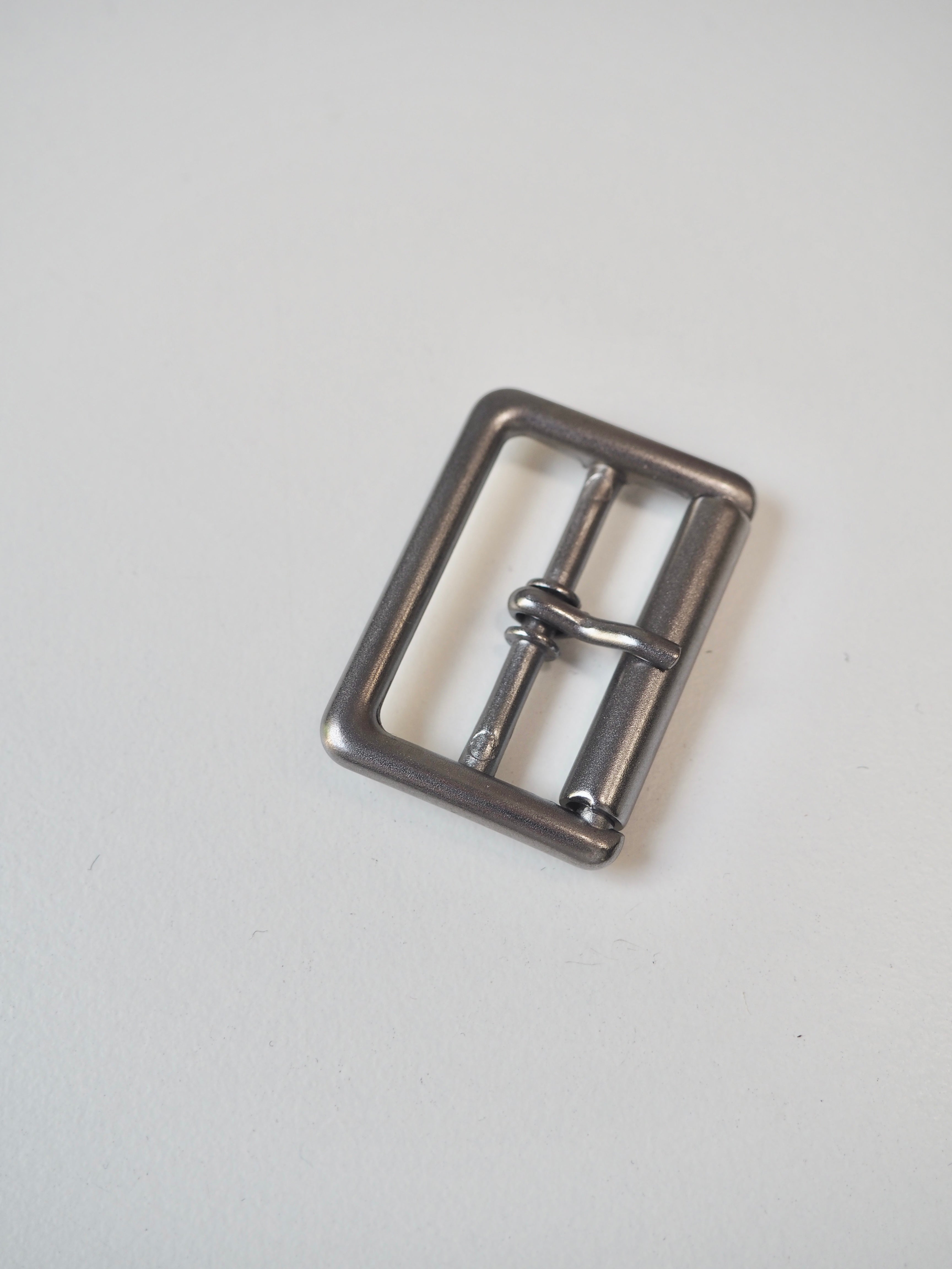 This ex-designer hardware is a buckle. These gunmetal buckles are perfect for adding to garments or accessories. They are medium weight and have a lovely gunmetal finish.