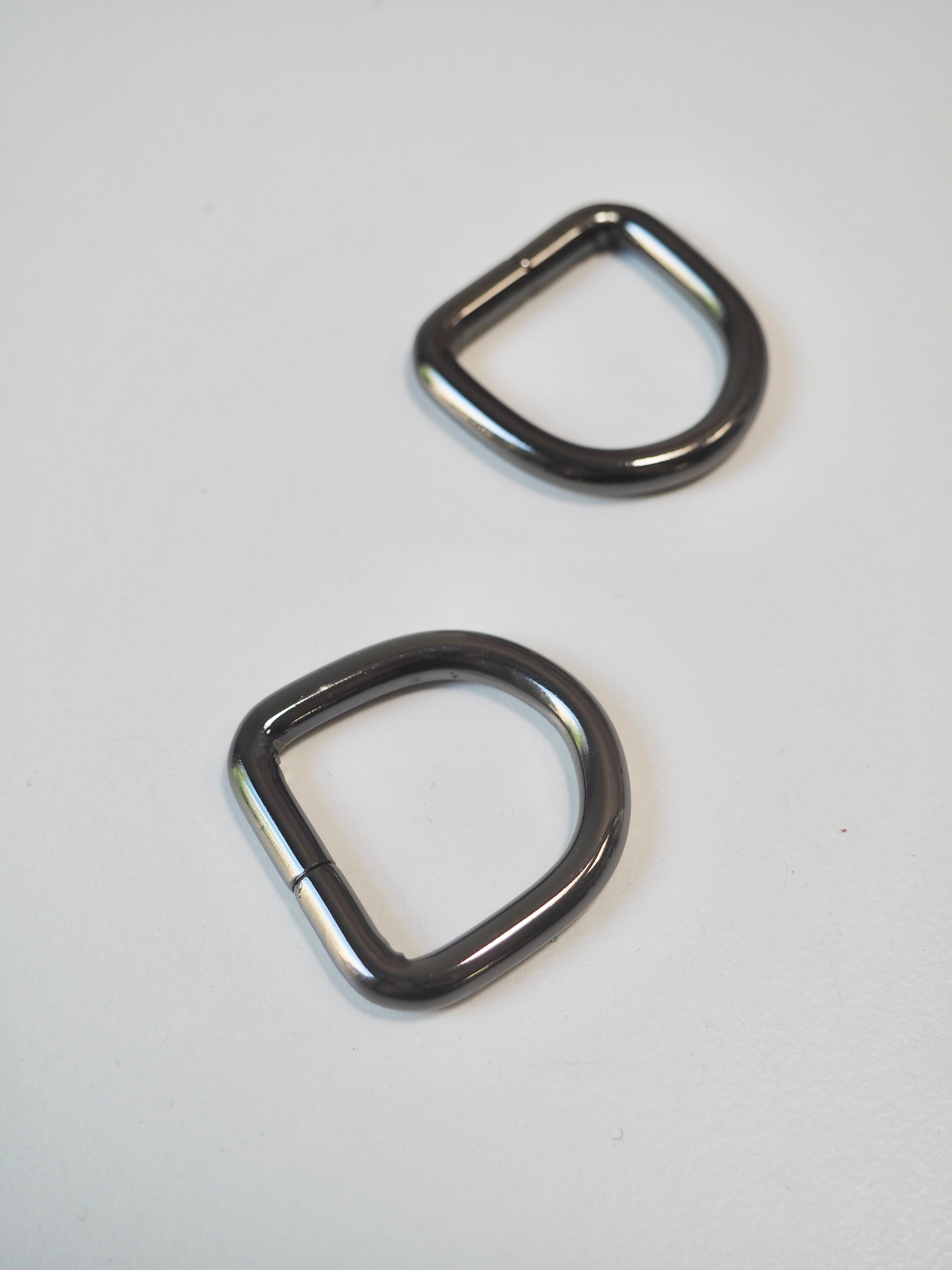This ex-designer hardware is a D-ring. It's chunky with a slight opening. These can be used for bag making and accessories. Ideal for attaching straps!