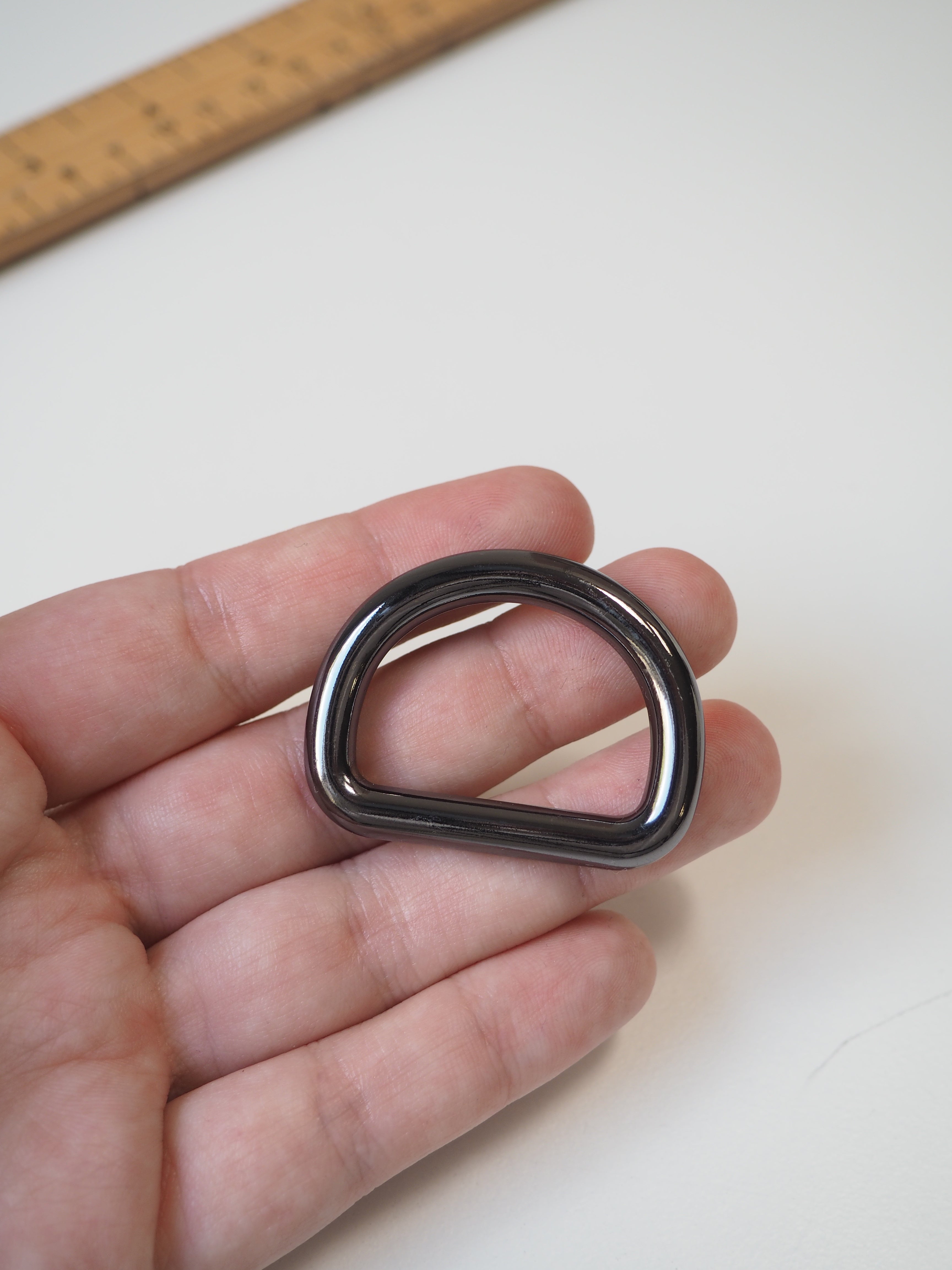 This ex-designer hardware is a D-ring. It's chunky and fully enclosed. These can be used for bag making and accessories. Ideal for attaching straps!