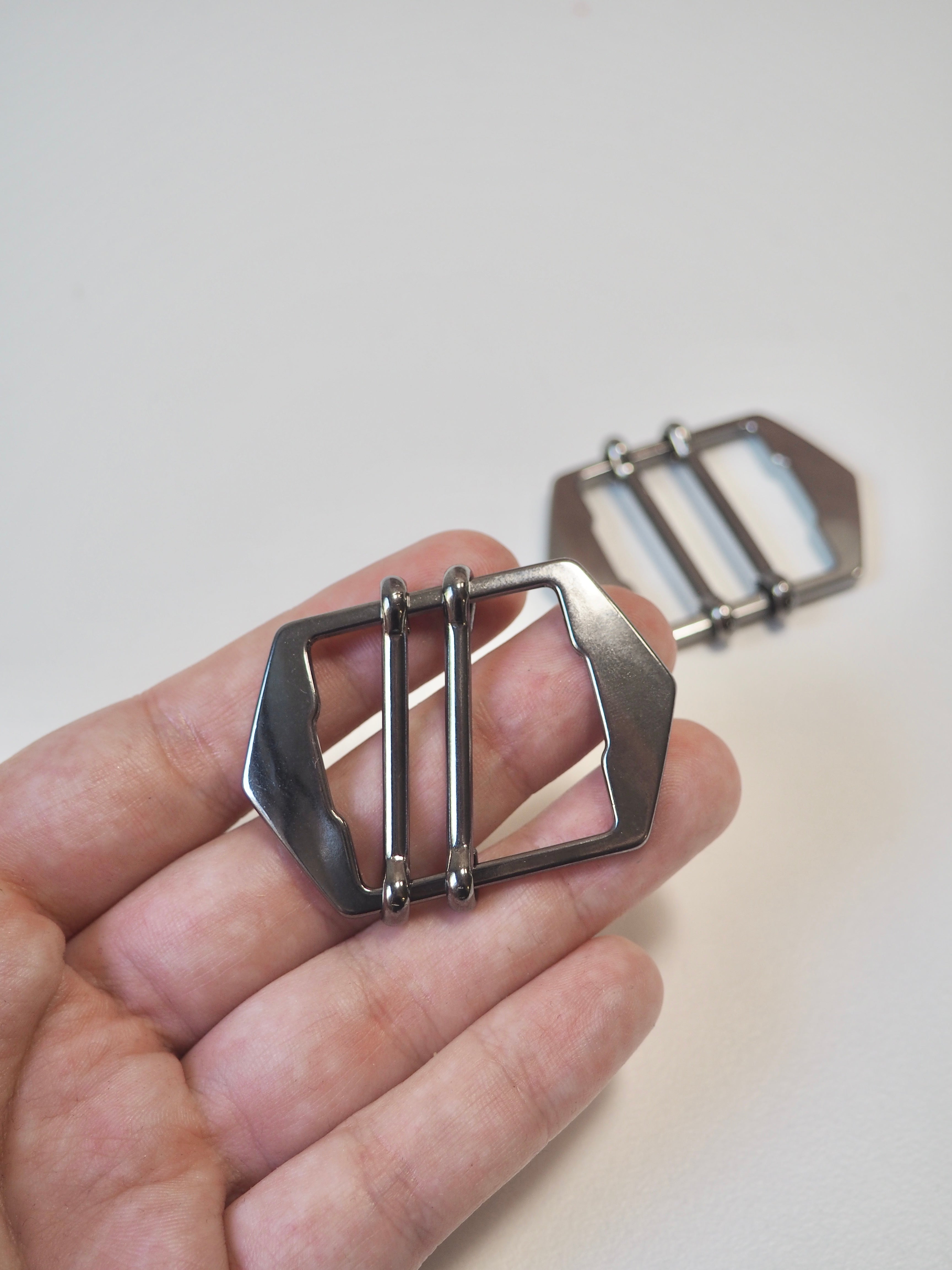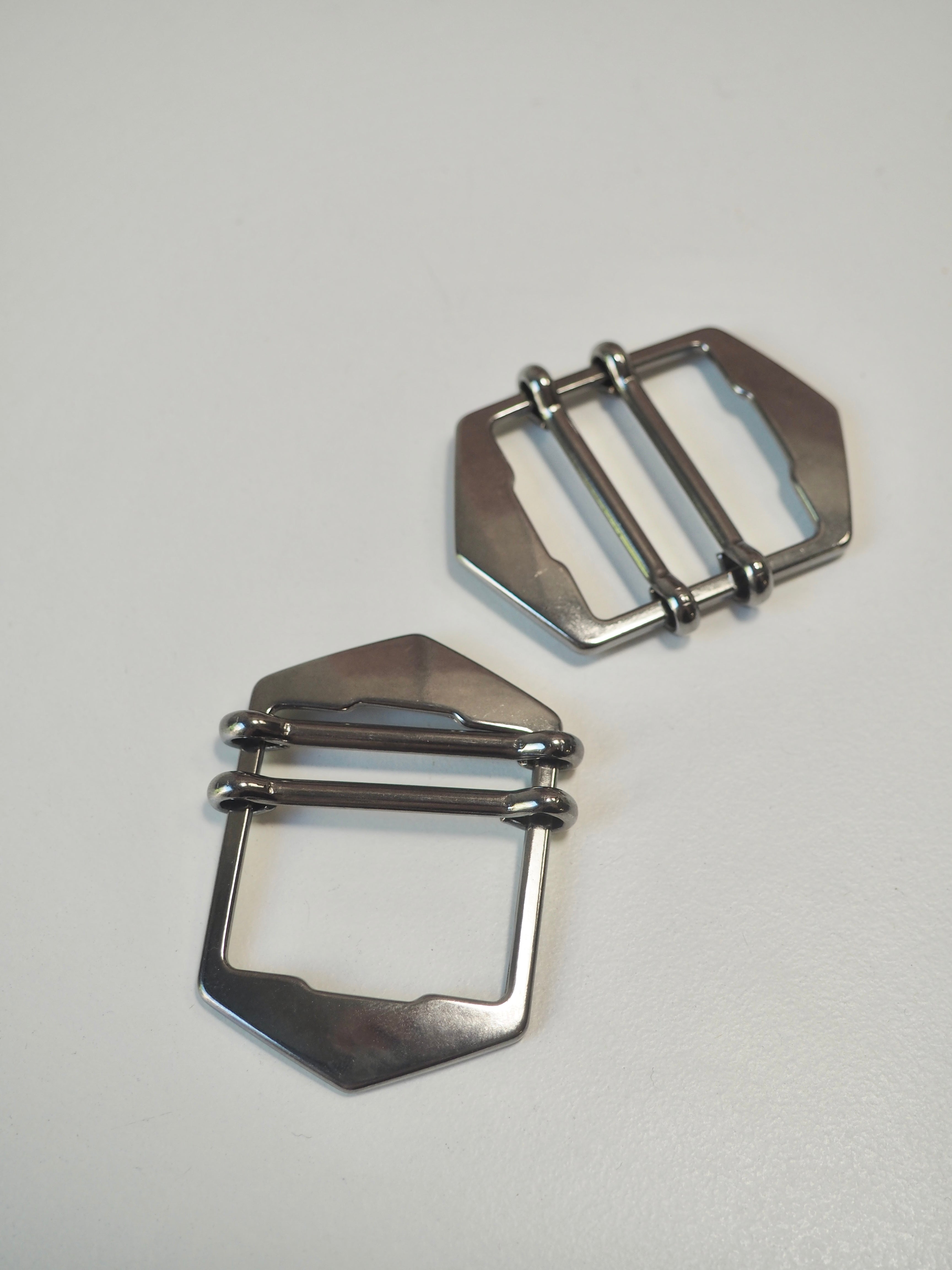 This ex-designer hardware is a slider. It has sliding bars for adjustments. It's lightweight and perfect for bags and accessories!