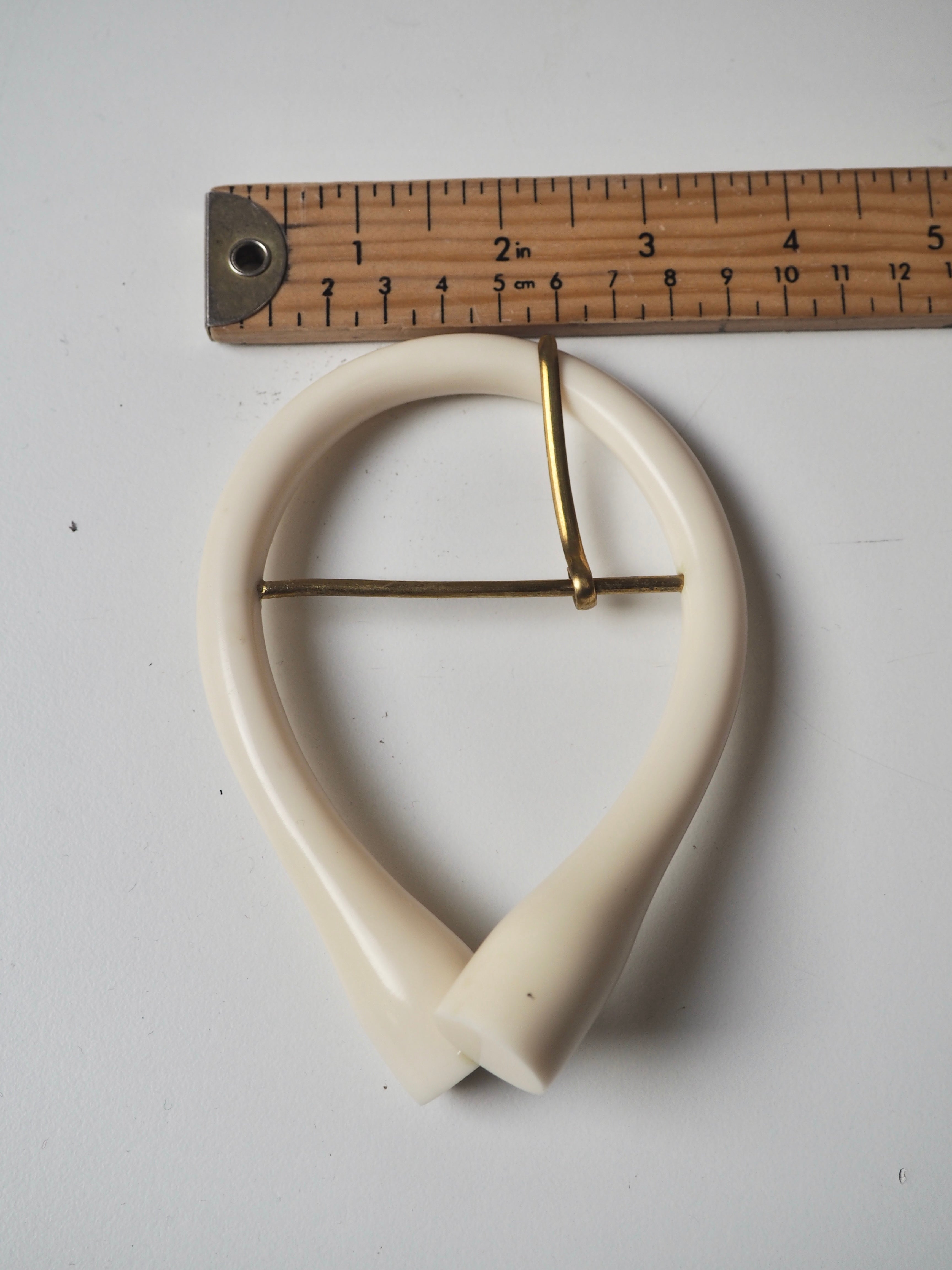 This deadstock trim is a plastic buckle, perfect for adding a special detail to garments! They could be used for coats, dresses, jumpsuits, bags, belts - they're perfect for adding an extra detail to your me-mades. They are a cream ivory colour. It has a needle, so can work with belt holes or be removed to use as a slide style buckle.