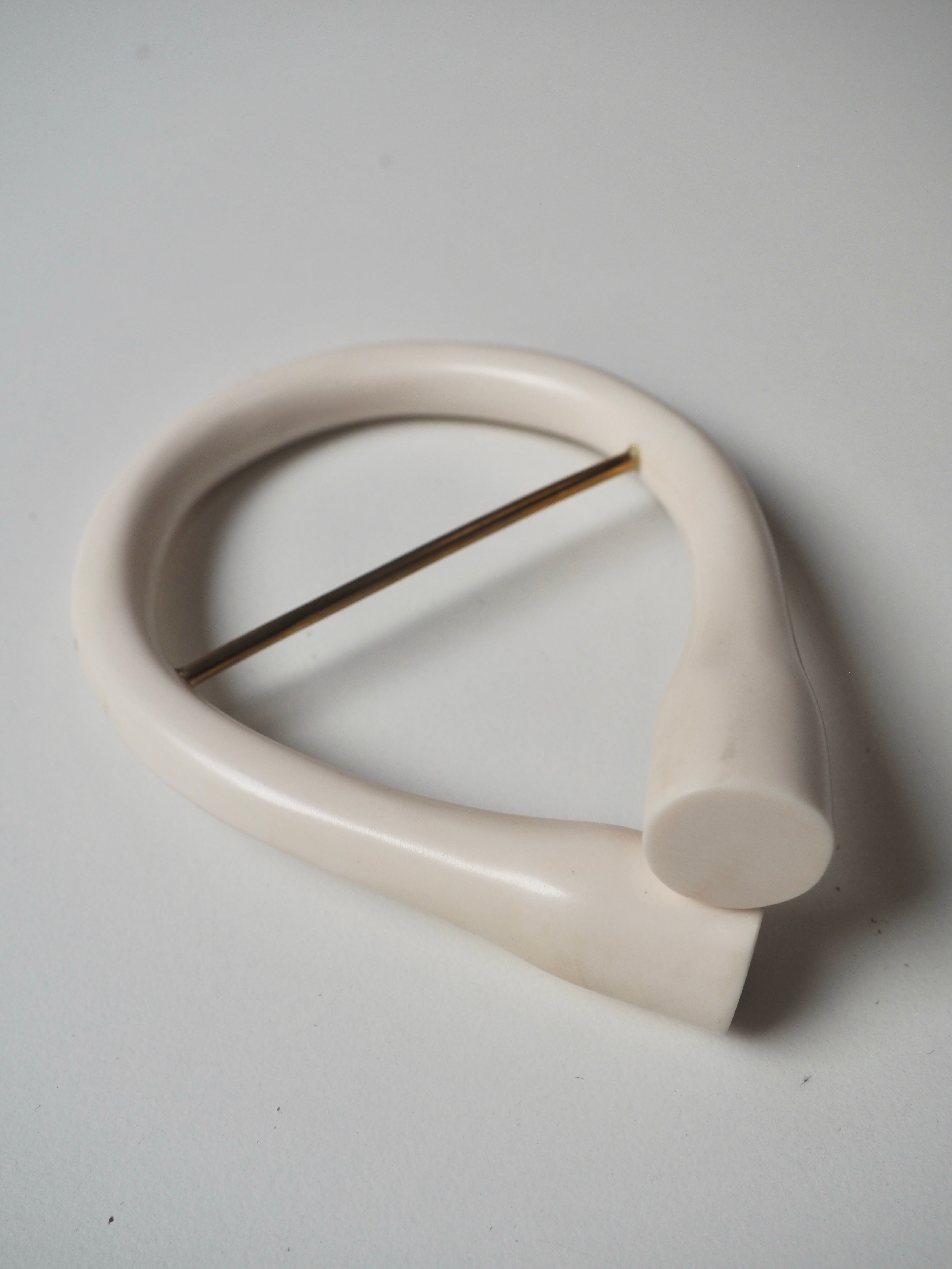 This deadstock trim is a plastic buckle, perfect for adding a special detail to garments! They could be used for coats, dresses, jumpsuits, bags, belts - they're perfect for adding an extra detail to your me-mades. They are a creamy pink tone ivory colour. No needle, so only works as a slider style buckle.